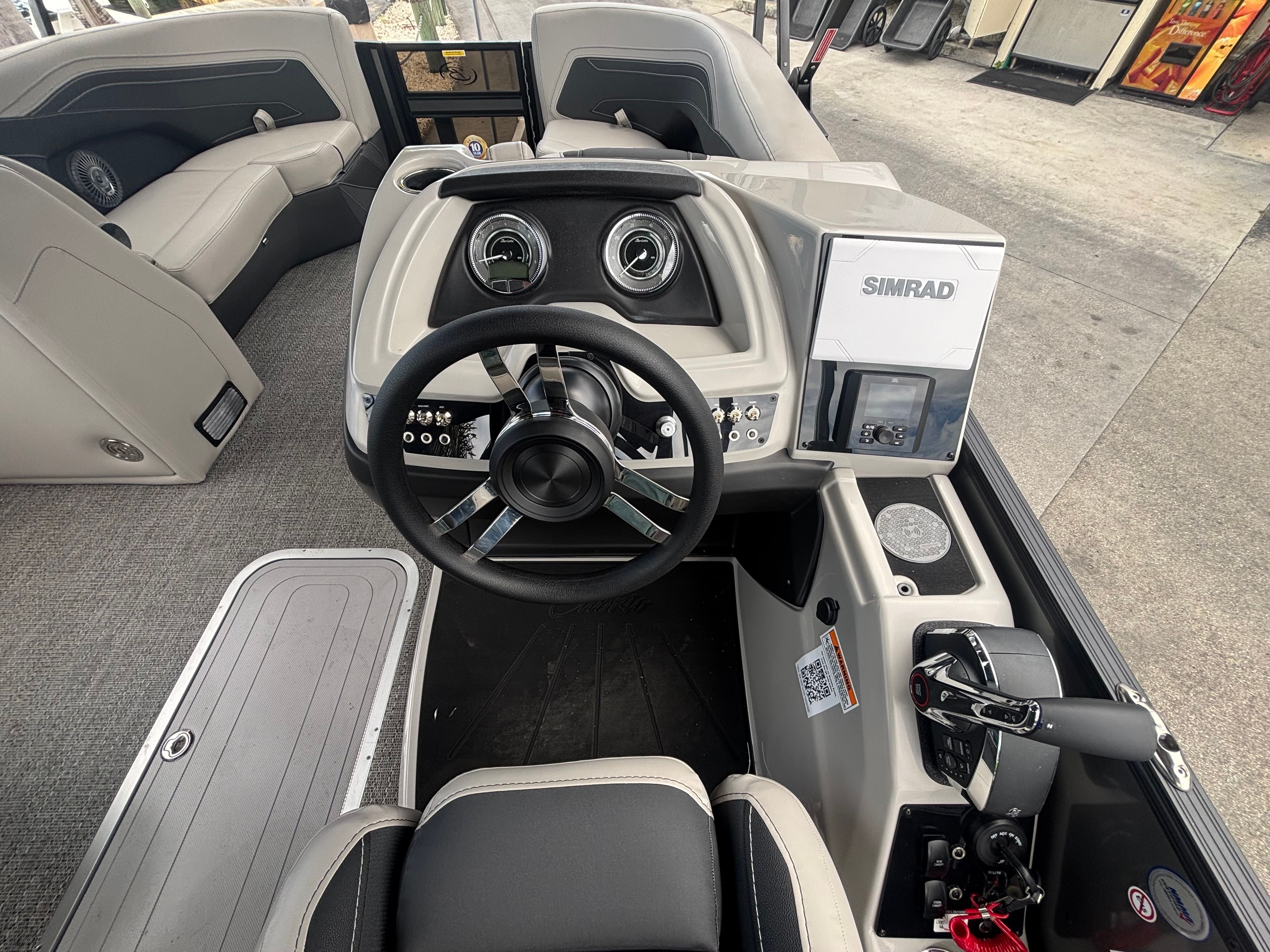 This Barletta boat for sale is loaded with premium features designed to enhance your boating experience. The interior RGB lighting package allows you to set the mood with customizable colors, creating a vibrant atmosphere for evening cruises or celebrations. The Simrad 7" G07 XSR chartplotter/multifunction display offers intuitive navigation and real-time data, making it easy to explore new waters and stay informed while on the move.Exterior lighting, including white underdeck and underwater lights, adds both safety and style, illuminating your surroundings and making docking or nighttime excursions effortless. The flooring is finished in Amore Gray, providing a durable and attractive surface that’s easy to maintain. A stainless steel flag pole with an American flag adds a patriotic touch, while the overall design ensures every detail is thoughtfully crafted for maximum enjoyment.