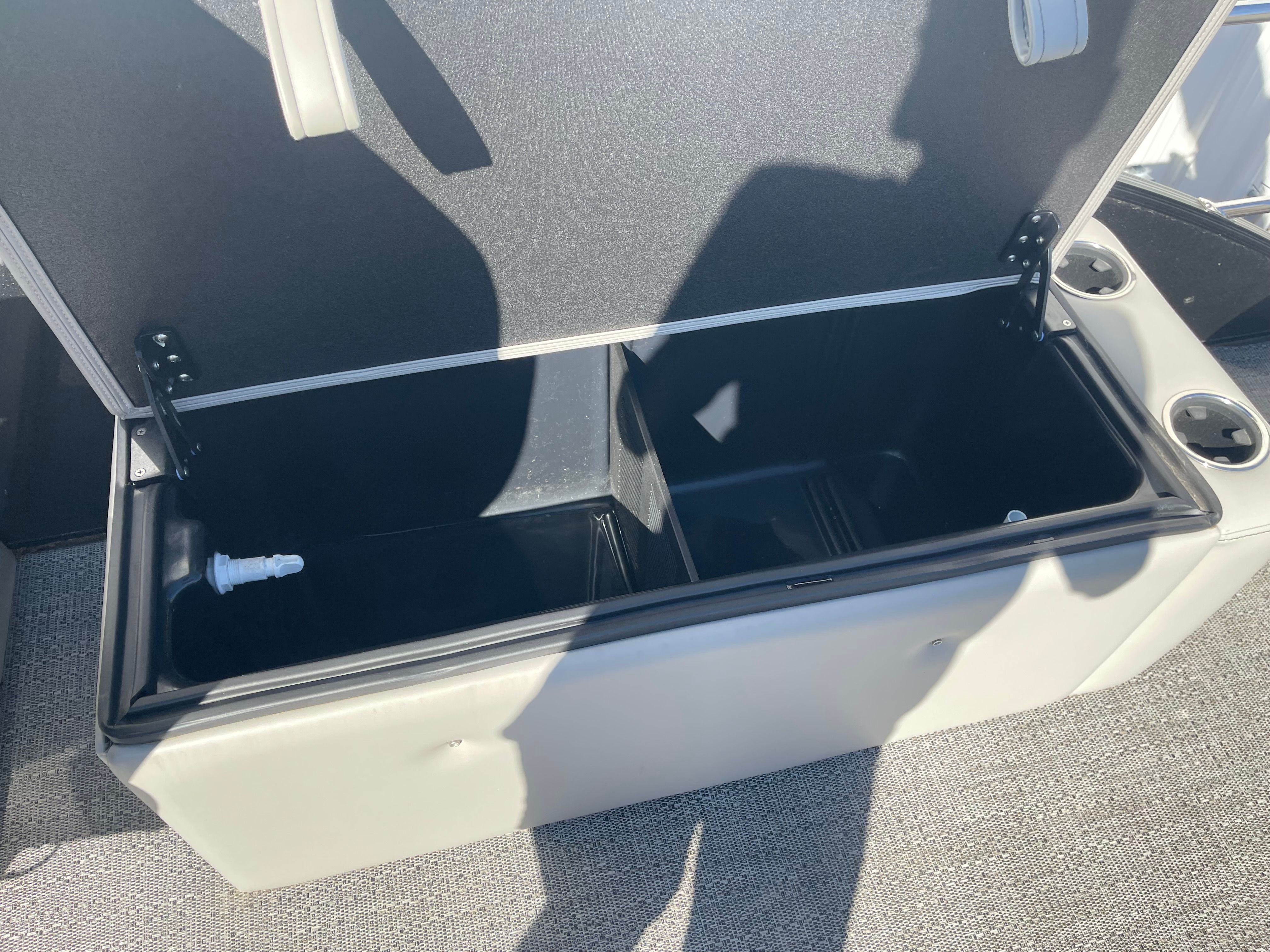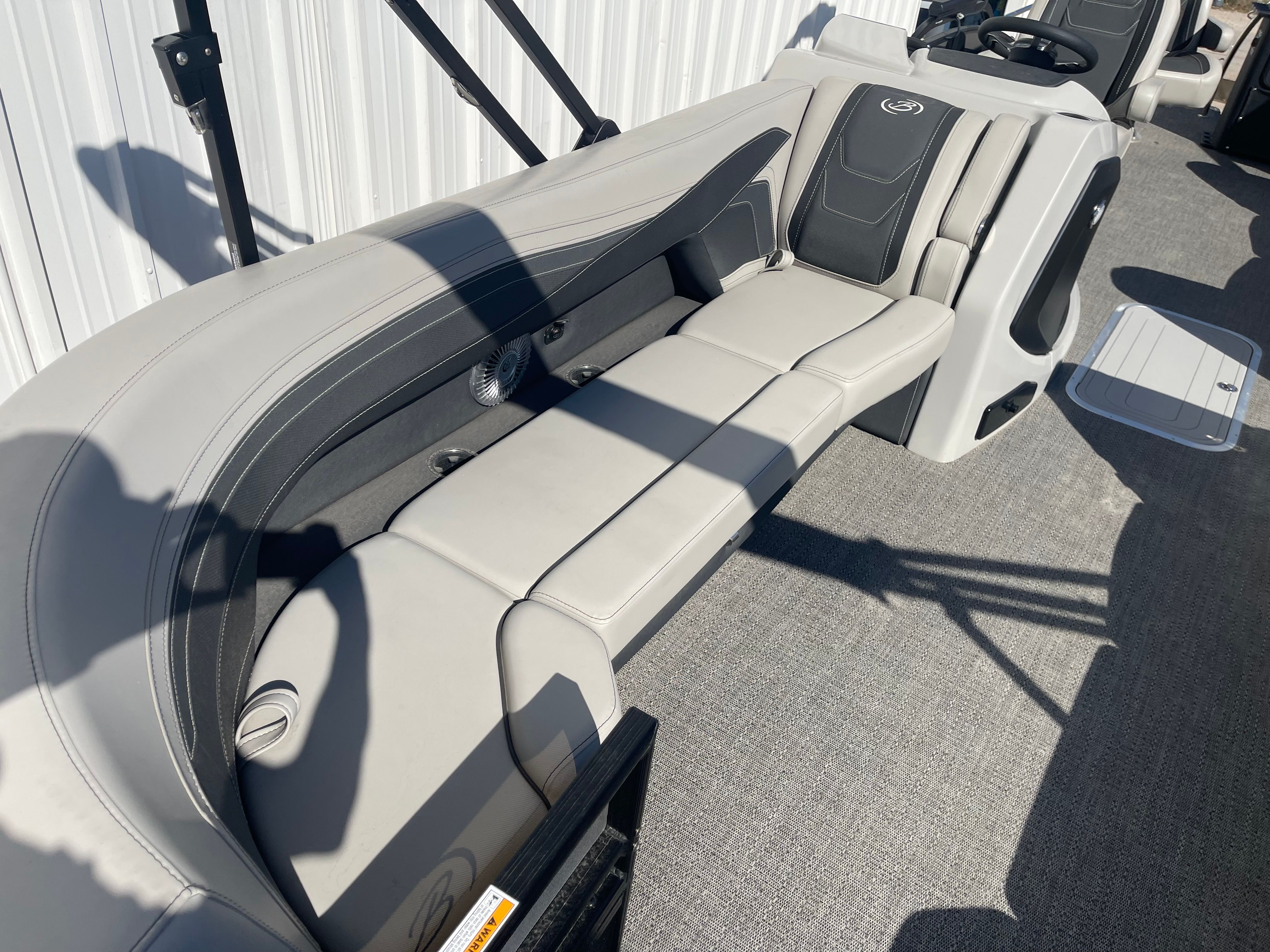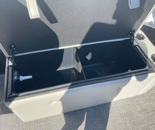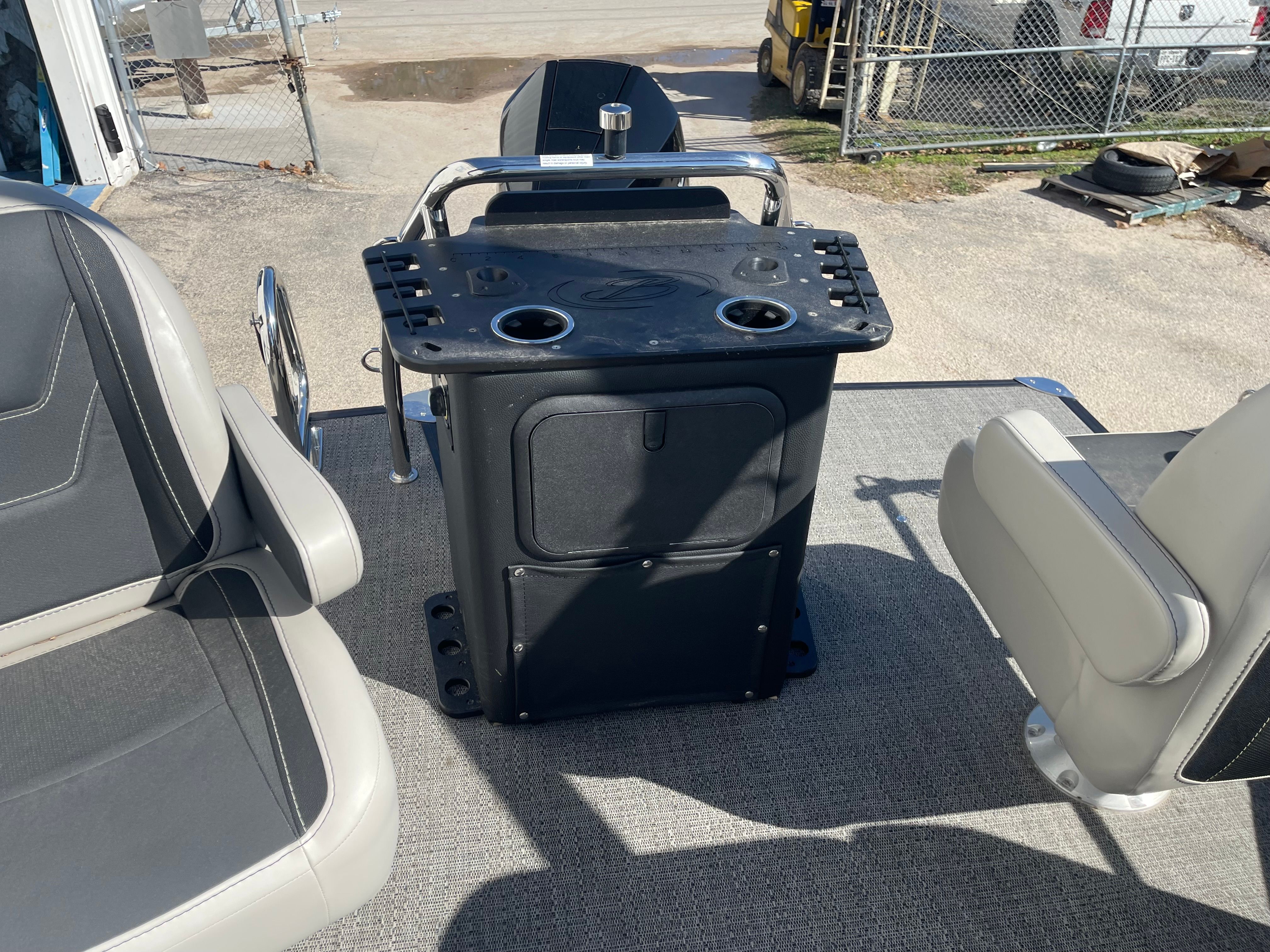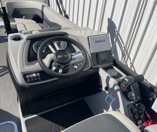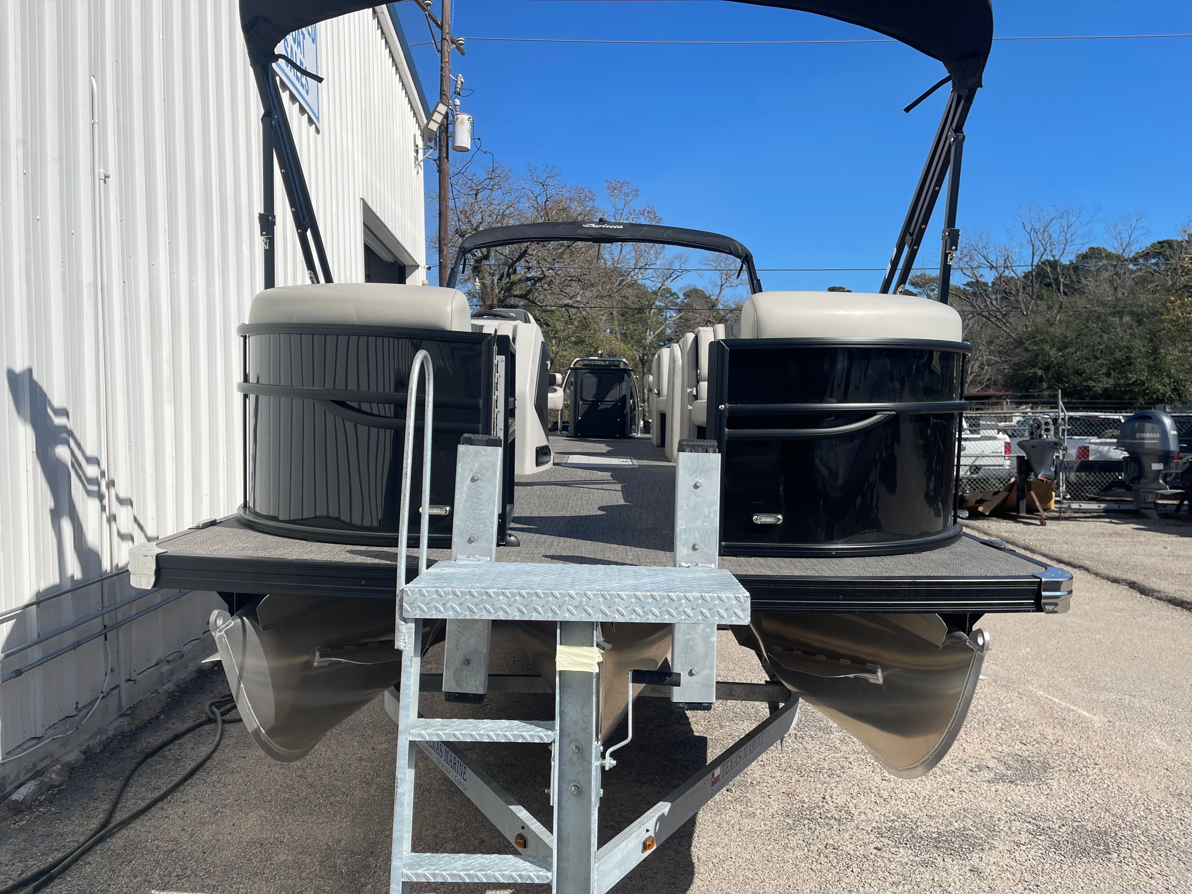 This Barletta pontoon boat is loaded with features designed to elevate your time on the water. The Blackout Package Cabrio adds a bold and contemporary aesthetic, while the adjustable pedestal on the captain’s chair ensures optimal comfort and visibility for the driver. The double bimini canvas provides generous shade, allowing you and your guests to stay cool and protected during sunny days.Digital gauges offer clear and accurate readouts, keeping you informed of all vital systems at a glance. The rigged engine with a stainless steel prop ensures durability and efficient performance, while the triple toon package with midship storage not only boosts stability but also provides convenient space for stowing gear and water toys.