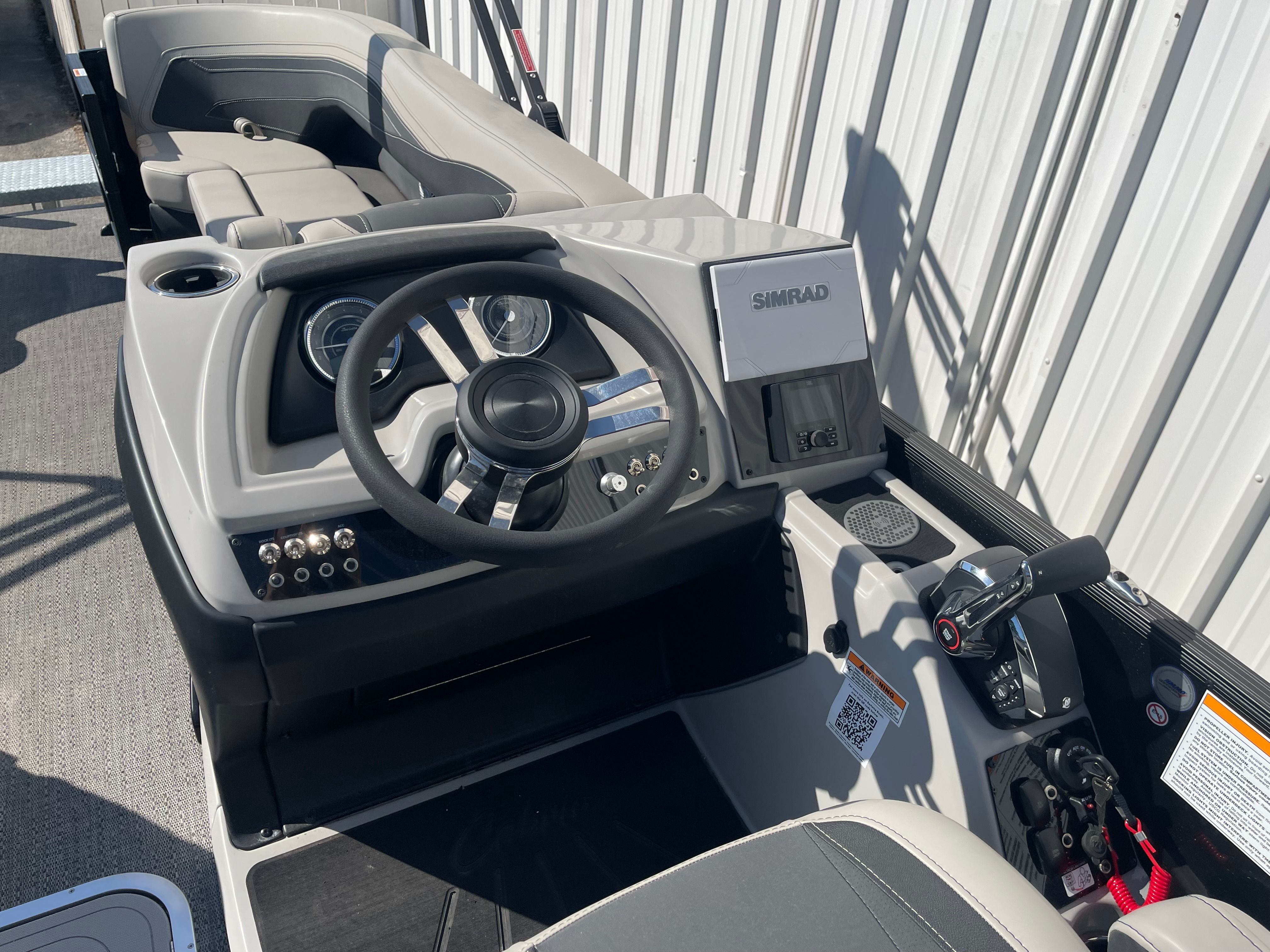 Powering the Barletta Cabrio C24CC is a robust Mercury (D) 250L Verado V8 engine, delivering an impressive 250 horsepower. With only 1 engine hour, this pontoon is practically fresh from the factory, ensuring peak performance and reliability for years to come. The Mercury Digital DTS Pre-Rig for VERADO engines with Vessel Link ensures seamless integration and precise control, while the hydraulic and power assist steering make maneuvering effortless, even in tight spaces.The triple toon package with midship storage enhances stability and buoyancy, allowing for smooth rides even in choppier waters. Whether you’re cruising at a leisurely pace or picking up speed for watersports, the Cabrio C24CC offers a thrilling and responsive experience on the water.