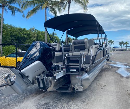 The Barletta Cabrio C24M is as practical as it is luxurious. The spacious layout provides plenty of room for gear, coolers, and water toys, making it easy to prepare for a day on the water. The double Bimini tops offer flexible shade options, keeping everyone comfortable during long outings. The durable flooring and high-quality upholstery are designed to withstand the rigors of active use, while remaining easy to clean and maintain.Docking and maneuvering are simplified by the responsive engine controls and thoughtfully designed helm, making this pontoon ideal for both experienced boaters and newcomers alike. The efficient engine setup also helps maximize fuel economy, so you can spend more time enjoying the water and less time refueling.