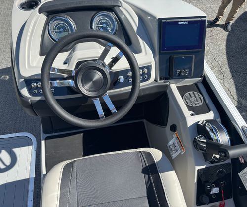 The 2026 Barletta Cabrio C24M is loaded with features designed to maximize your enjoyment and convenience on the water. The interior RGB lighting package creates a customizable ambiance, perfect for evening cruises or lively gatherings. The Amore Gray flooring is both stylish and practical, offering a comfortable and easy-to-clean surface underfoot. At the helm, the Simrad 7" G07 XSR chartplotter/multifunction display puts navigation, system monitoring, and entertainment at your fingertips, ensuring you stay informed and in control throughout your journey.The Marquesan Gray with Onyx furniture provides plush seating and a modern aesthetic, while the stainless steel flag pole with an American flag adds a touch of patriotic flair to your vessel. The Triple Toon Package with midship storage not only improves performance but also offers additional space for storing gear, water toys, or picnic essentials, keeping your deck clutter-free and organized.