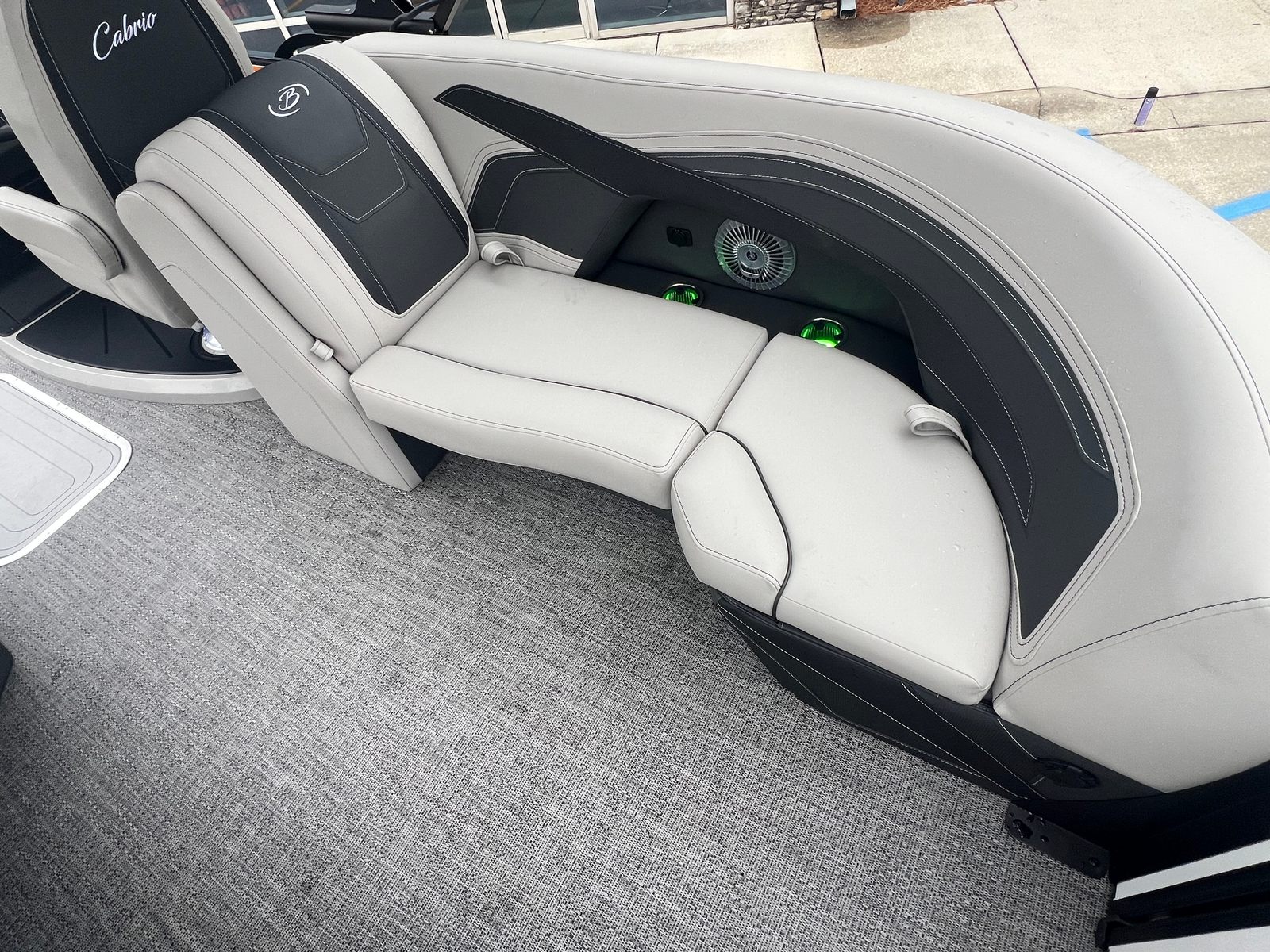 In summary, the 2026 Barletta Cabrio C24Q is a standout pontoon boat for sale that combines cutting-edge design, powerful performance, and luxurious comfort. With its striking Blue Sapphire and Winter White railskin, Blackout Package Cabrio, Marquesan Gray with Onyx furniture, Amore Gray flooring, Triple Toon Package with Midship Storage, Mercury 250L FourStroke engine, and onboard battery charger with two batteries, this Barletta boat for sale offers everything you need for unforgettable days on the water.If you are ready to elevate your boating lifestyle and enjoy the best that modern pontoon design has to offer, the Barletta Cabrio C24Q is the perfect choice. Contact your local dealer today to learn more about this exceptional pontoon boat and start planning your next adventure on the water.