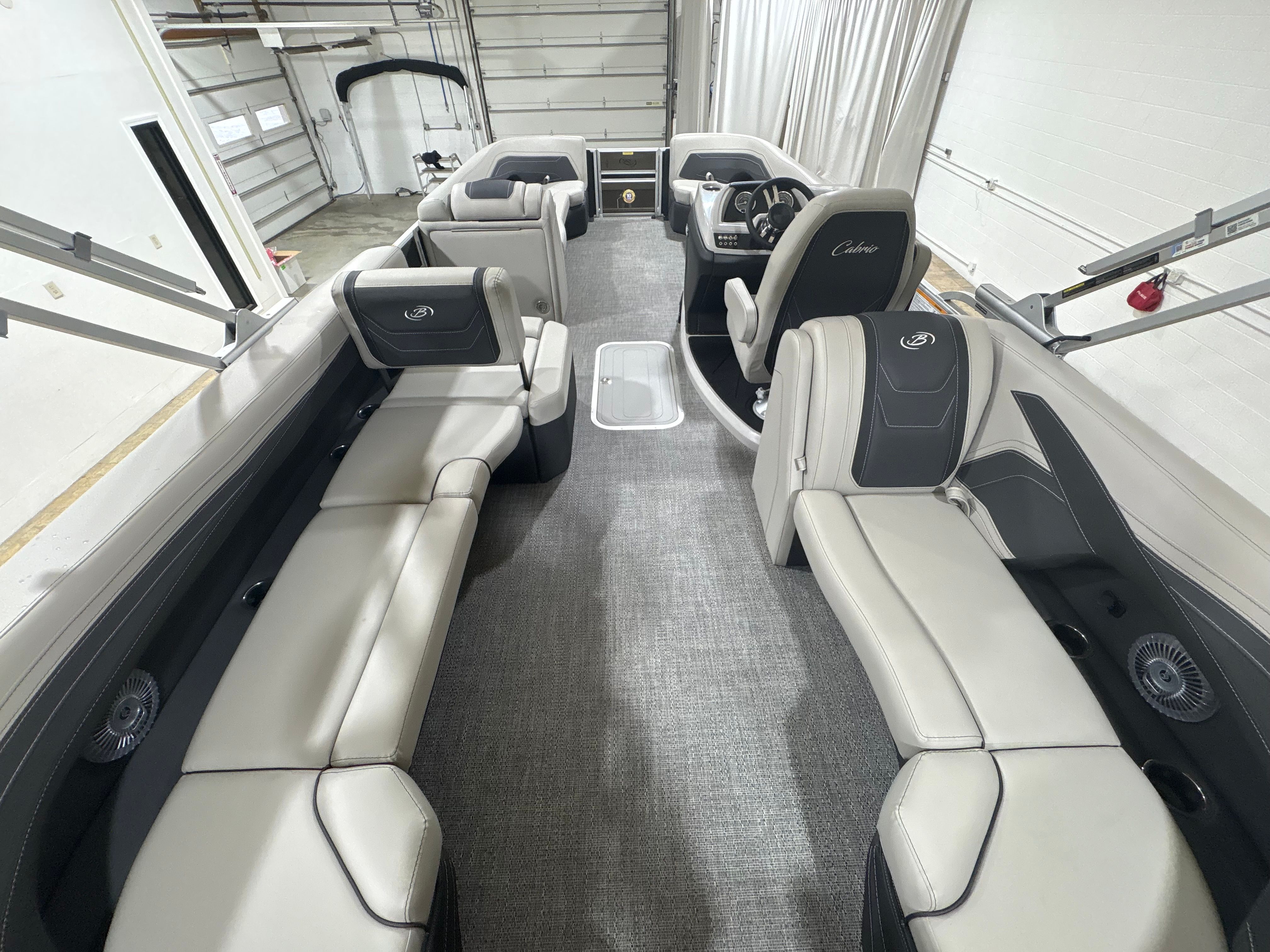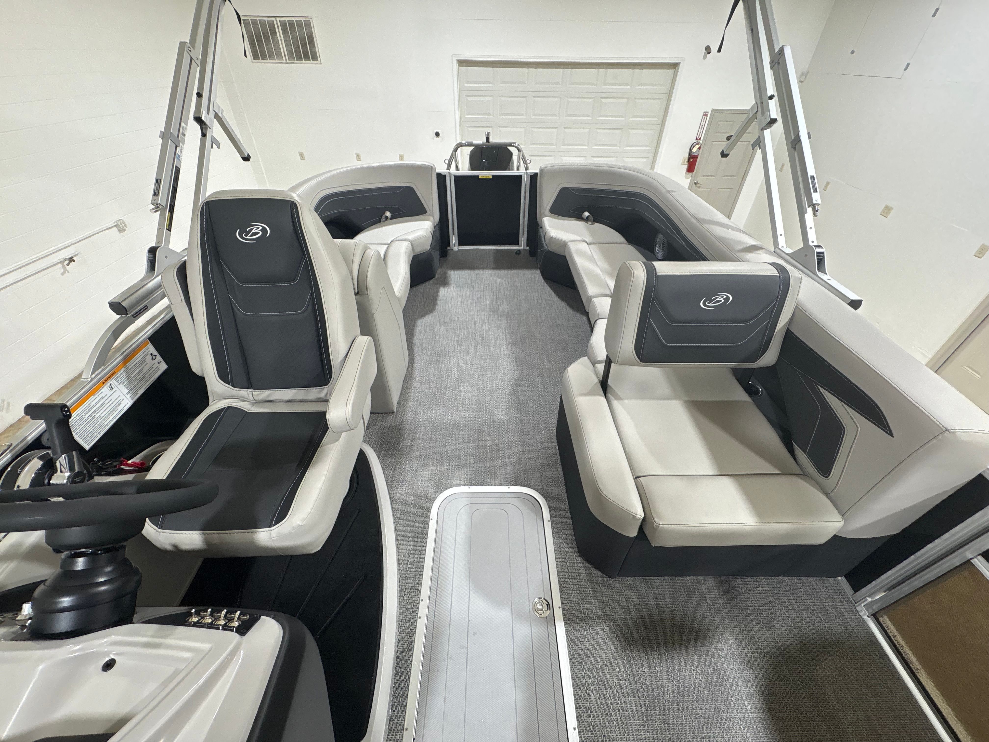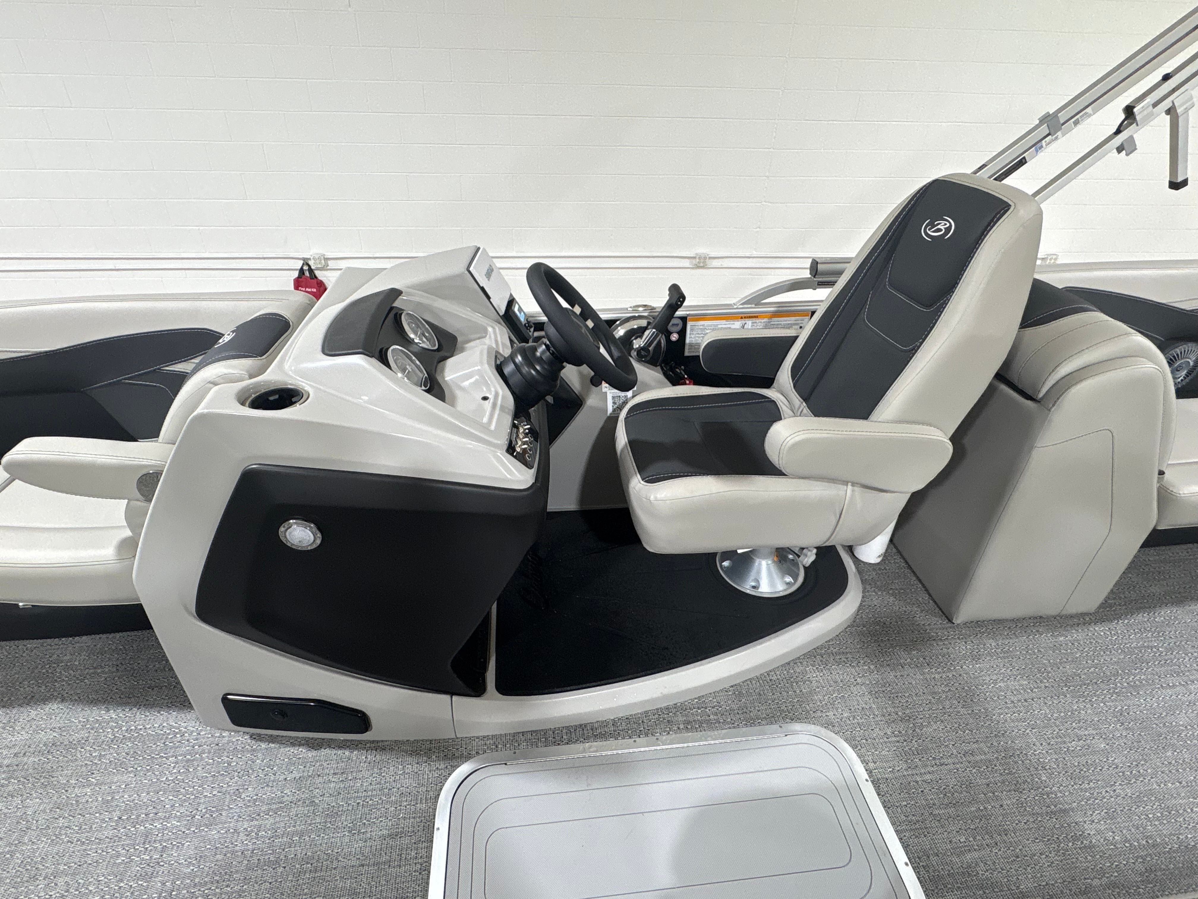 The Barletta Cabrio C24Q is designed with practicality in mind, making ownership as enjoyable as the time spent on the water. The midship storage compartment offers convenient space for stowing life jackets, fishing gear, or picnic supplies, keeping the deck clutter-free and organized. The durable flooring is easy to clean, ensuring your pontoon stays looking its best with minimal effort.Docking and maneuvering are simplified thanks to the power assist steering and reliable Mercury engine, allowing you to navigate marinas and tight spaces with ease. The efficient engine design helps maximize fuel economy, so you can spend more time cruising and less time refueling. The multifunction display provides real-time data and navigation support, making every outing safer and more enjoyable.