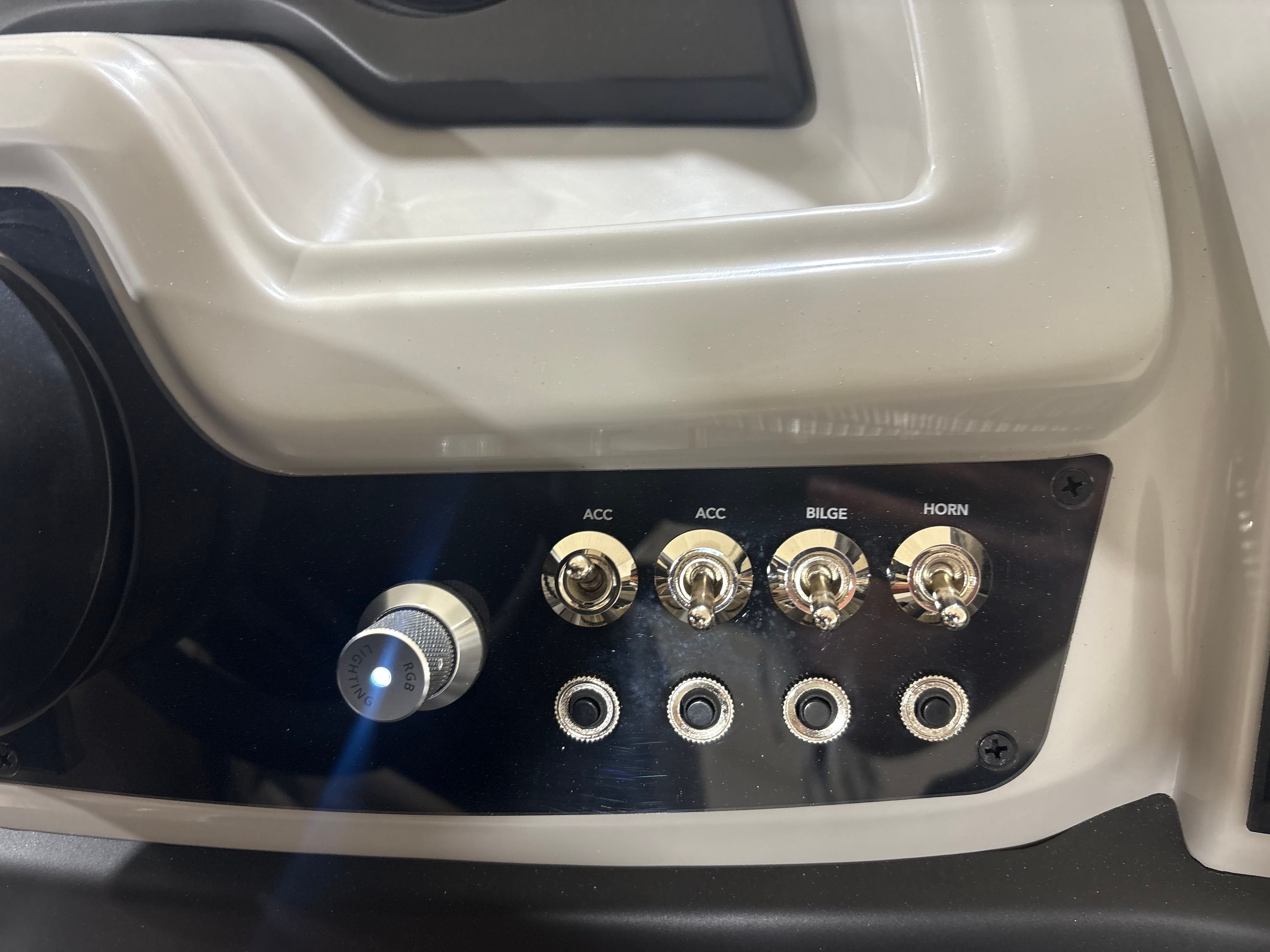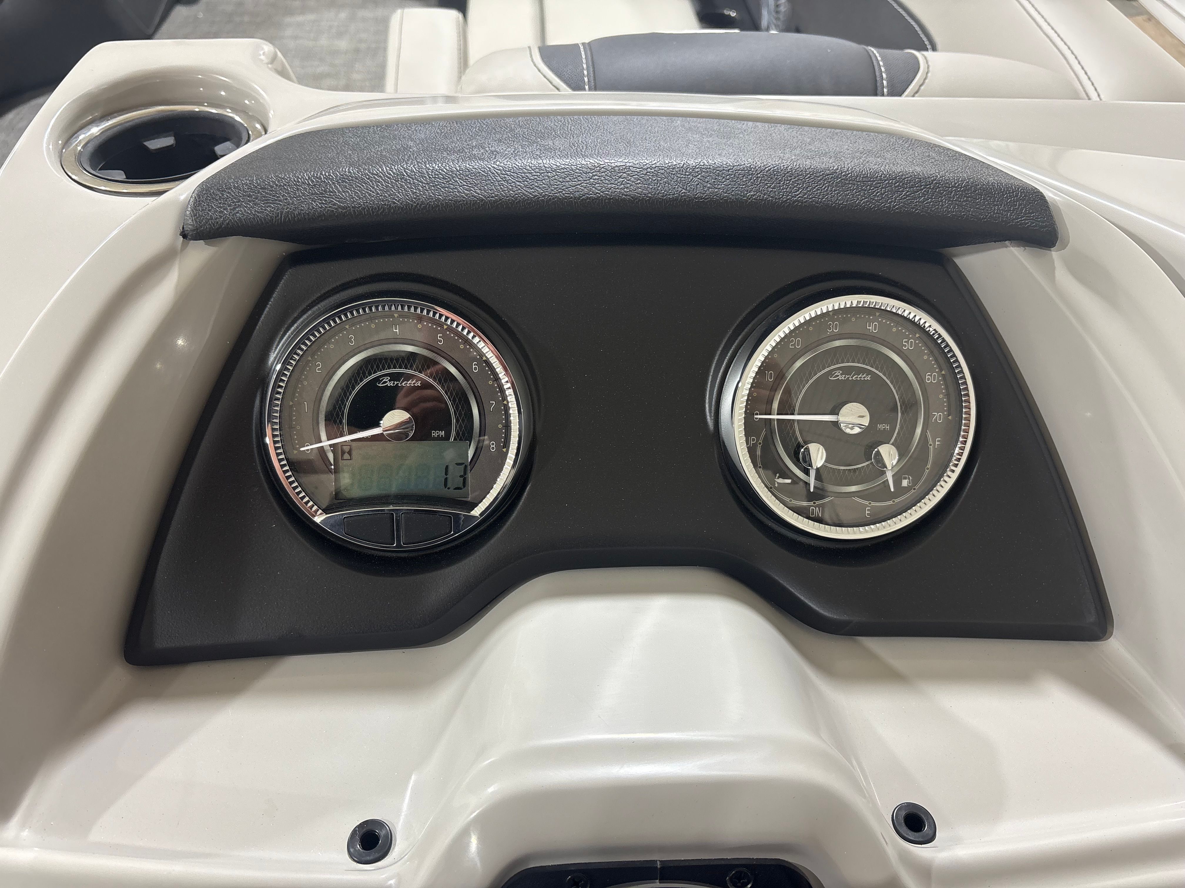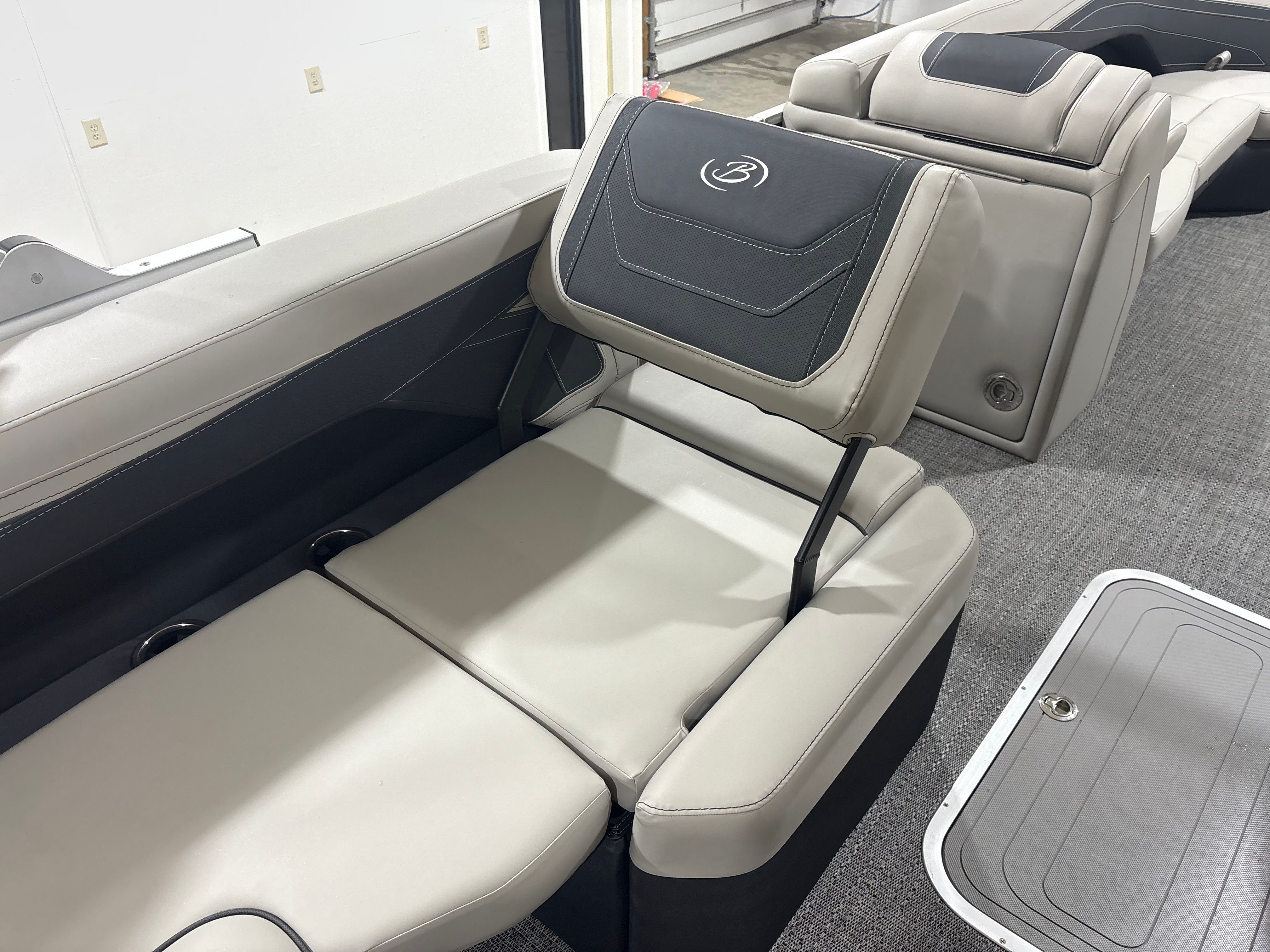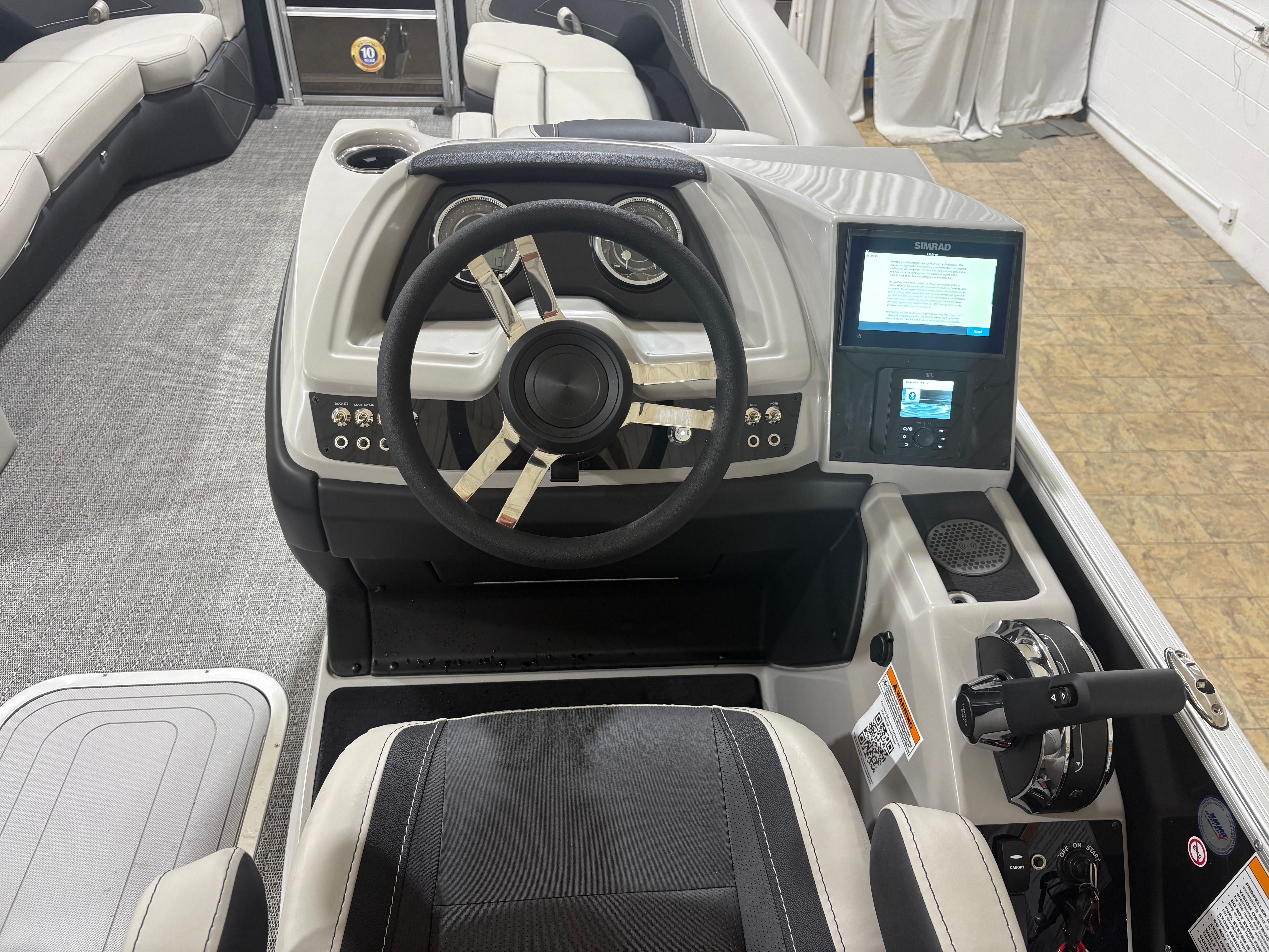 The Barletta Cabrio C24Q is equipped with a host of premium features designed to maximize comfort, convenience, and style. The striking Railskin Color in Black Diamond gives the pontoon a sleek, modern appearance, while the Marquesan Gray with Onyx furniture offers plush seating and a sophisticated aesthetic. The Amore Gray flooring is both durable and attractive, providing a comfortable surface that’s easy to maintain.One of the standout features is the Triple Toon Package with midship storage, which enhances stability and provides additional space for gear, water toys, or personal items. The interior RGB lighting package creates a customizable ambiance, perfect for evening cruises or festive gatherings. The Simrad 7" G07 XSR chartplotter/multifunction display delivers advanced navigation and system monitoring, ensuring you stay informed and in control throughout your journey.Additional touches like the stainless steel flag pole with an American flag add a sense of pride and distinction, while the rigging with a stainless steel prop ensures optimal performance and longevity.