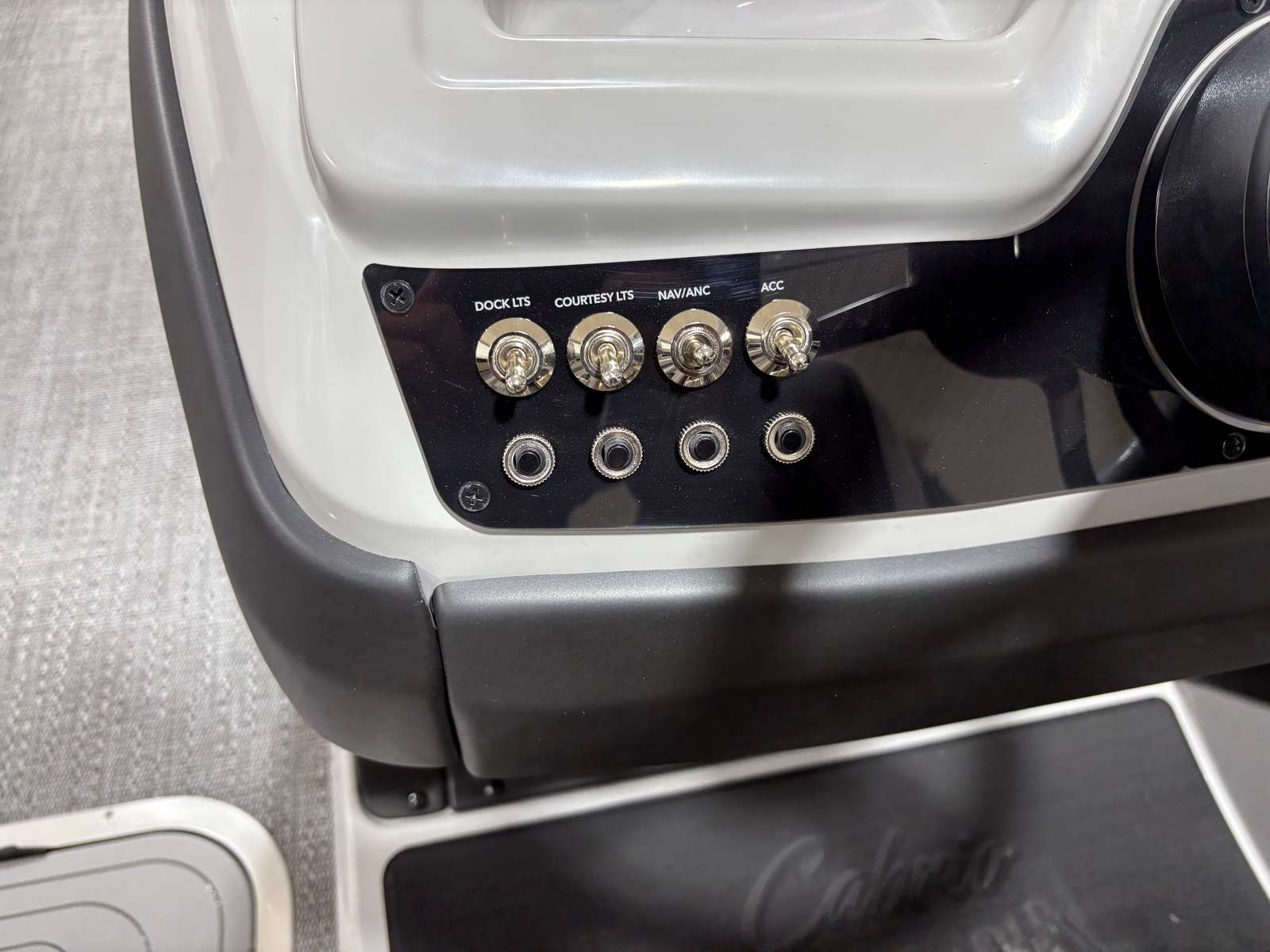 At the heart of the Cabrio C24QC is a powerful Mercury 250L FourStroke engine, delivering an impressive 250 horsepower with only 1 engine hour. This robust engine ensures smooth acceleration, responsive handling, and plenty of power for cruising, watersports, or simply exploring your favorite waterways. The pre-rig Mercury mechanical system with power assist (200HP) and stainless steel prop further enhance the boat’s performance, providing effortless control and reliability. Whether you are gliding across calm waters or picking up speed for a thrilling ride, the Cabrio C24QC offers a dynamic boating experience.