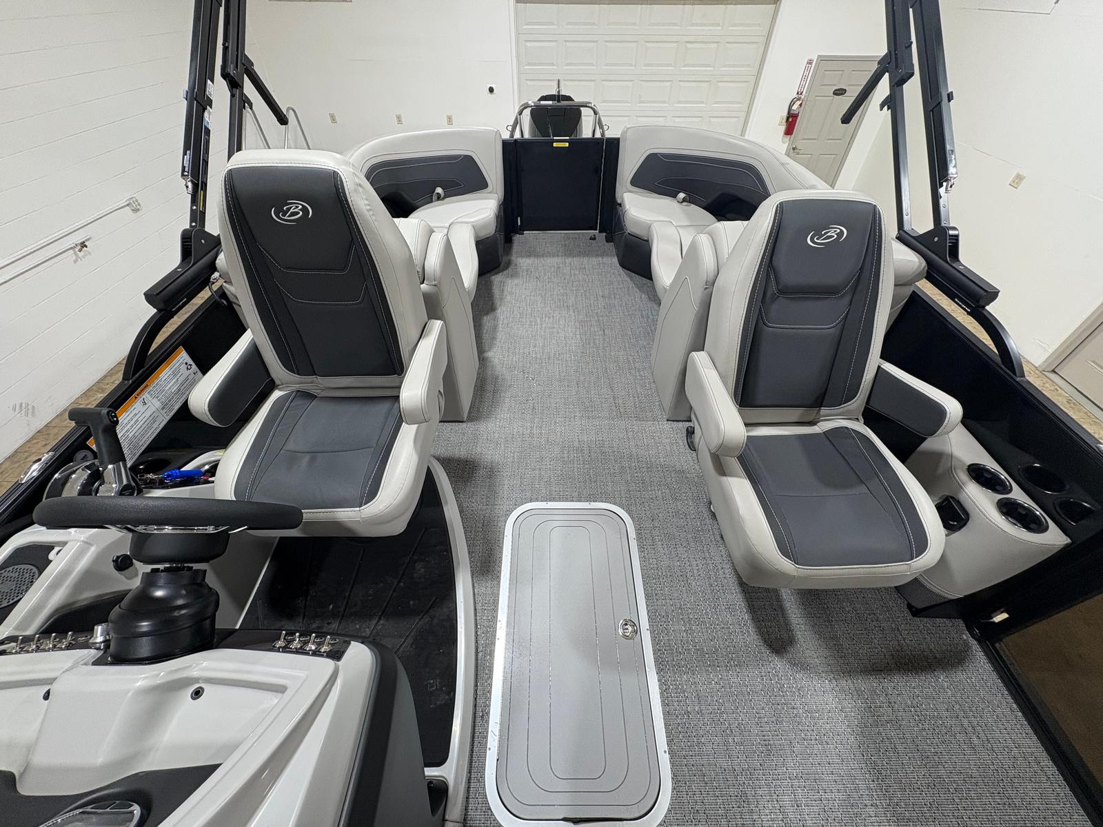 The Cabrio C24QC is designed with practicality in mind, making ownership as enjoyable as the time spent on the water. The midship storage compartment offers a convenient solution for keeping your belongings organized and out of the way, while the durable flooring ensures easy cleanup after a day of fun.Docking and maneuvering are made simple thanks to the responsive power assist steering and reliable Mercury engine. The sturdy construction and quality materials provide peace of mind, knowing your investment is built to last. Whether you are planning a quick afternoon escape or a full day of exploration, this pontoon boat adapts to your needs with ease.