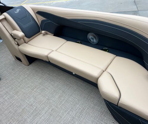 The 2026 Barletta Cabrio C24QC is a new pontoon boat that stretches an impressive 25 feet in length, offering ample space for entertaining, lounging, and enjoying the open water. Barletta’s renowned craftsmanship is evident in every detail, from the elegant Carmella Tan with Onyx furniture to the stylish Amore Tan flooring. This pontoon is engineered for those who demand both comfort and performance, making it a top contender among luxury pontoons on the market.