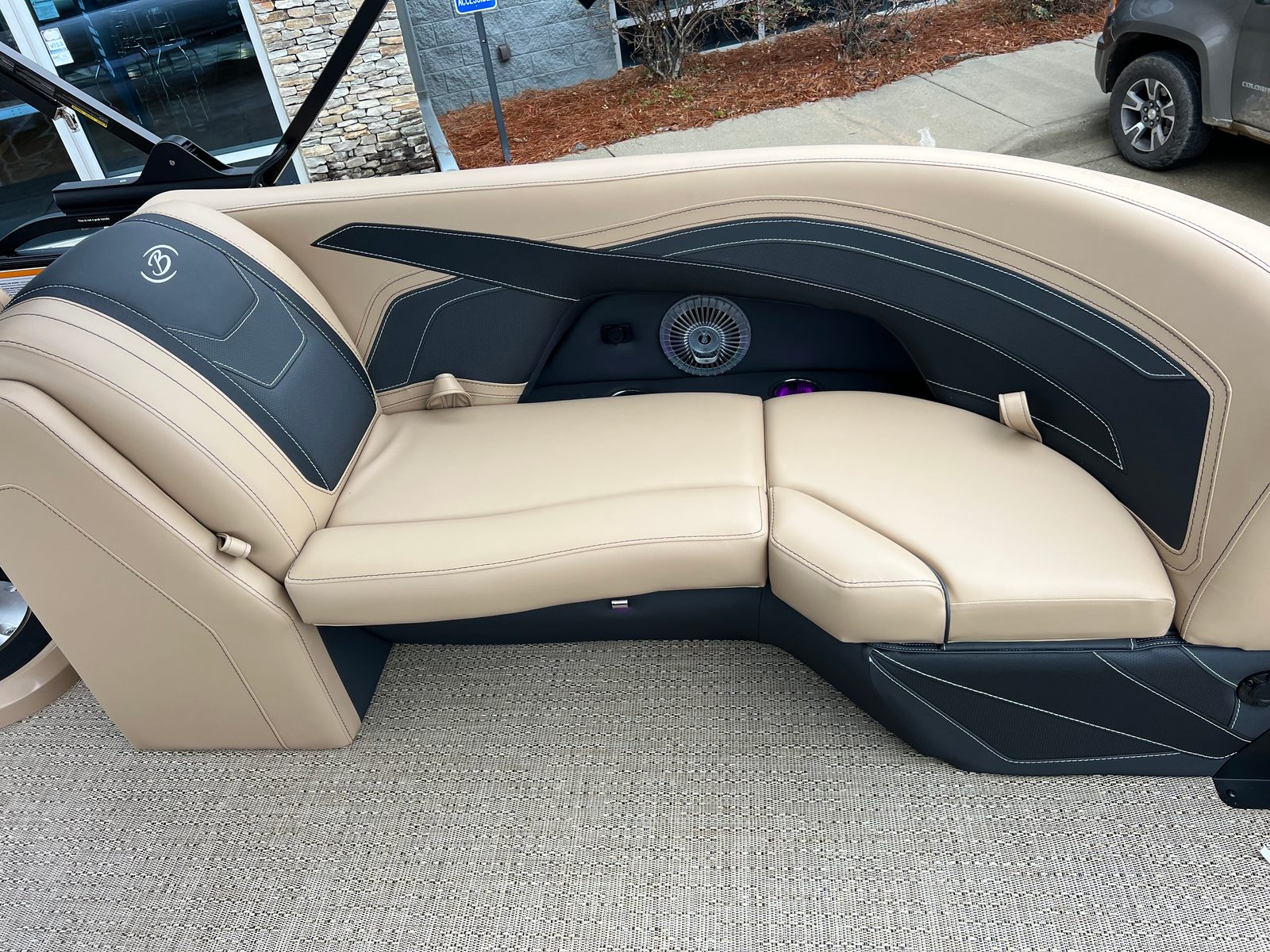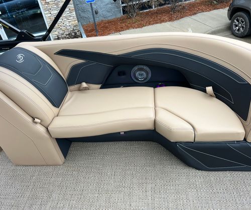 The Barletta Cabrio C24QC is loaded with features that set it apart from other pontoon boats for sale. The Black Diamond Railskin color, paired with the Blackout Package, gives this pontoon a bold, modern look that is sure to turn heads at the marina. Inside, the Carmella Tan with Onyx furniture offers plush seating and a sophisticated aesthetic, while the Amore Tan flooring provides a comfortable, slip-resistant surface underfoot.The triple toon package with midship storage not only improves performance but also adds valuable storage space for gear, water toys, and personal items. The onboard battery charger with two batteries ensures you have reliable power for all your electronics and accessories, while the metal jacket protectant helps keep your pontoon looking pristine season after season. A stainless steel flag pole with an American flag adds a patriotic touch, perfect for holiday weekends and special occasions.