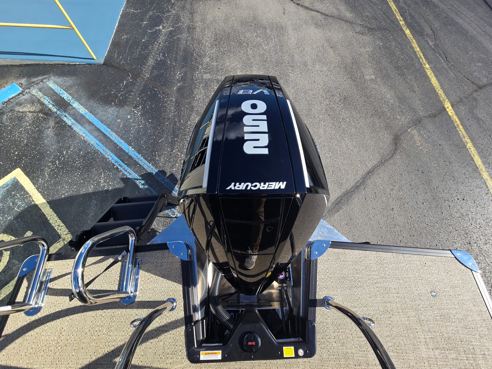 Under the hood, the Barletta Cabrio C24QC is powered by a Mercury (M) 250L FourStroke engine, delivering an impressive 250 horsepower. This single-engine setup is engineered for smooth, reliable, and efficient performance, whether you are cruising at a leisurely pace or picking up speed for watersports. The pre-rigged Mercury mechanical system with power assist ensures effortless handling and responsive steering, making it easy for both seasoned boaters and newcomers to navigate with confidence. The stainless steel prop enhances durability and performance, providing optimal thrust and efficiency on the water. With the Triple Toon Package and midship storage, this pontoon is designed for stability, agility, and plenty of room for all your gear.