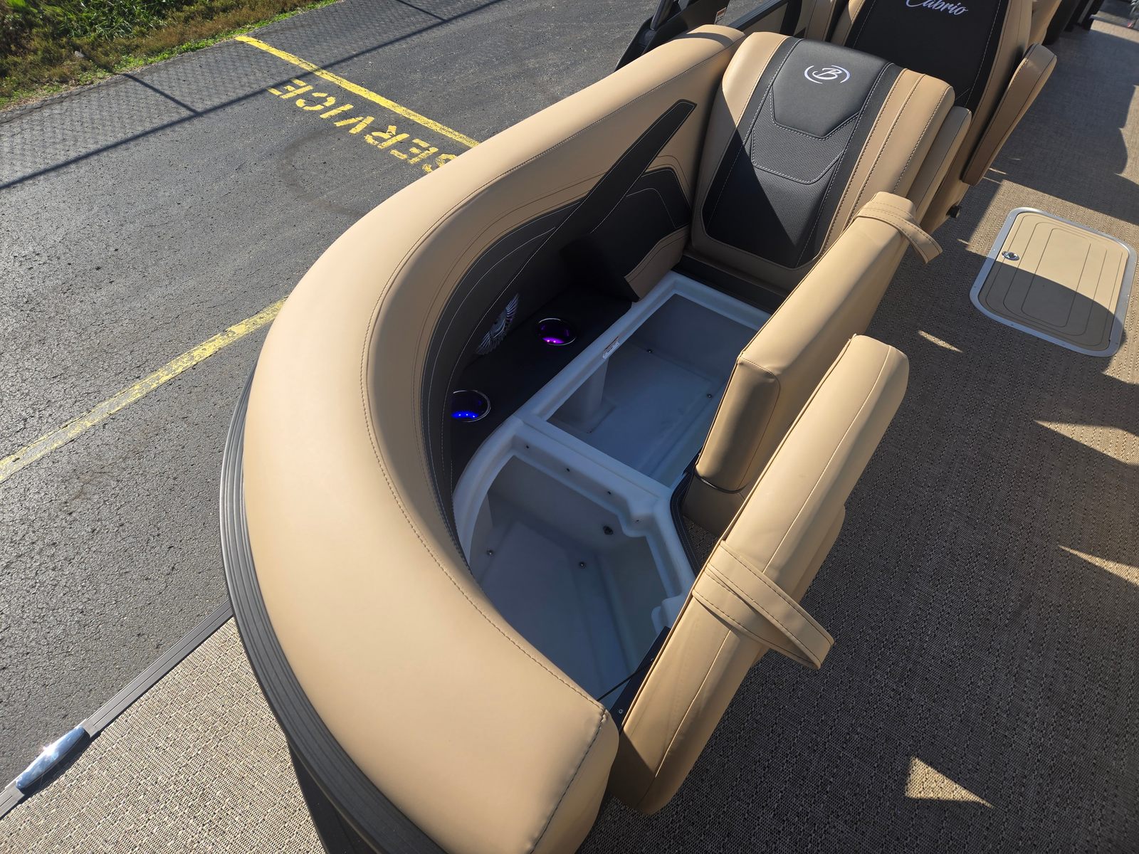 The 2026 Barletta Cabrio C24QC is a standout pontoon boat for sale that combines cutting-edge design, powerful performance, and luxurious comfort. With its striking Black Diamond and Champagne color scheme, Blackout Package Cabrio, Carmella Tan with Onyx furniture, Amore Tan flooring, Triple Toon Package with midship storage, and Mercury 250L FourStroke engine, this boat is built to impress and engineered for fun. Whether you are seeking adventure, relaxation, or the perfect platform for entertaining, the Cabrio C24QC delivers on every front. Don’t miss your chance to own this exceptional Barletta boat for sale – contact your dealer today to learn more and start your next great adventure on the water!