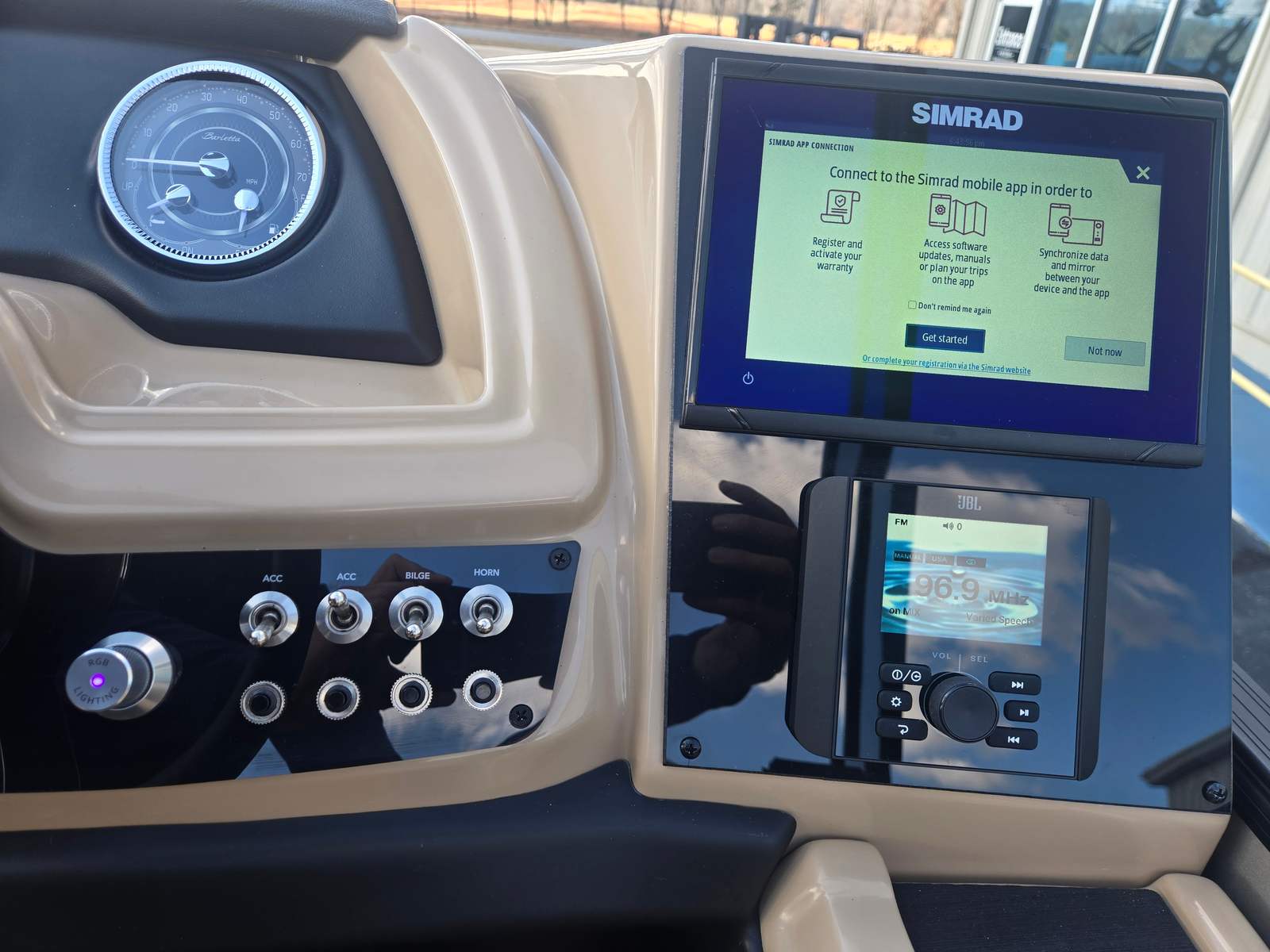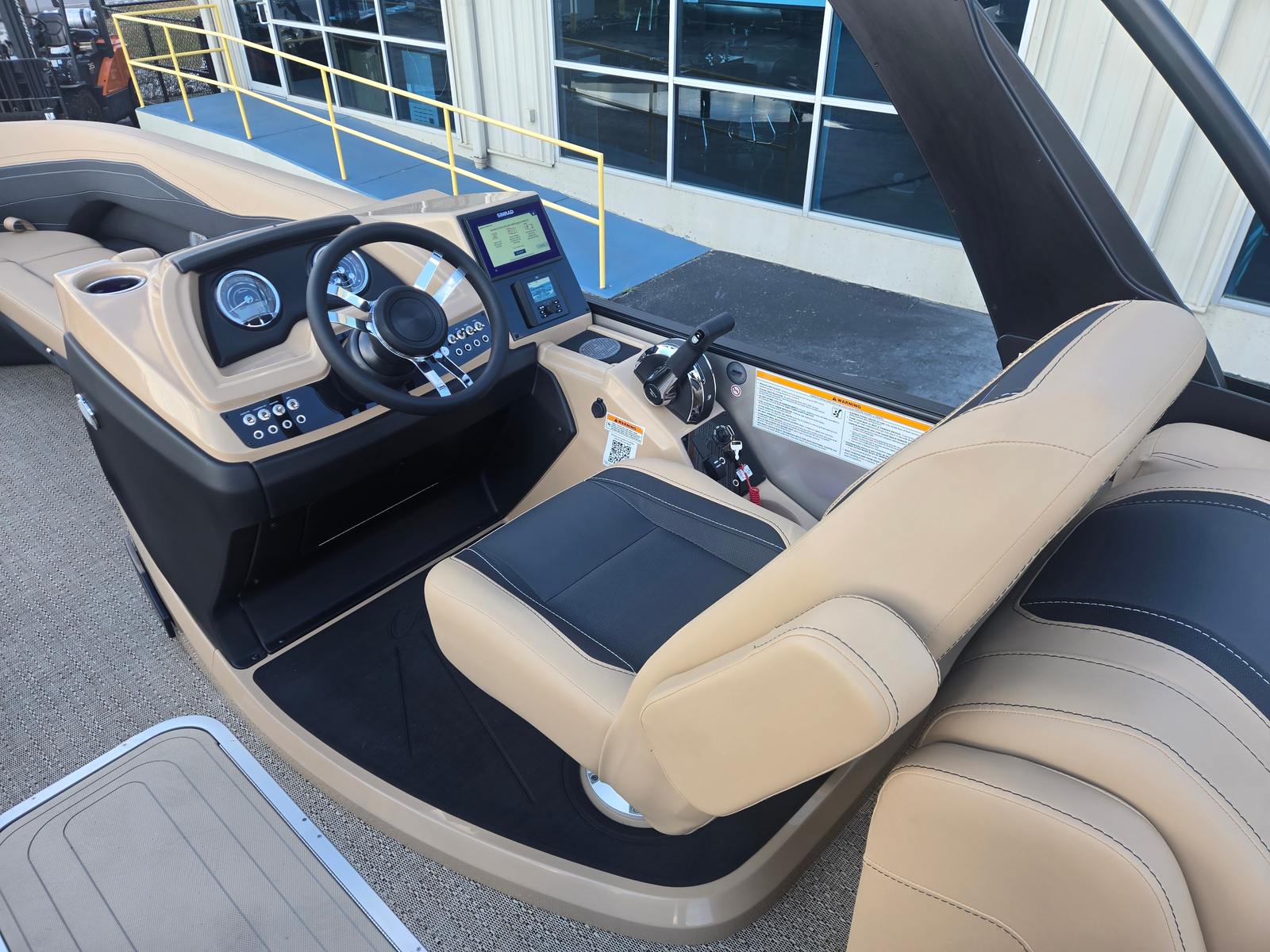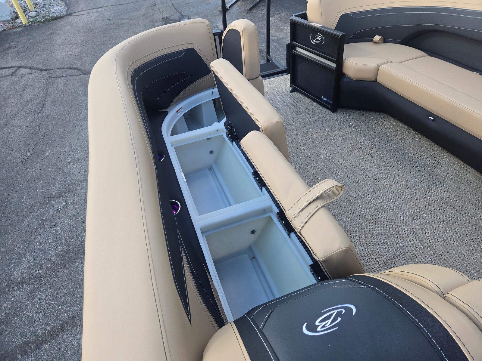 The 2026 Barletta Cabrio C24QC is loaded with premium features that set it apart from other pontoon boats for sale. The Black Diamond Railskin with Champagne accent creates a striking visual profile, while the Blackout Package Cabrio adds a modern, upscale touch. The Carmella Tan with Onyx furniture is both stylish and comfortable, offering plush seating for you and your guests. The Amore Tan flooring is not only attractive but also easy to maintain, ensuring your boat looks great season after season.The Triple Toon Package with midship storage provides enhanced stability and extra space for storing water toys, life jackets, and other essentials. The Mercury 250L FourStroke engine is pre-rigged with mechanical controls and power assist, making operation smooth and intuitive. The stainless steel prop is built for performance and longevity, while the Sport Bimini offers shade and protection from the sun, allowing you to enjoy long days on the water in comfort.
