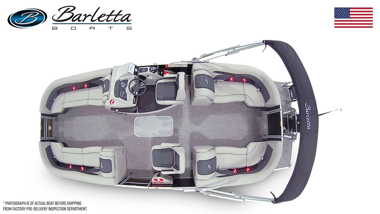 In summary, the 2026 Barletta Cabrio C24QC is a standout pontoon boat for sale that combines style, performance, and versatility. With its powerful Mercury 200L FourStroke engine, elegant Black Diamond railskin, luxurious Marquesan Gray furniture, Amore Gray flooring, triple toon package with midship storage, and advanced Simrad chartplotter, this Barletta boat for sale is designed to deliver unforgettable experiences on the water. The interior RGB lighting and stainless steel flag pole with American flag add the finishing touches to an already impressive package.If you are ready to elevate your boating lifestyle and create lasting memories with family and friends, the Barletta Cabrio C24QC is the perfect choice. Contact your local dealer today to learn more about this exceptional pontoon boat and start your next adventure on the water.