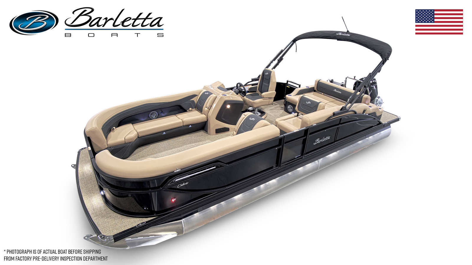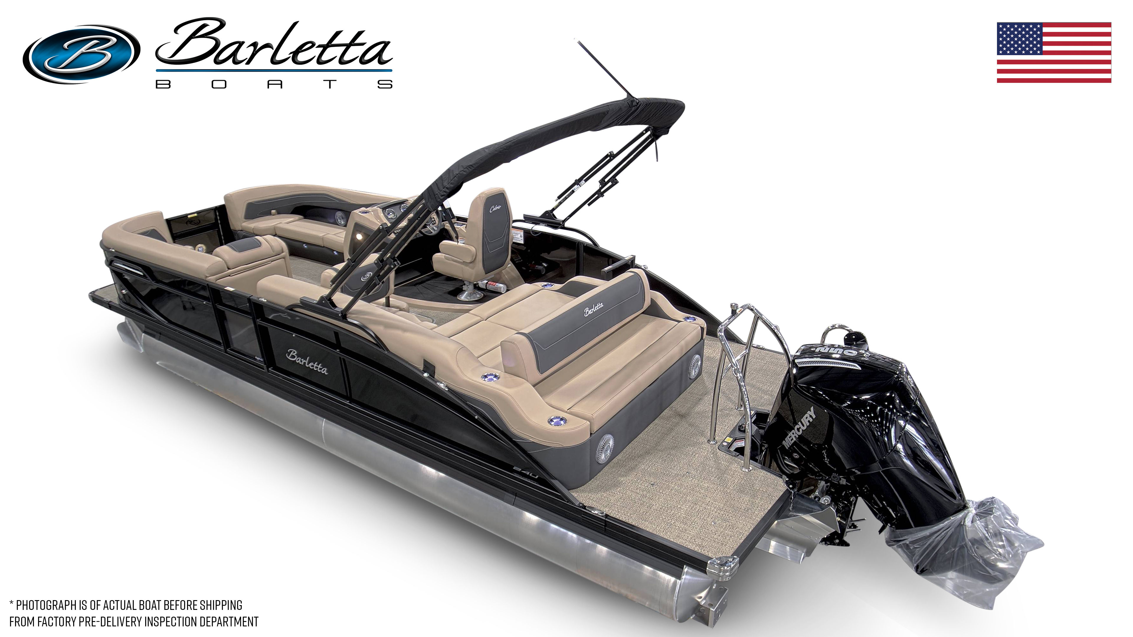 The 2026 Barletta Cabrio C24U pontoon is a standout choice for anyone seeking a new pontoon boat for sale that combines luxury, performance, and versatility. With its powerful Mercury 250L FourStroke engine, stylish Carmella Tan with Onyx furniture, advanced Simrad chartplotter, and eye-catching Black Diamond railskin color, this boat is built to impress. The interior RGB lighting package, stainless steel flag pole with American flag, and Amore Tan flooring add the finishing touches to an already exceptional vessel.Experience the joy of boating with a Barletta boat for sale that’s designed for comfort, fun, and lasting memories. Don’t miss your chance to own the Cabrio C24U—contact your dealer today to learn more and take the first step toward your next adventure on the water.