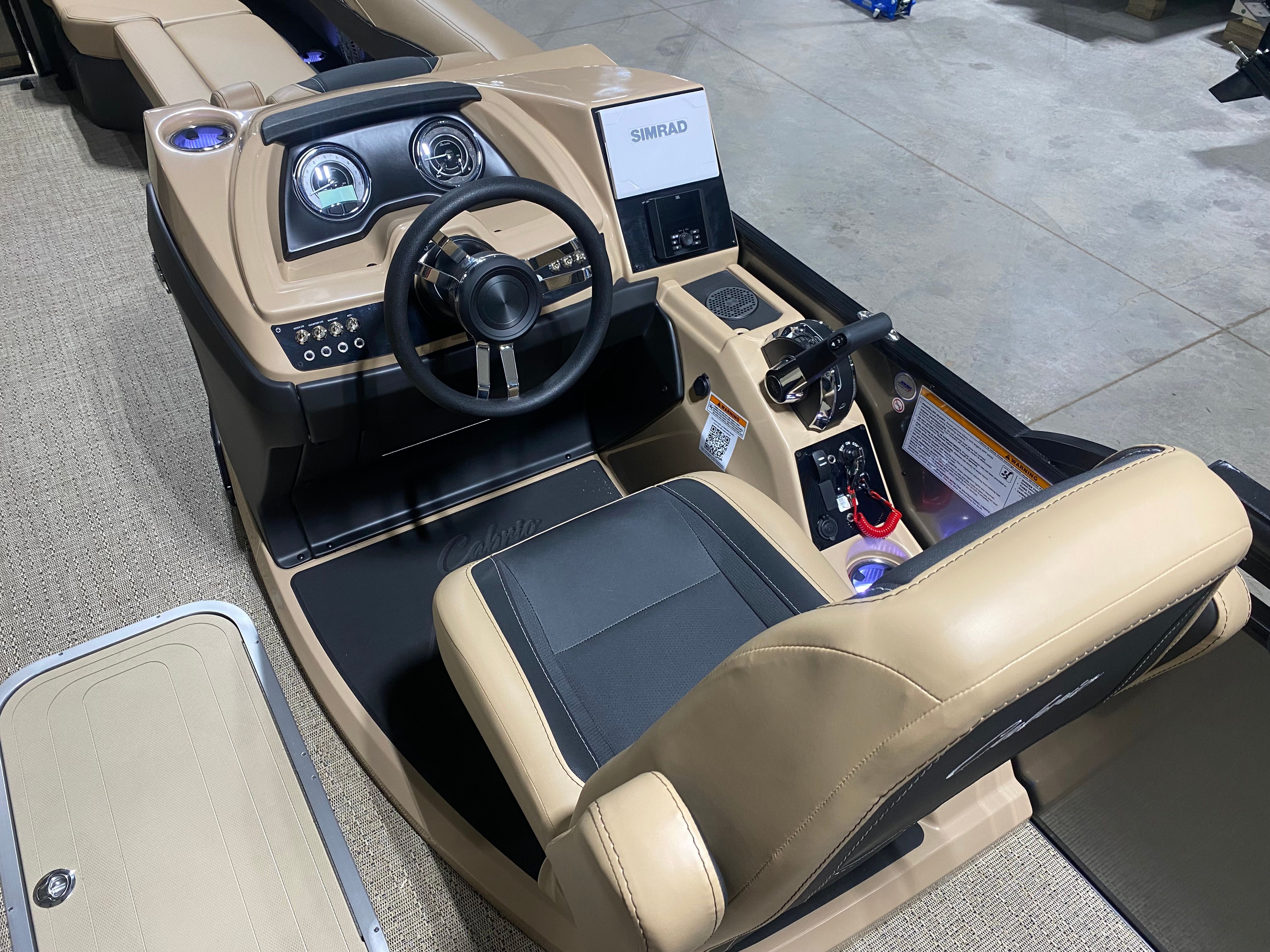 The 2026 Barletta Cabrio C24U is loaded with features that cater to both comfort and convenience. The Blackout Package Cabrio adds a touch of elegance and modern flair, while the Carmella Tan furniture with Onyx accents creates a warm and inviting atmosphere. The Amore Tan flooring is both stylish and durable, designed to withstand the rigors of active days on the water. The Triple Toon Package with midship storage not only boosts performance but also provides valuable space for stowing gear and water toys. A stainless steel flag pole with an American flag adds a patriotic touch, making this pontoon a standout wherever you go.