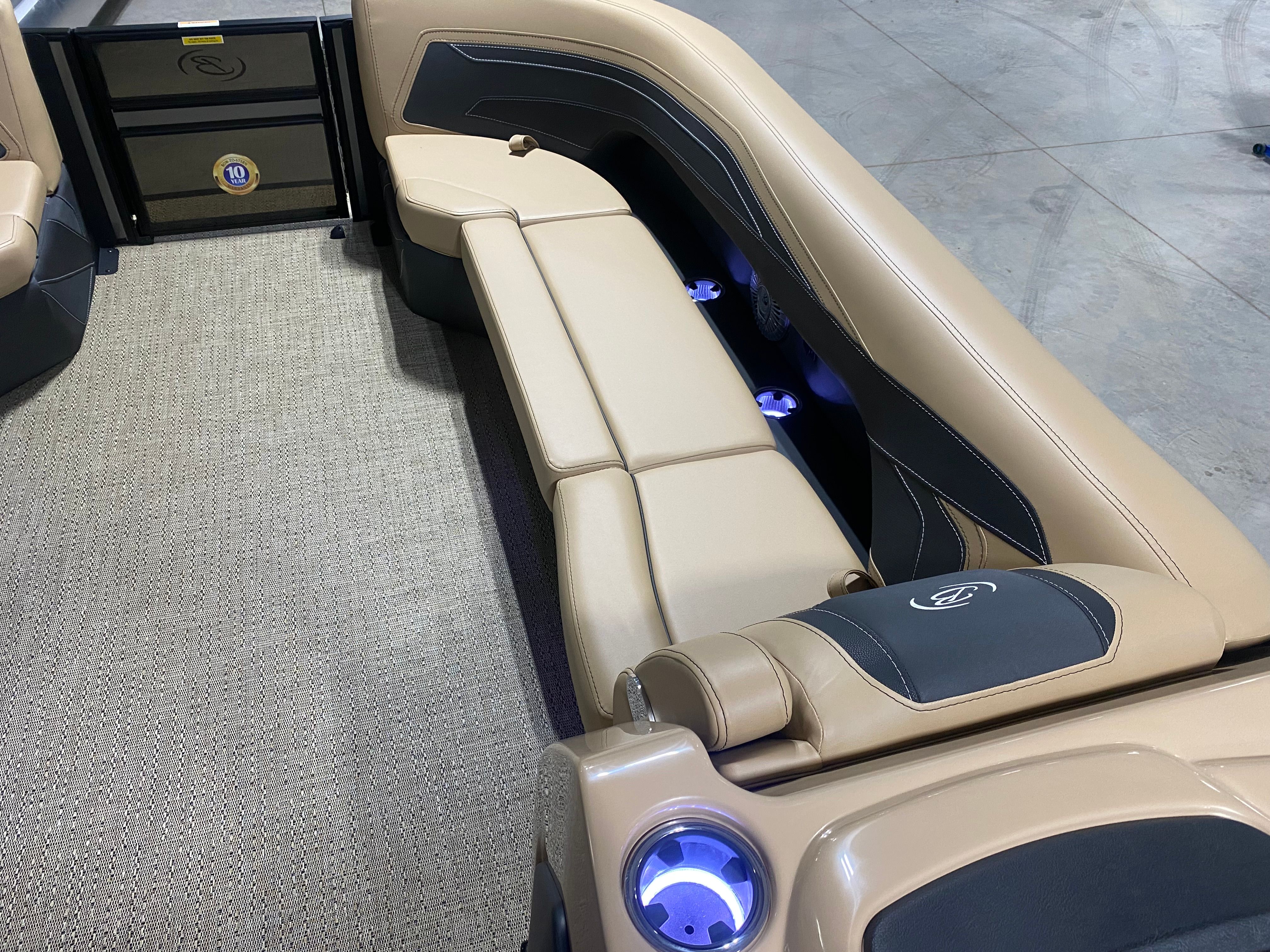 The Barletta Cabrio C24U is as practical as it is luxurious. The midship storage compartment is ideal for keeping life jackets, water sports equipment, and picnic supplies within easy reach. The sturdy construction and reliable Mercury engine ensure that maintenance is straightforward, allowing you to spend more time enjoying the water and less time worrying about upkeep. The pontoon’s length and design make it easy to dock at marinas or lakeside restaurants, while its fuel-efficient engine helps you go further on every tank. Whether you are planning a quick afternoon escape or an all-day excursion, this pontoon adapts to your needs with ease.