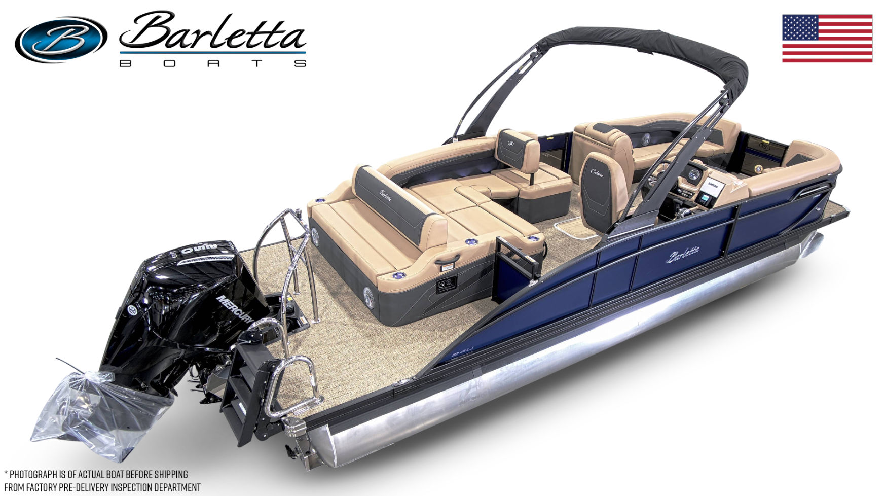 The 2026 Barletta Cabrio C24U is a standout pontoon boat for sale that combines performance, luxury, and practicality in one impressive package. With its powerful 250-horsepower engine, stylish Bohemian Blue railskin, premium Carmella Tan with Onyx furniture, and advanced features like the Simrad 7" G07 XSR chartplotter and sport bimini, this Barletta boat for sale is ready to transform your time on the water. The triple toon package with midship storage, Blackout Package Cabrio, and stainless steel flag pole with American flag further enhance its appeal.If you are looking for a new pontoon boat that offers comfort, style, and exceptional performance, the Barletta Cabrio C24U is the perfect choice. Don’t miss your chance to experience the ultimate in boating enjoyment—contact your local dealer today to learn more about this incredible pontoon and start planning your next adventure.