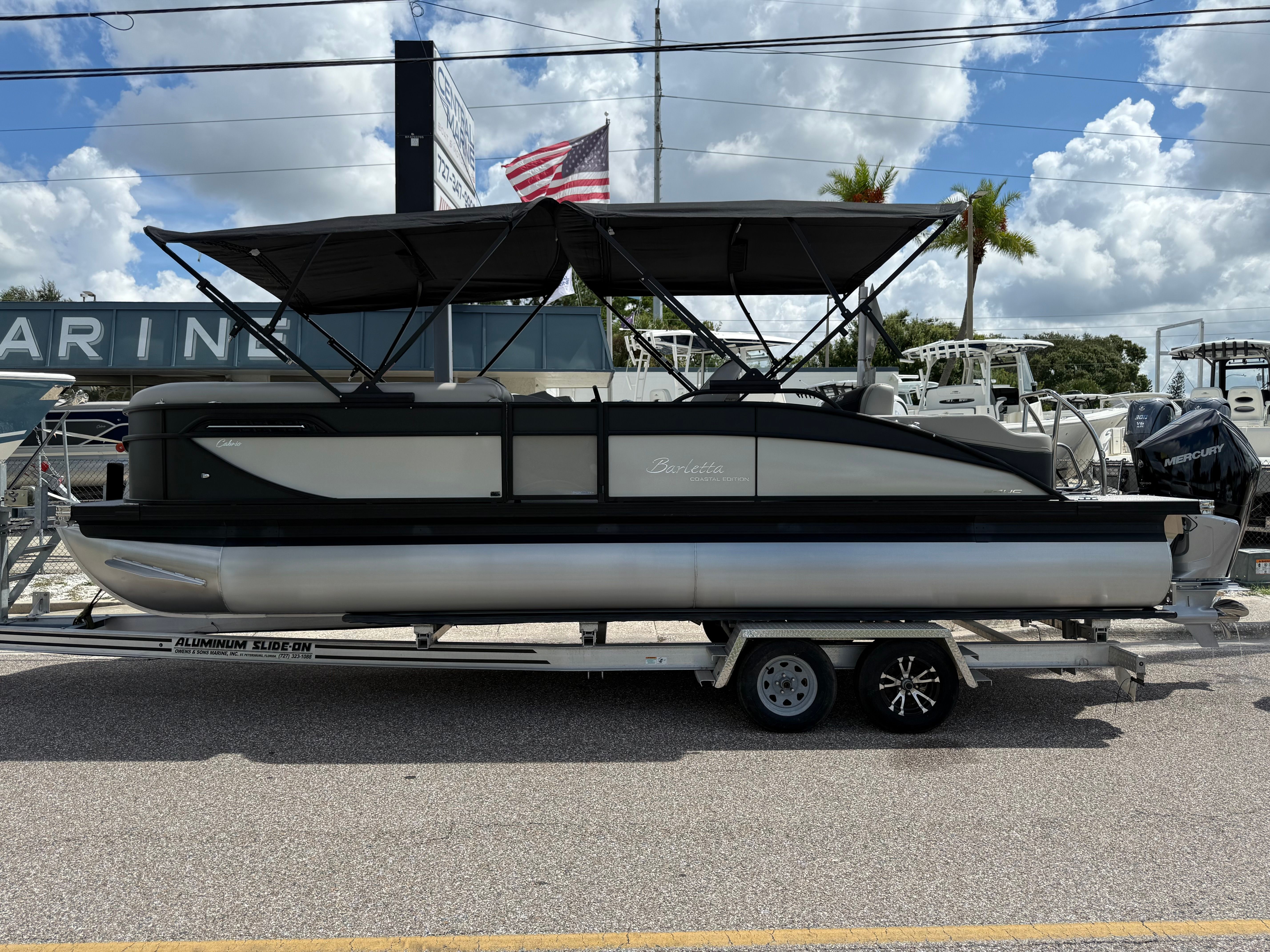 The Barletta Cabrio C24UC is as practical as it is luxurious. The midship storage provided by the Triple Toon Package makes it easy to stow water toys, fishing gear, or picnic supplies, keeping the deck clutter-free and organized. The boat’s length and design make docking straightforward, while the hydraulic and power assist steering allow for precise movements in tight spaces. Fuel efficiency is enhanced by the advanced Mercury Verado V8 engine, helping you make the most of every outing without frequent stops at the pump. The durable construction and high-quality materials ensure that your investment will stand the test of time, providing years of enjoyment and minimal maintenance.