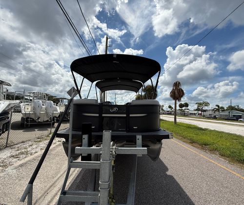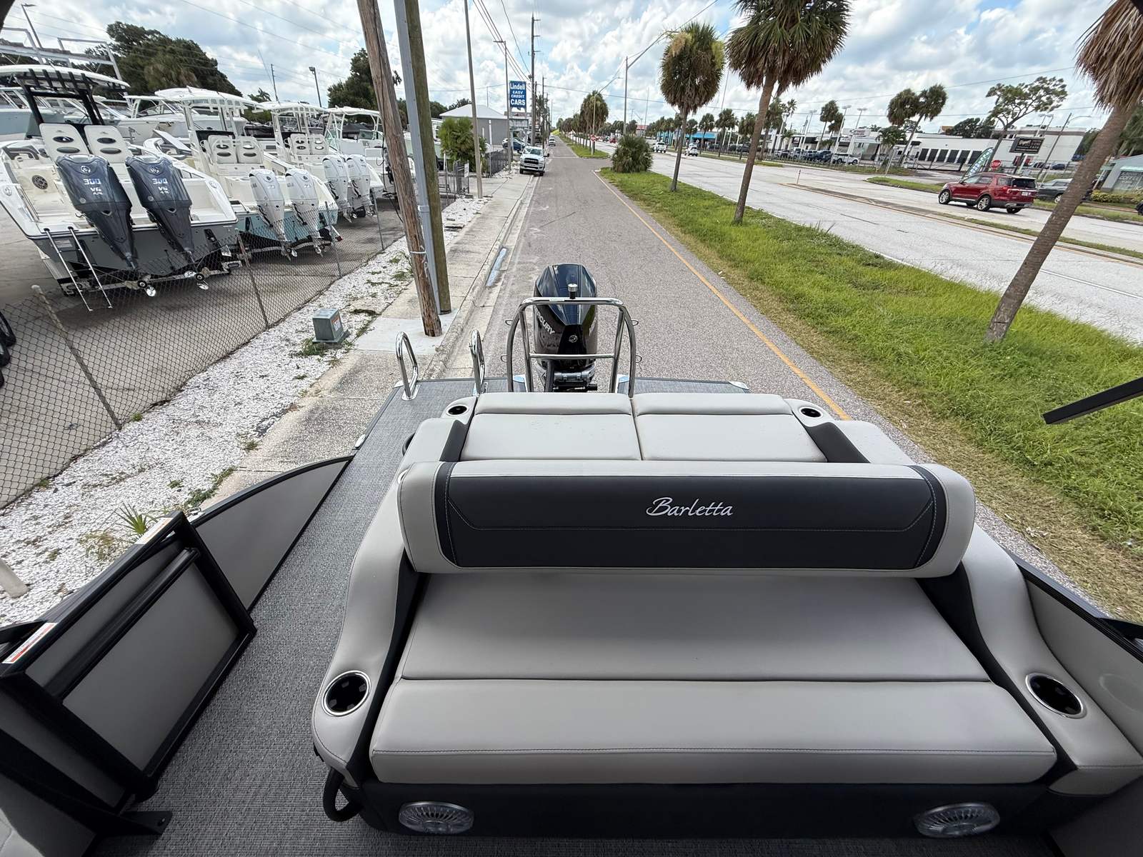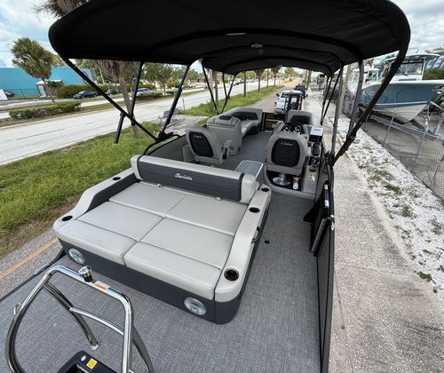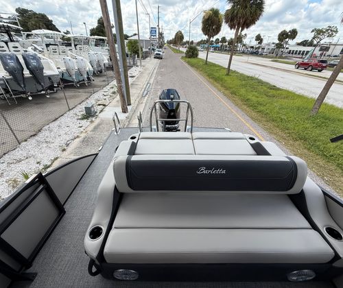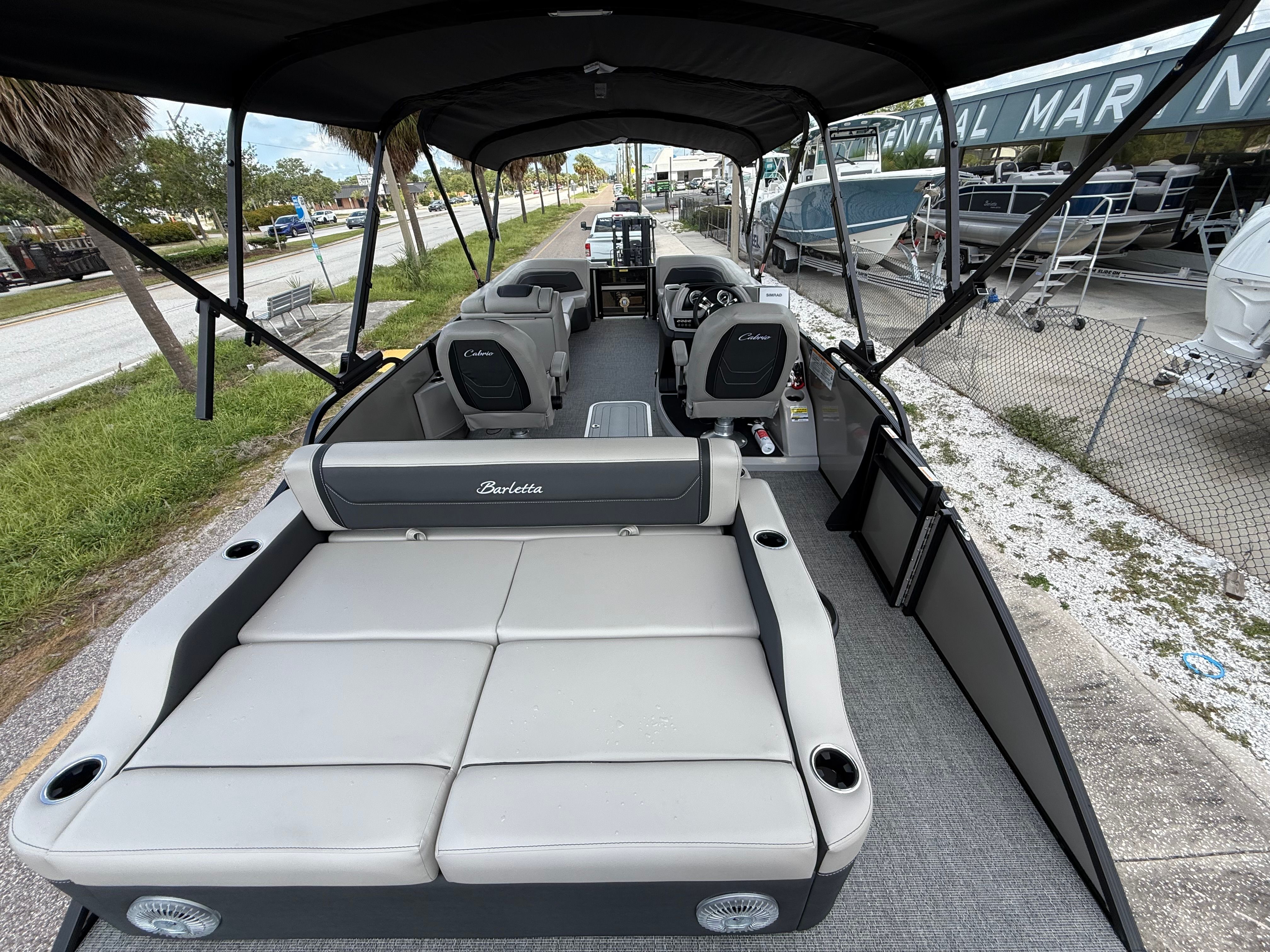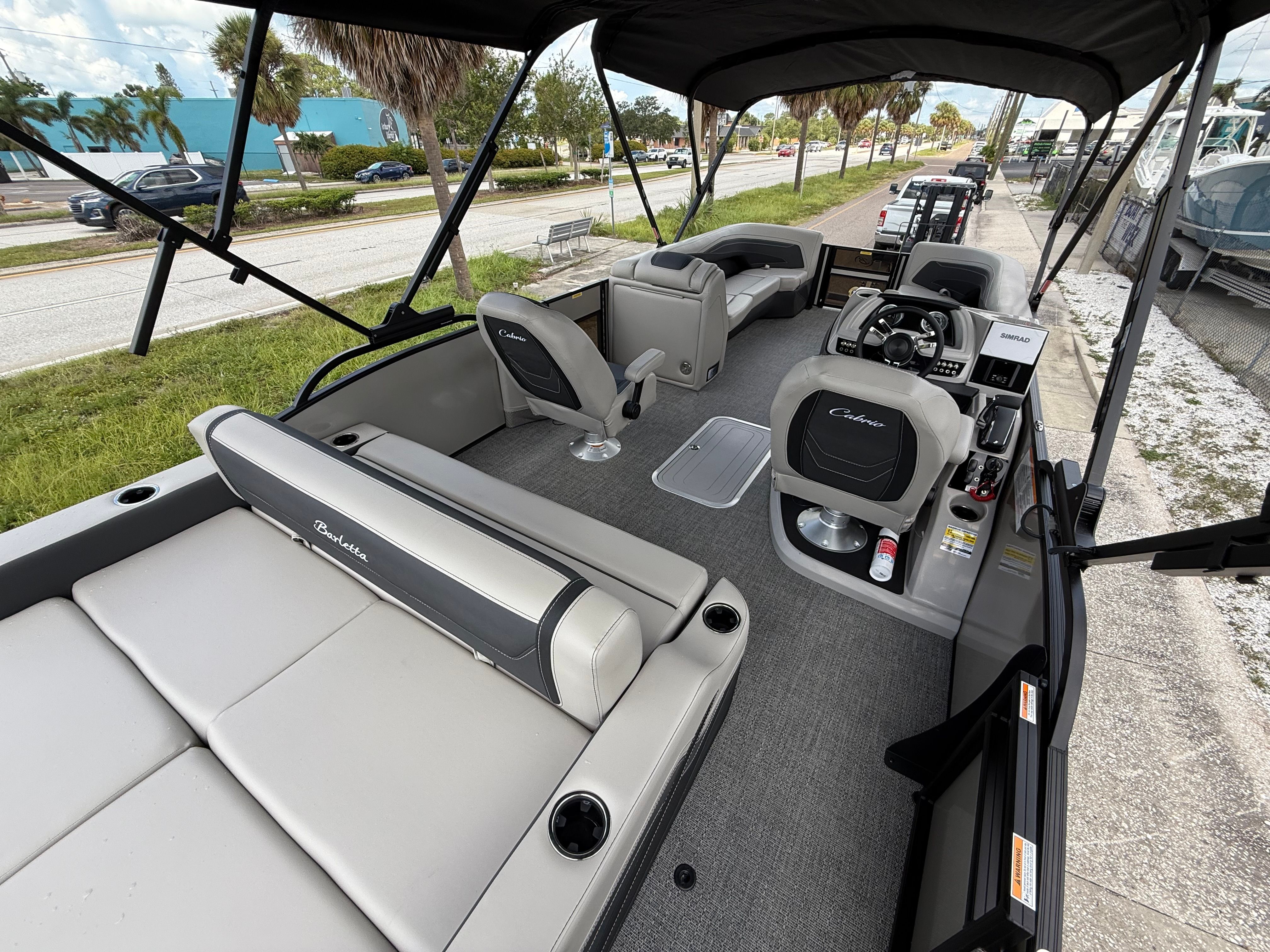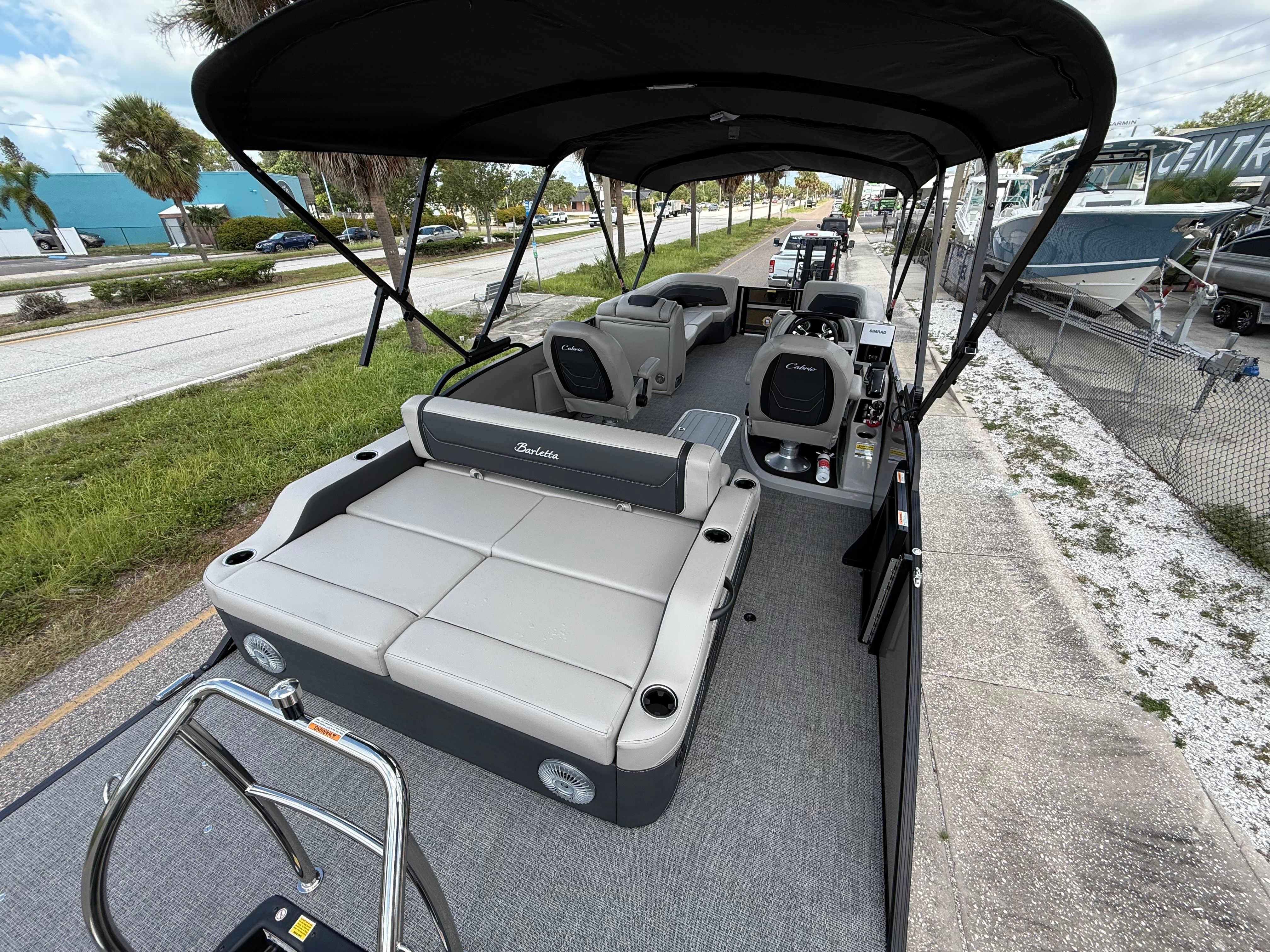 The 2026 Barletta Cabrio C24UC is packed with features designed to maximize comfort, convenience, and enjoyment. The Blackout Package Cabrio adds a bold, contemporary touch to the exterior, while the Coastal Edition Cabrio ensures durability and style in a variety of environments. The Triple Toon Package with midship storage provides enhanced stability and additional space for gear, making it easy to bring along everything you need for a day on the water. The combination of Marquesan Gray/Onyx furniture and Amore Gray flooring not only looks stunning but also offers a plush, comfortable setting for relaxing or entertaining. Digital gauges keep you informed at a glance, while the rigged engine with a stainless steel prop ensures optimal performance and longevity.