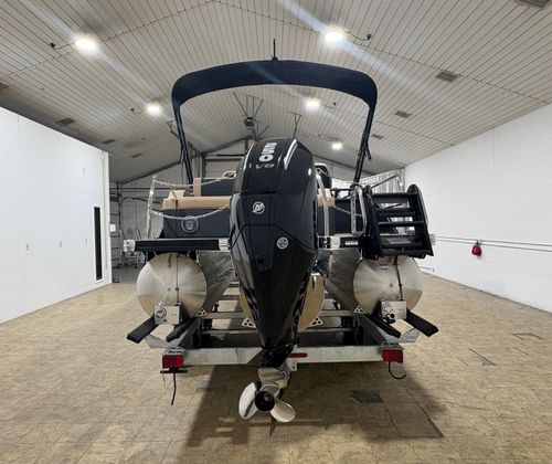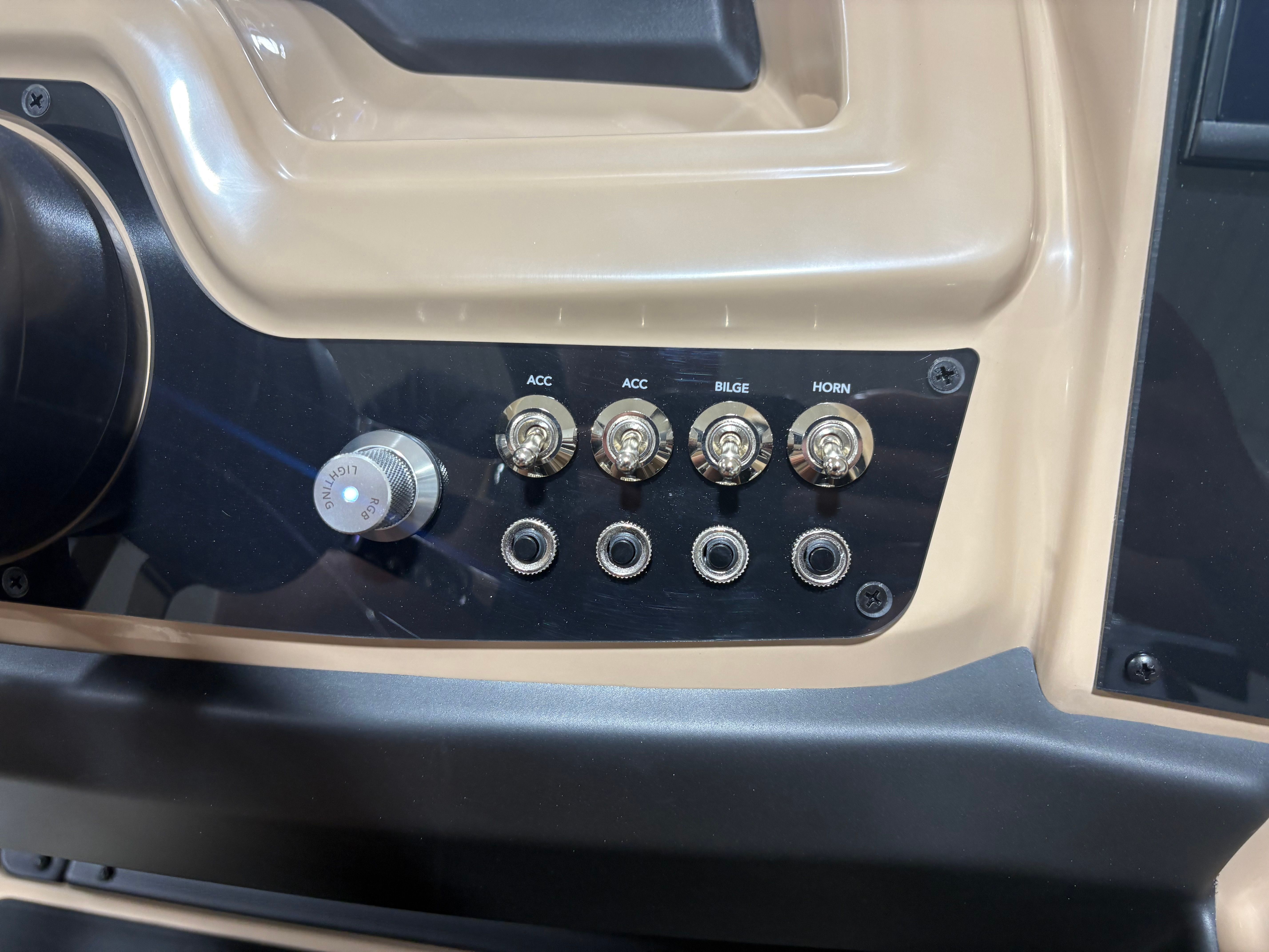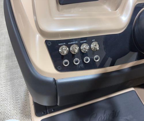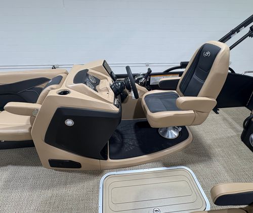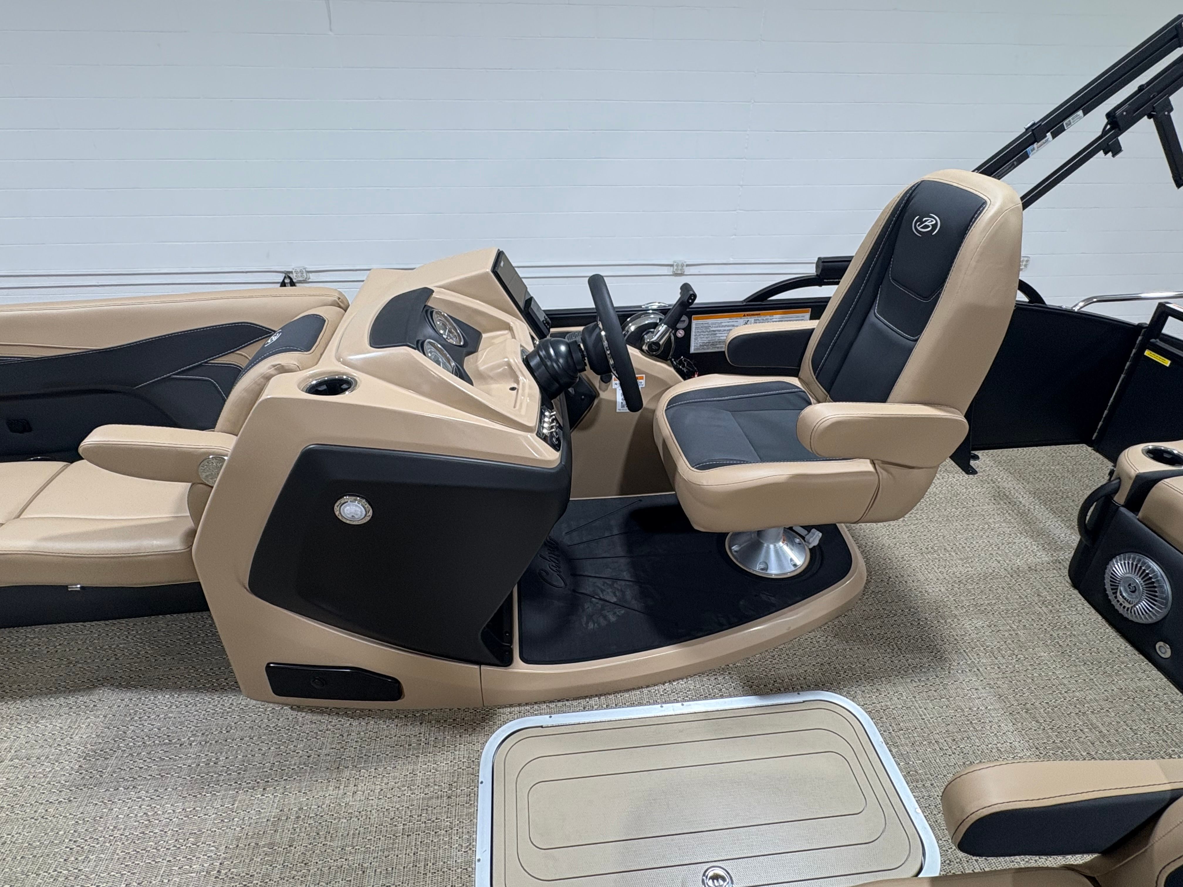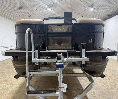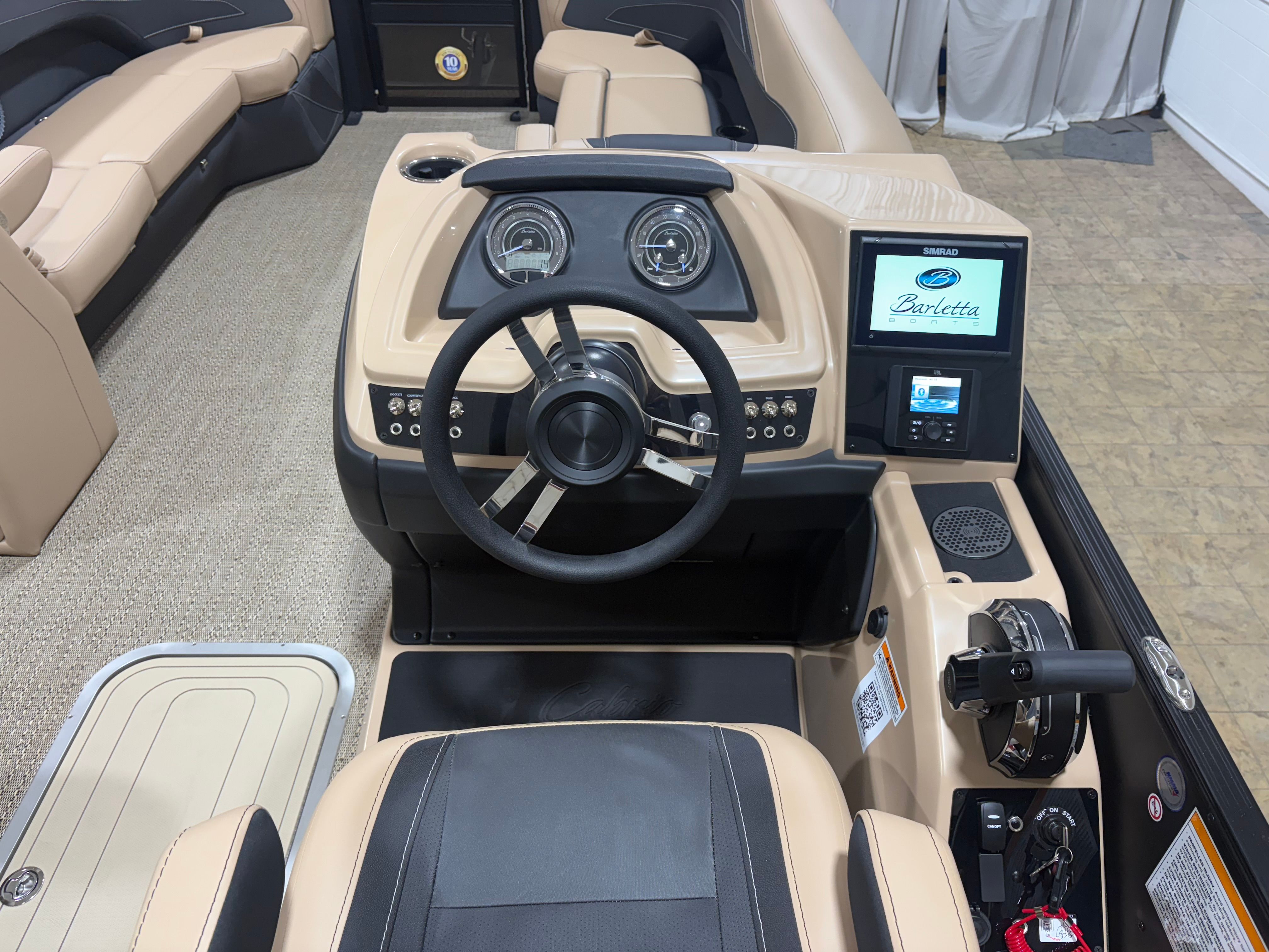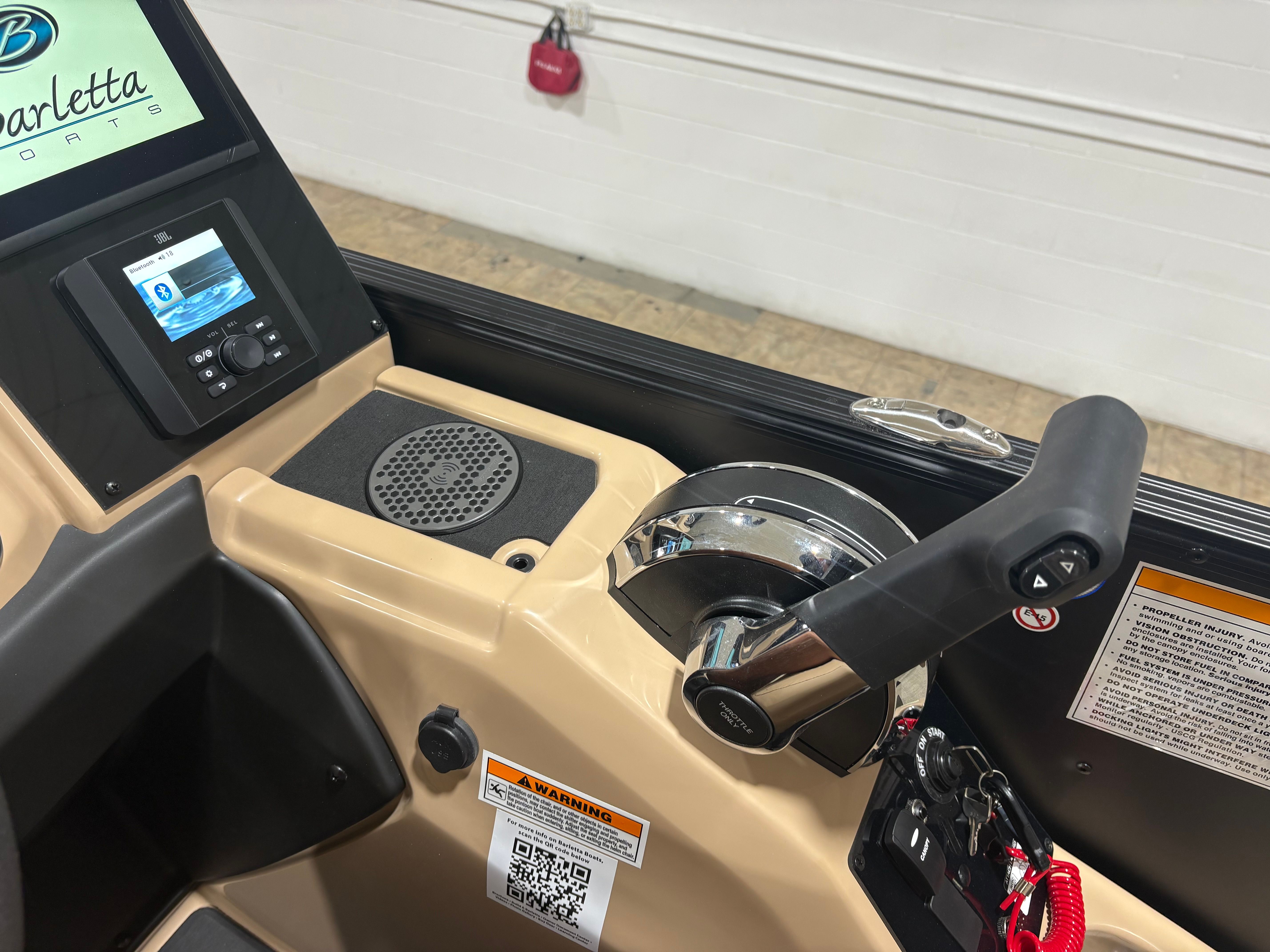 The 2026 Barletta Cabrio C24UC comes loaded with special features that elevate your time on the water. The striking Black Diamond railskin color, accented by a Matte Black finish and complemented by the Blackout Package Cabrio, gives this pontoon a bold and sophisticated look. Inside, the Carmella Tan furniture with Onyx accents provides a luxurious and inviting atmosphere, while the Amore Tan flooring adds a touch of elegance and comfort underfoot.For those who value storage and convenience, the Triple Toon Package with Midship Storage - Cabrio ensures you have plenty of space to stow gear, water toys, and personal items, keeping the deck clutter-free and organized. The pre-rigged Mercury mechanical system with power assist makes handling and maneuvering the boat effortless, while the stainless steel prop enhances performance and durability. A stainless steel flag pole with an American flag adds a patriotic touch, making this pontoon boat a true head-turner wherever you go.