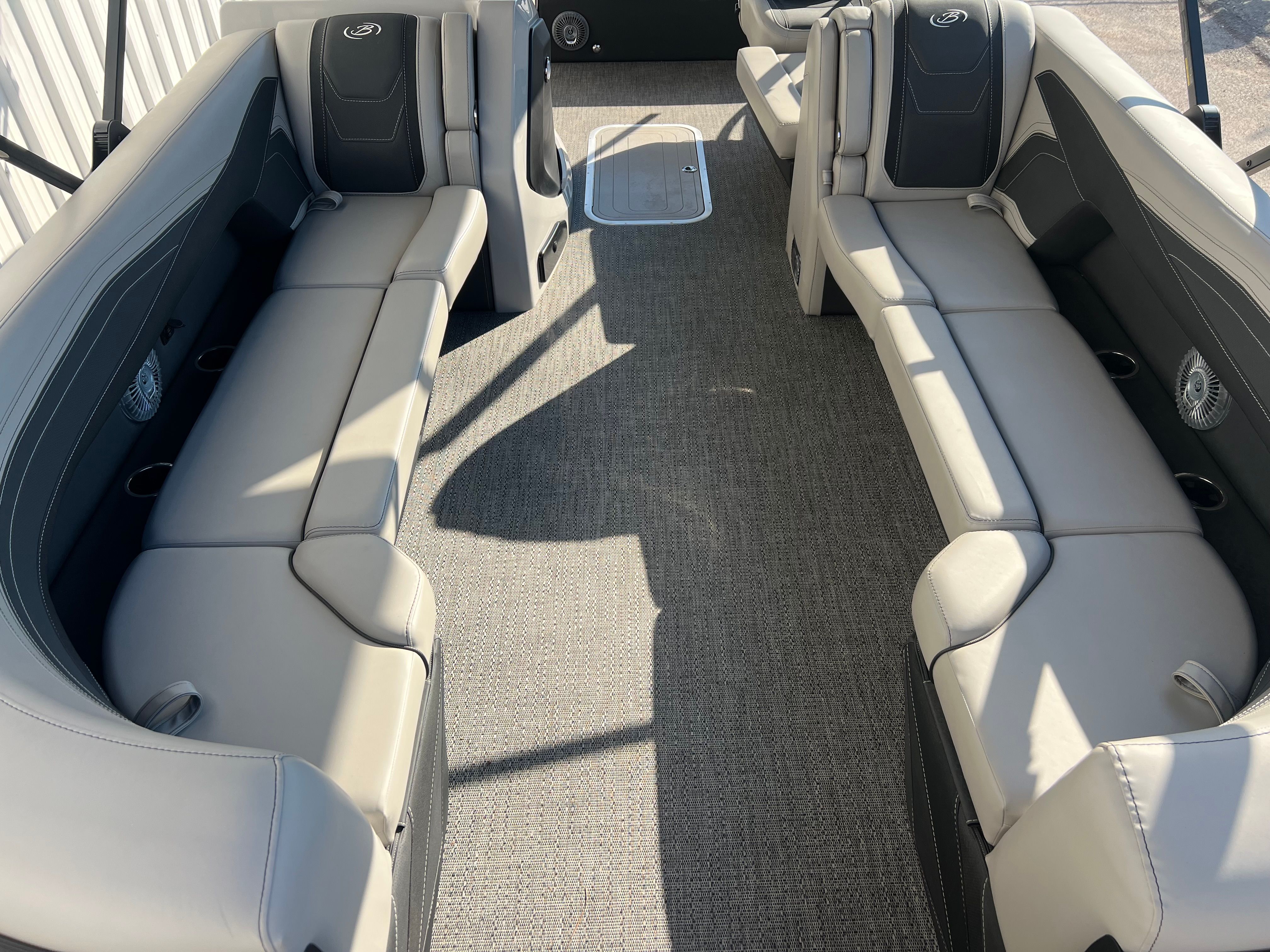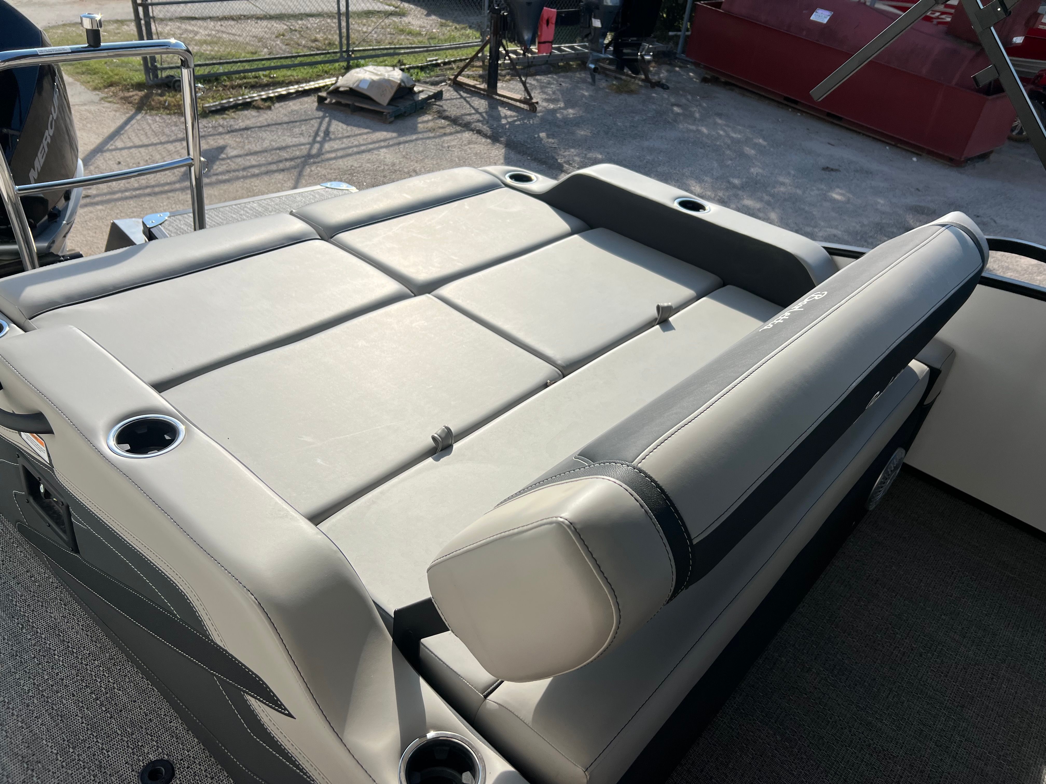 The Barletta Cabrio C24UC is packed with special features that set it apart from other pontoon boats for sale. The Black Diamond Railskin with Winter White accent and Blackout Package Cabrio create a bold, modern look that turns heads at the marina. Inside, the Marquesan Gray/Onyx furniture provides plush seating and a refined atmosphere, while the Amore Gray flooring is both stylish and easy to maintain. The triple toon package with midship storage offers enhanced stability and extra space for gear, making it perfect for long days on the water. The Mercury 250L Verado V8 engine, paired with Mercury Digital DTS Pre-Rig and Vessel Link, ensures advanced digital control and connectivity. Hydraulic and power assist steering, digital gauges, and a stainless steel prop further enhance the boat’s performance and ease of use. The double bimini canvas provides generous shade, allowing you to relax comfortably even on the sunniest days.