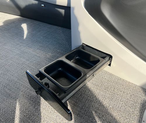 Powering the Cabrio C24UC is a Mercury (D) 250L Verado V8 engine, delivering a robust 250 horsepower with only one engine hour. This powerhouse ensures smooth acceleration, impressive top speeds, and reliable performance for all your adventures. The Mercury Digital DTS Pre-Rig for VERADO engines with Vessel Link provides seamless digital control, while hydraulic and power assist steering make maneuvering effortless. Digital gauges offer precise monitoring of engine metrics, and the rigging includes a stainless steel prop for enhanced durability and efficiency. Whether you’re cruising, towing water toys, or exploring new waters, this pontoon boat is engineered to perform.