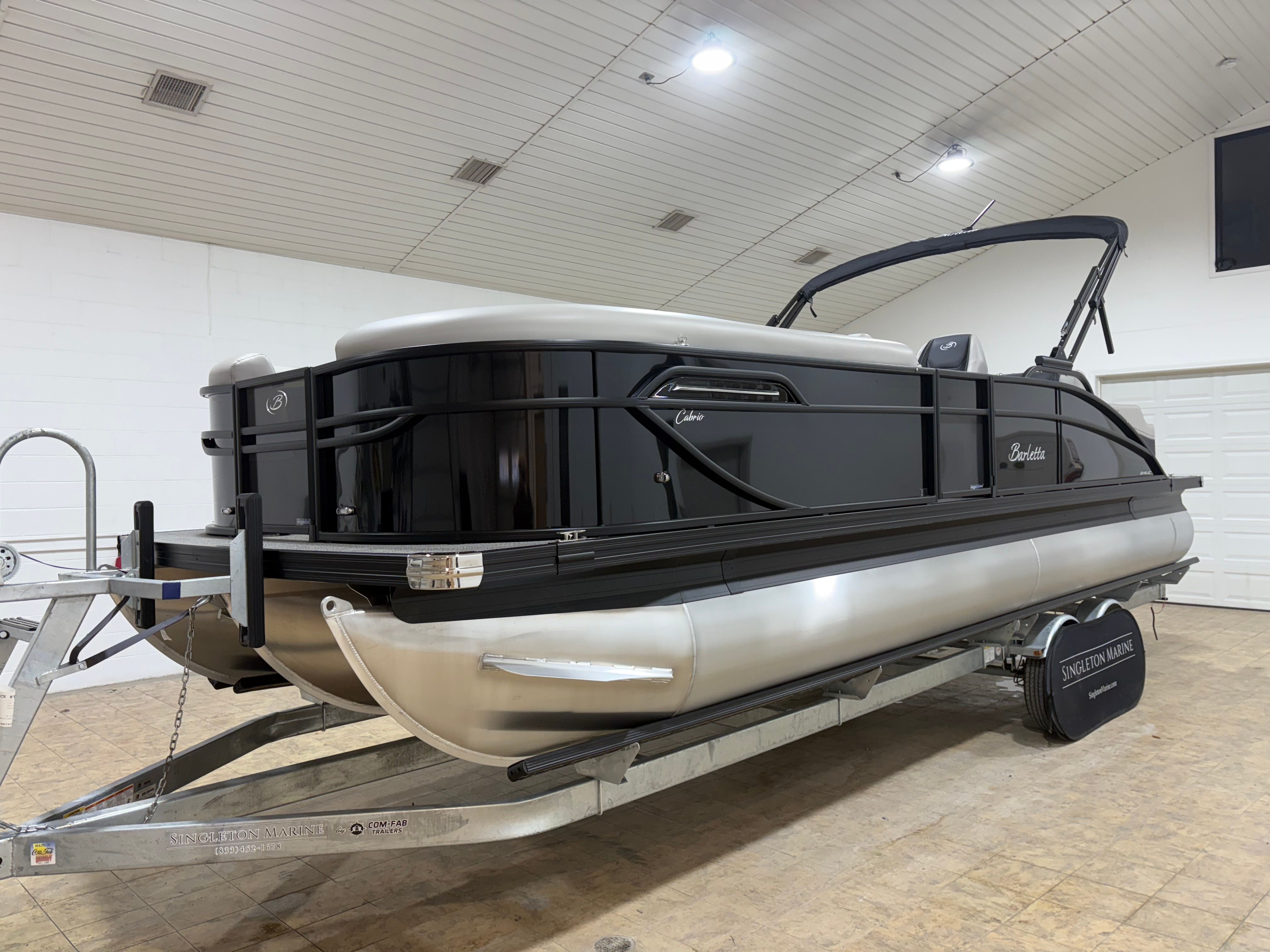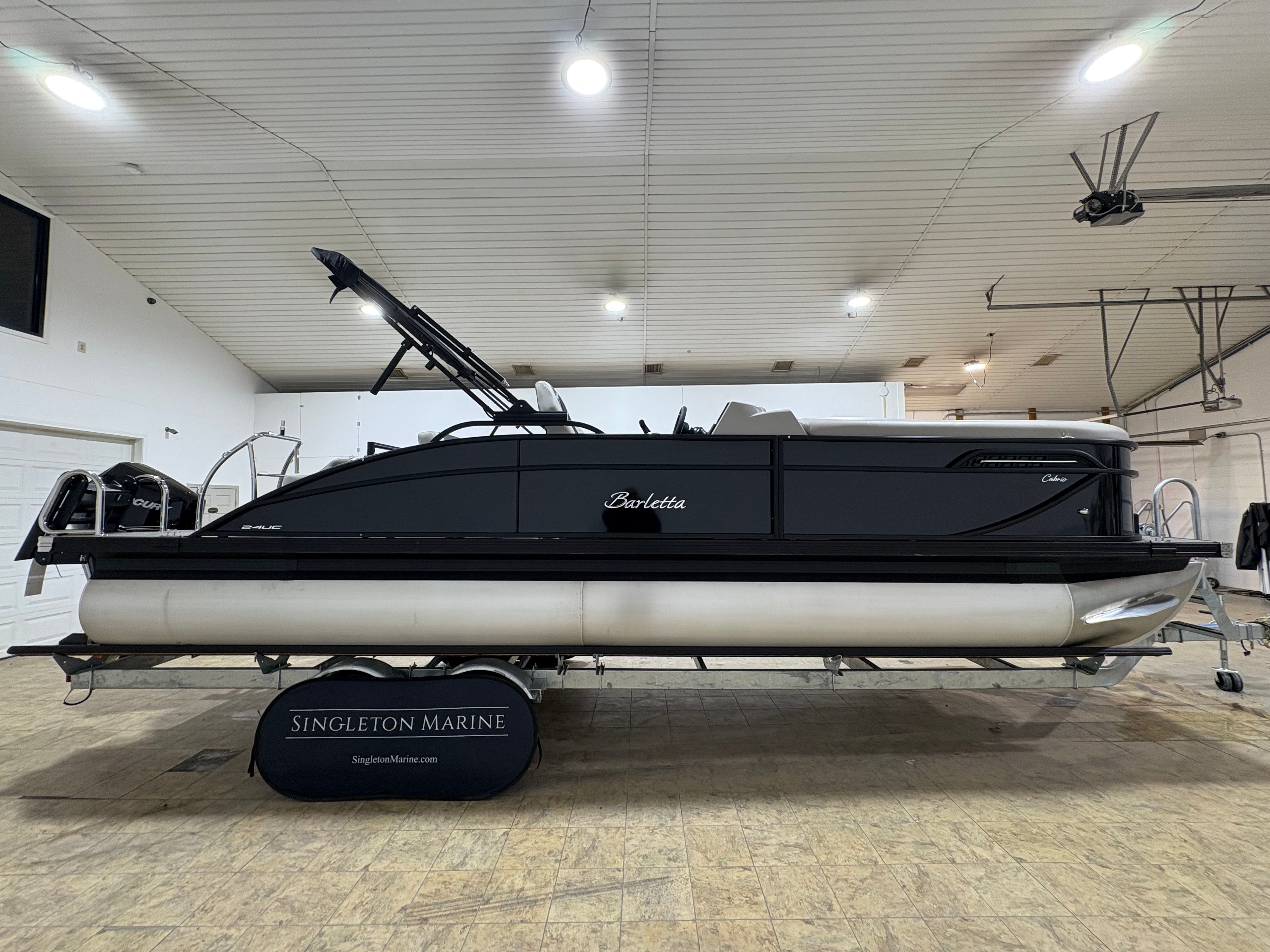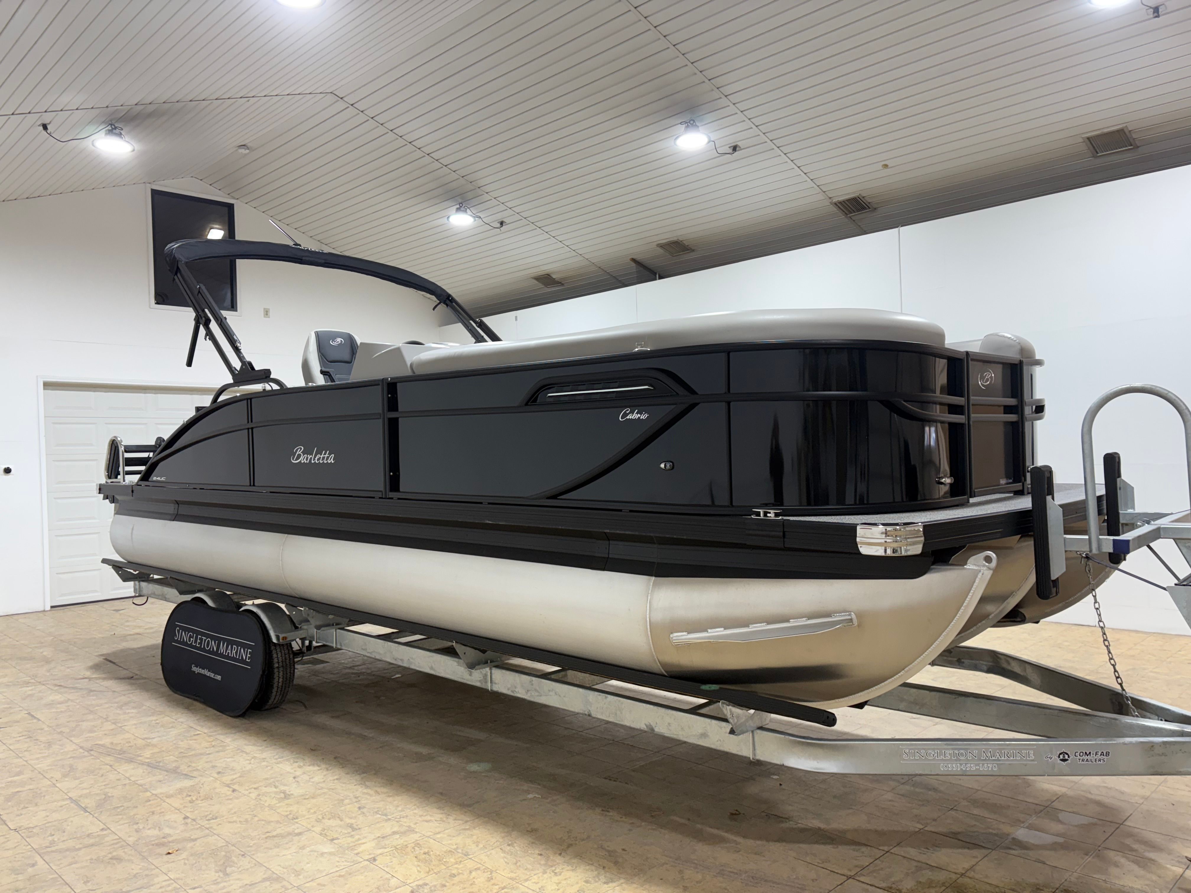 The Barletta Cabrio C24UC is a 2026 model, measuring an impressive 25.17 feet in length. This spacious pontoon offers ample room for passengers to stretch out, socialize, and enjoy the ride. With its sleek Black Diamond Railskin color and the exclusive Blackout Package Cabrio, this boat commands attention wherever it goes. The Marquesan Gray with Onyx furniture and Amore Gray flooring create a sophisticated and inviting atmosphere, making every outing feel like a special occasion. As a new pontoon boat for sale, the Cabrio C24UC is ready to deliver years of reliable fun and adventure.
