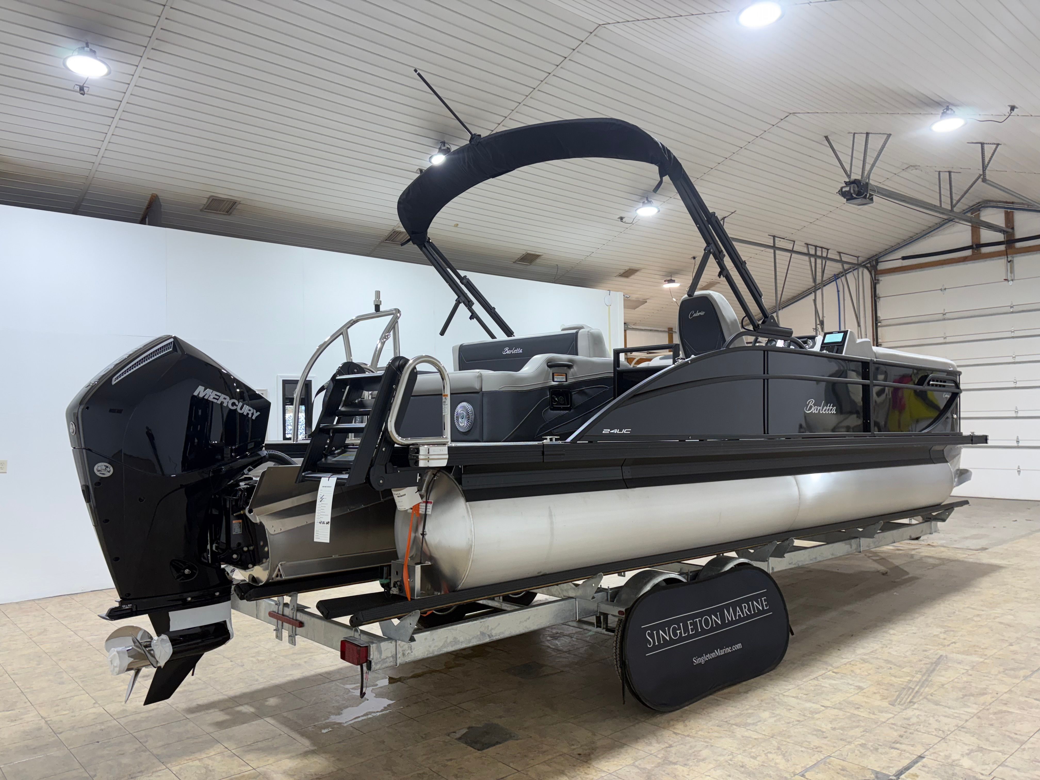 The 2026 Barletta Cabrio C24UC pontoon boat for sale is a remarkable blend of style, performance, and versatility. With its powerful Mercury 200L FourStroke engine, striking Black Diamond Railskin color, Blackout Package Cabrio, and luxurious Marquesan Gray with Onyx furniture, this pontoon is designed to impress. The Triple Toon Package with midship storage, interior RGB lighting, and stainless steel flag pole with American flag add to its appeal, making every outing memorable. If you’re looking for a Barletta boat for sale that offers comfort, convenience, and endless fun, the Cabrio C24UC is the perfect choice. Discover the joy of owning a premium pontoon and make every day on the water extraordinary. Contact your local dealer today to learn more about this exceptional boat and start your next adventure!