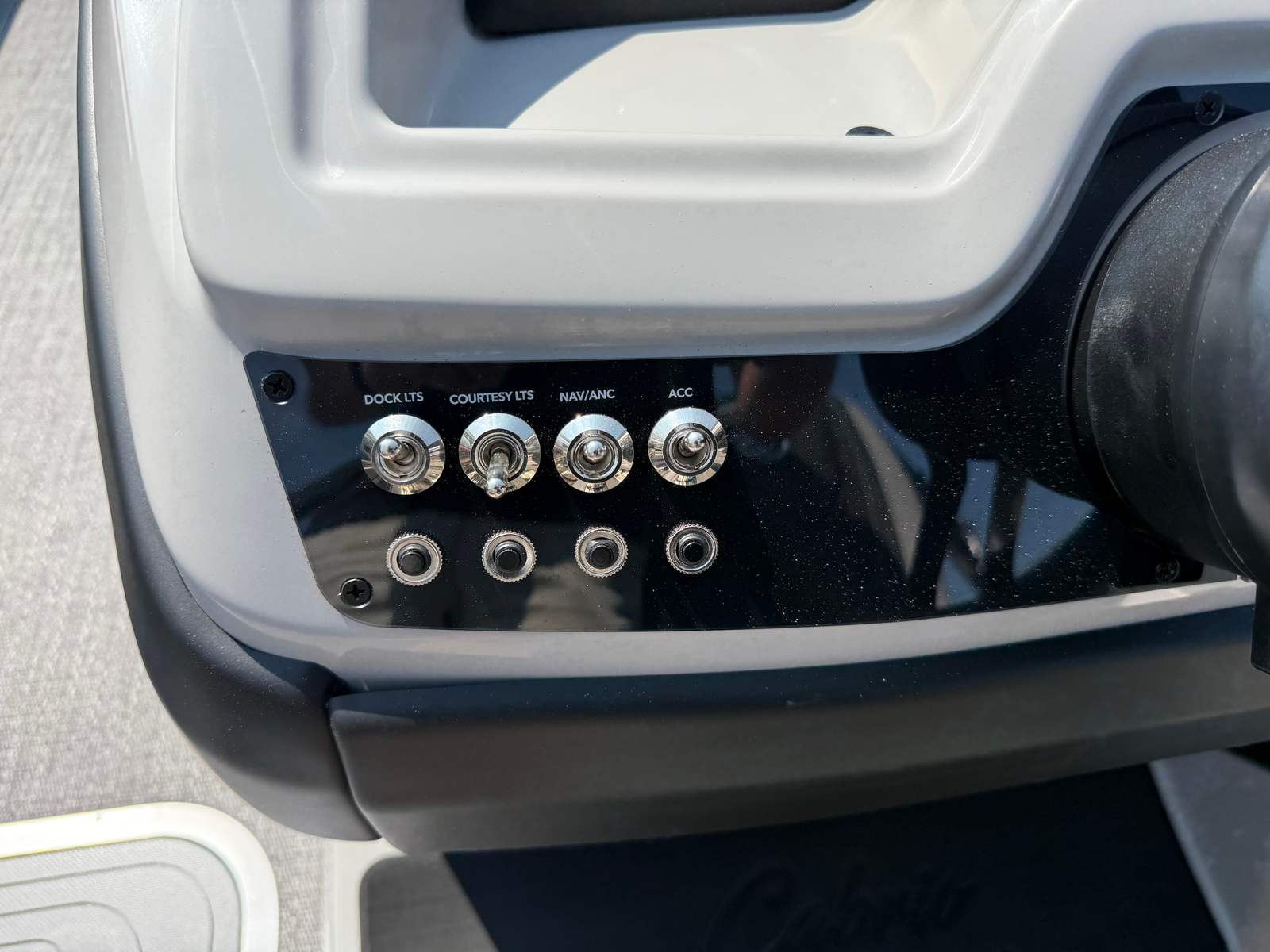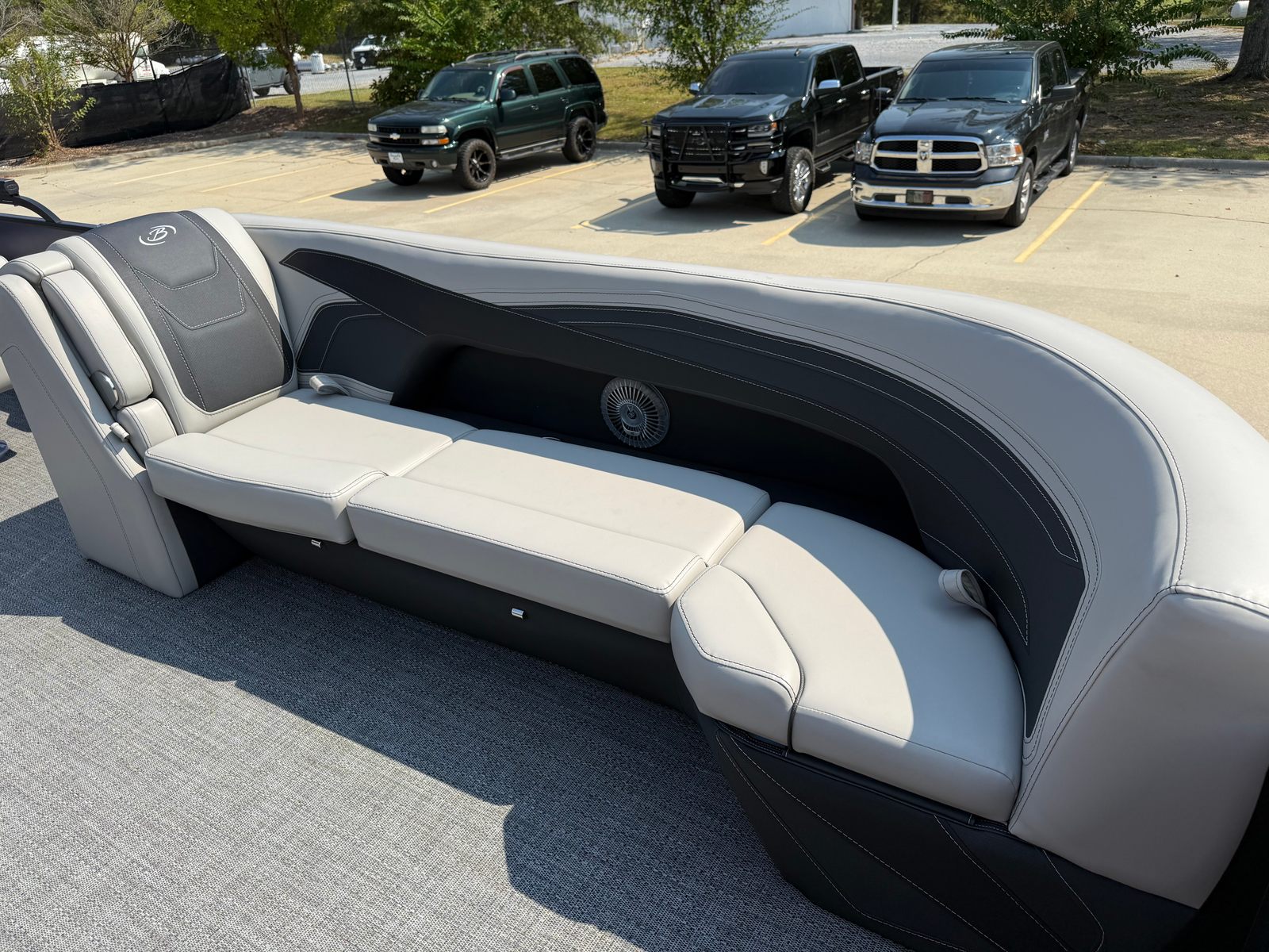 Step aboard and discover a world of comfort and convenience. The Marquesan Gray furniture with Onyx accents creates a luxurious and inviting atmosphere, perfect for relaxing with family and friends. The Amore Gray flooring is both stylish and practical, offering a soft underfoot feel and easy maintenance. The triple toon package with midship storage not only enhances performance but also provides valuable space for storing gear, water toys, and essentials, keeping your deck clutter-free and organized.The onboard battery charger with two batteries ensures you have reliable power for all your electronics and accessories, so you can enjoy extended days on the water without worry. The Blackout Package Cabrio adds a sleek, modern touch to the boat’s exterior, while the railskin color and accent combination make a bold statement. Every detail of the Cabrio C24UC is designed to elevate your boating experience, from the premium materials to the thoughtful layout.