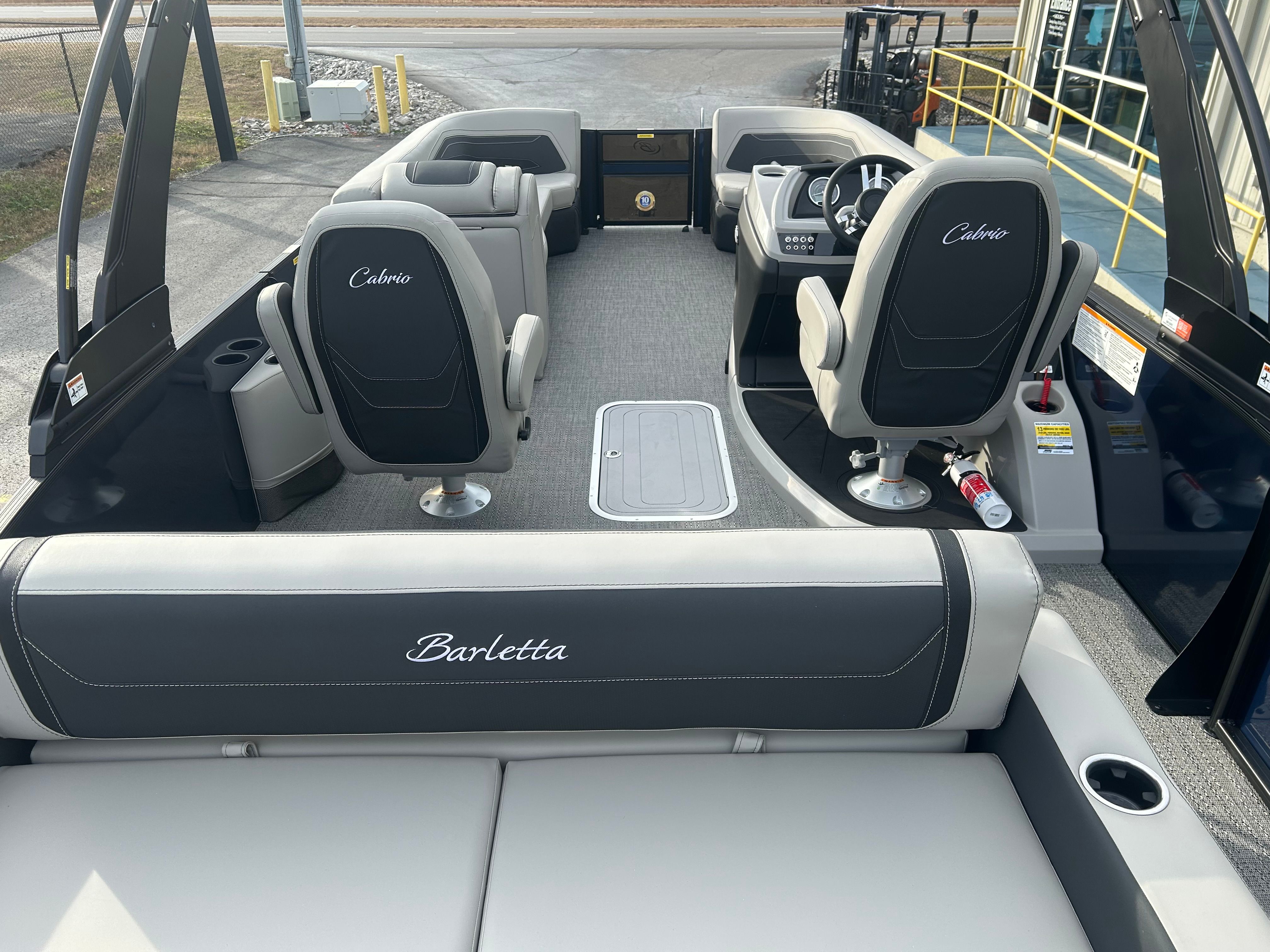 The 2026 Barletta Cabrio C24UC is a brand-new pontoon boat that measures just over 25 feet in length, offering ample space for family, friends, and all your favorite activities. Barletta’s reputation for quality craftsmanship and attention to detail is evident in every inch of this model. The Cabrio C24UC’s sleek profile is enhanced by its Blue Sapphire Railskin color and the sophisticated Blackout Package Cabrio, ensuring you turn heads at every dock and marina. Whether you are planning a relaxing cruise, a lively party, or a day of water sports, this Barletta boat for sale is built to deliver a premium experience.