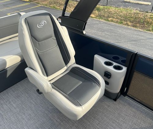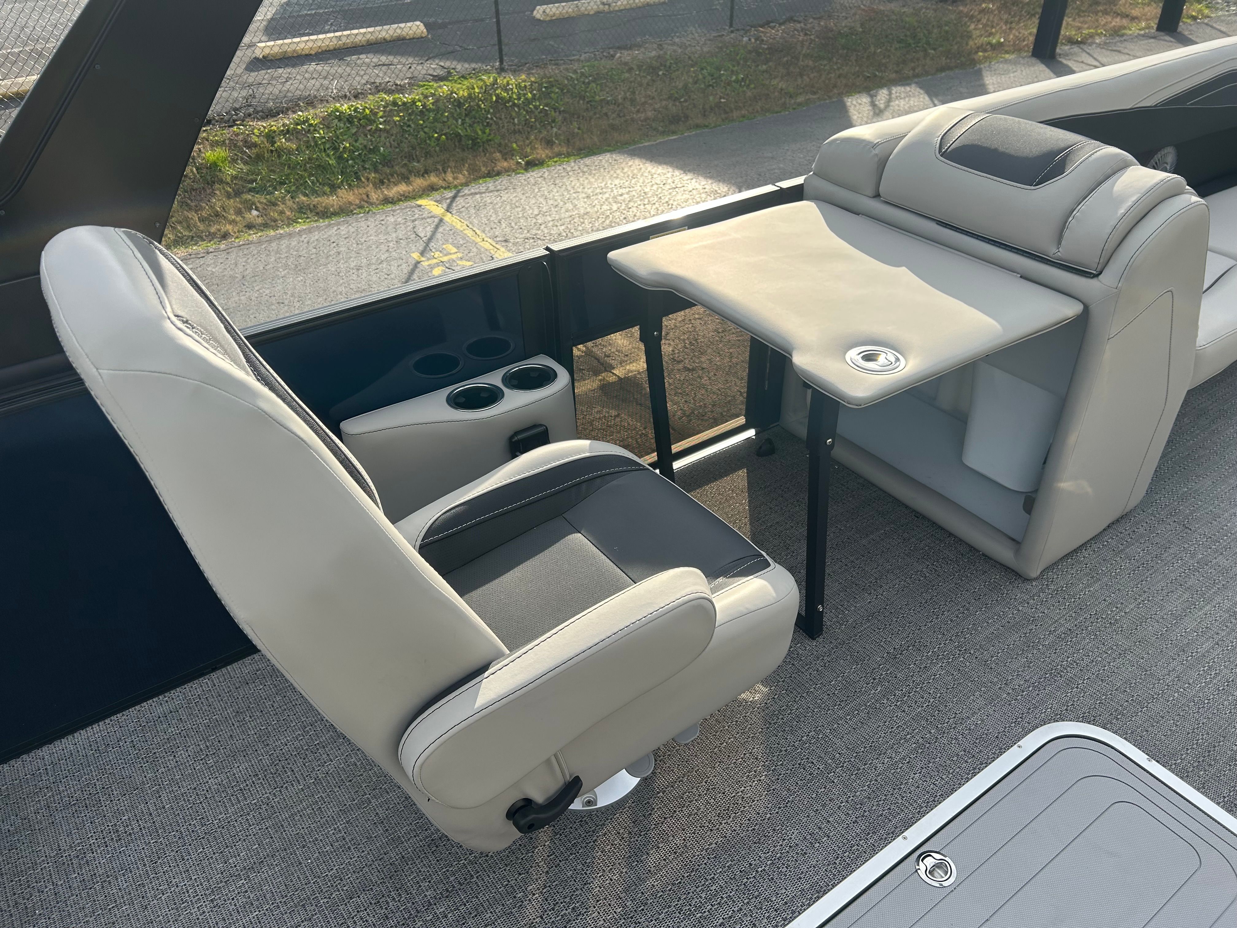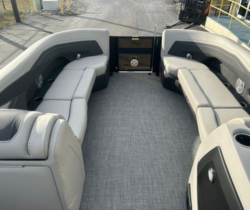 Step aboard the Cabrio C24UC and you are greeted by an inviting and stylish interior. The Marquesan Gray furniture with Onyx accents creates a modern, upscale atmosphere, while the Amore Gray flooring is both attractive and practical, providing comfort underfoot and easy maintenance. The Triple Toon Package with midship storage enhances stability and performance, making this pontoon ideal for larger groups and a variety of activities. The midship storage compartment is perfect for stowing water toys, safety gear, and other essentials, keeping the deck clutter-free and organized.The Cabrio C24UC is equipped with a Sport Bimini, offering generous shade and protection from the sun, so you can enjoy long days on the water in comfort. The onboard battery charger with two batteries ensures you have reliable power for all your electronics and accessories, while the stainless steel flag pole with an American flag adds a patriotic touch and a sense of pride to your boating experience. Every detail of this Barletta boat for sale is designed to enhance your time on the water, making it a standout choice for discerning buyers.