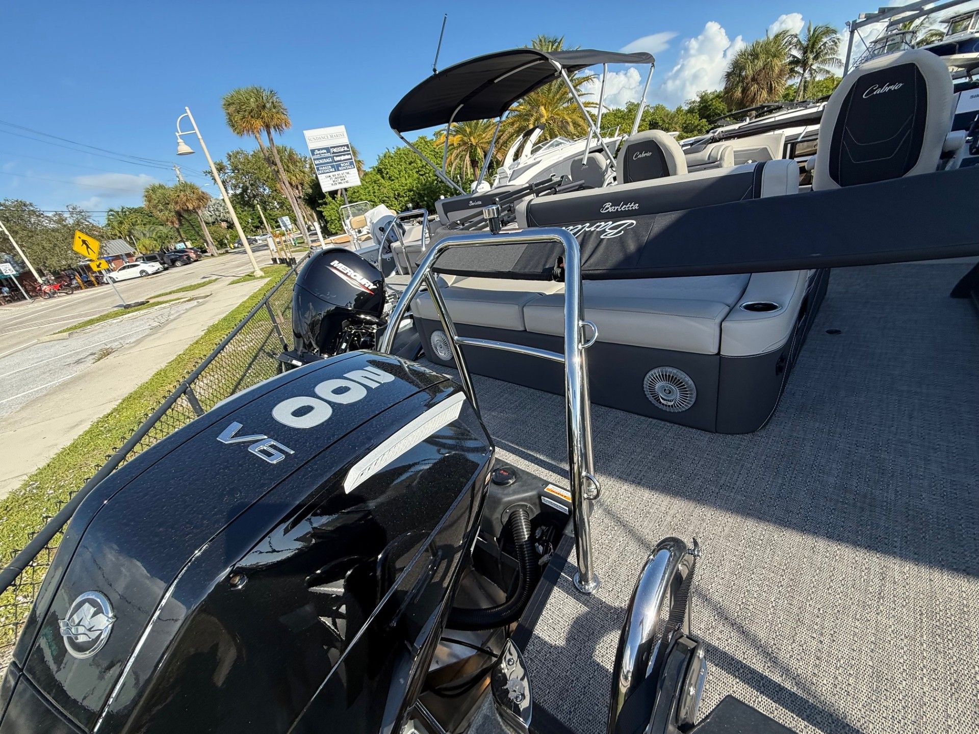 In summary, the 2026 Barletta Cabrio C24UC is a standout pontoon boat for sale that combines luxury, performance, and practicality in one stunning package. With its powerful Mercury engine, advanced navigation system, premium entertainment upgrades, and thoughtful storage solutions, this Barletta boat for sale is designed to deliver unforgettable experiences on the water. The striking Blackout Package Cabrio railskin, stylish Marquesan Gray/Onyx furniture, and patriotic flag pole ensure you’ll make a statement wherever you go.If you’re ready to elevate your boating lifestyle and create lasting memories with family and friends, the Barletta Cabrio C24UC is the perfect choice. Don’t miss your chance to own this exceptional pontoon—contact your local dealer today to learn more and schedule a viewing.