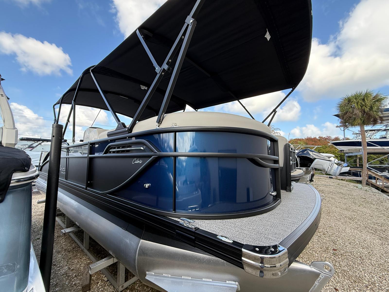 The 2026 Barletta Cabrio C24UE is packed with special features that set it apart from other pontoon boats for sale. The striking Blue Sapphire Railskin and Blackout Package Cabrio give the boat a modern, sporty look, while the Marquesan Gray with Onyx furniture and Amore Gray flooring provide a luxurious, comfortable setting for all your guests. The Coastal Edition Cabrio ensures durability and performance in a variety of water conditions, making this pontoon as versatile as it is stylish.The triple toon package with midship storage offers enhanced buoyancy and ample space for gear, making it easy to bring along everything you need for a day on the water. The Mercury Digital DTS Pre-Rig for VERADO engines with Vessel Link, digital gauges, and rig engine with stainless steel prop deliver advanced technology and reliability. The double bimini canvas provides generous shade, allowing you to enjoy sunny days without worry.