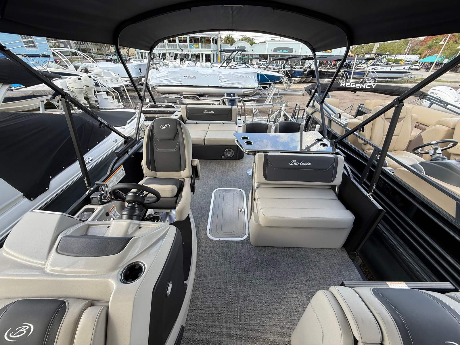 Powering the Barletta Cabrio C24UE is a robust Mercury (D) 200L FourStroke DTS engine, delivering an impressive 250 horsepower. This setup provides smooth, reliable performance whether you’re cruising, towing water toys, or exploring new coves. The Mercury Digital DTS Pre-Rig for VERADO engines with Vessel Link ensures seamless integration and precise control, while the hydraulic and power assist steering make handling effortless, even in tight quarters. The triple toon package with midship storage enhances stability and ride quality, allowing you to glide across the water with confidence and comfort.