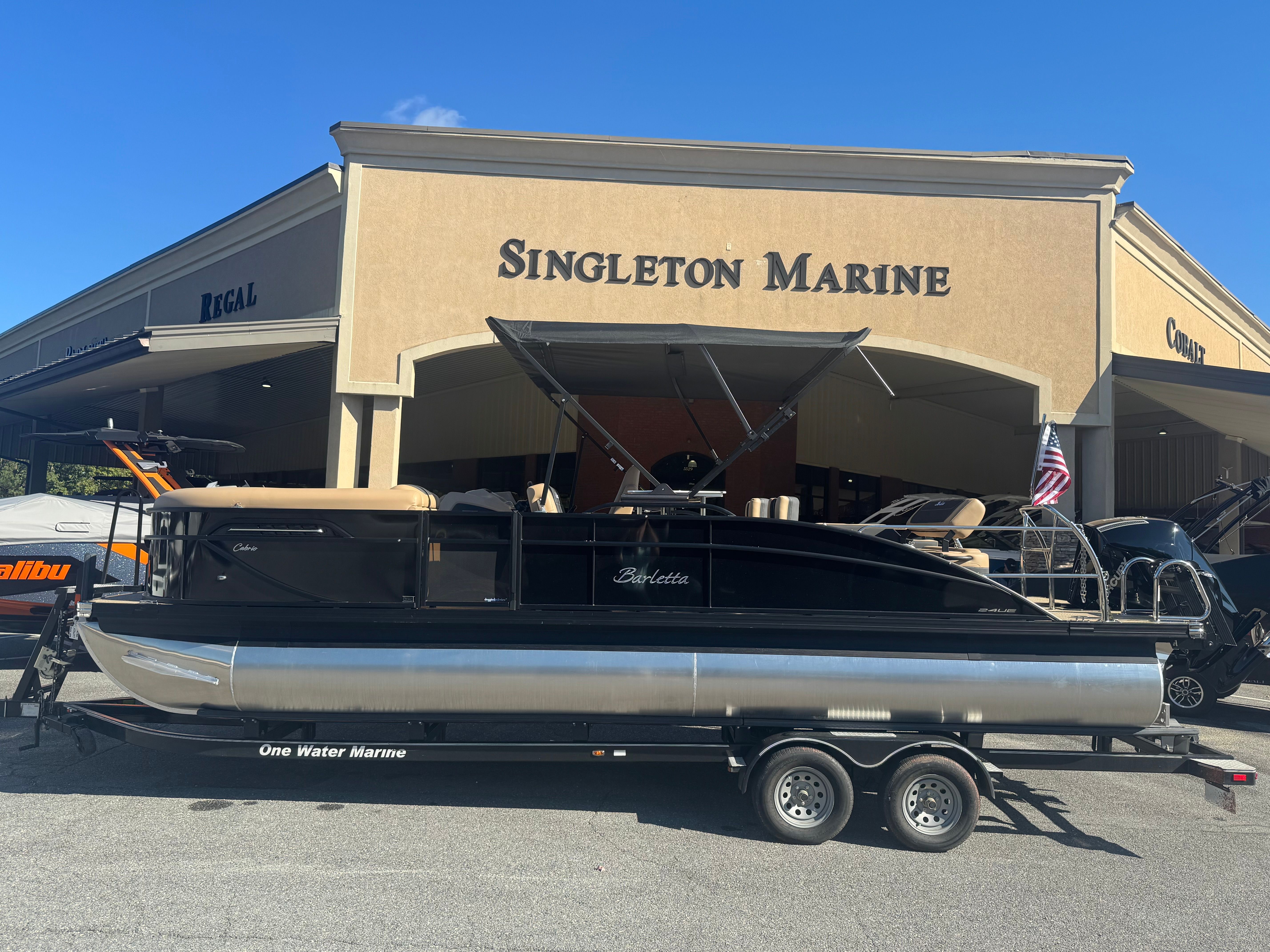 The 2026 Barletta Cabrio C24UE is more than just a pontoon boat for sale—it’s an invitation to experience the best of life on the water. With its striking design, powerful Mercury engine, and a host of premium features including Carmella Tan with Onyx furniture, Triple Toon Package with midship storage, Amore Tan flooring, interior RGB lighting, stainless steel flag pole with American flag, Simrad 7" G07 XSR chartplotter, and the Blackout Package Cabrio, this Barletta boat for sale stands out as a top choice for discerning boaters.Don’t miss your chance to own a new pontoon boat that combines luxury, performance, and practicality in one stunning package. Contact your local dealer today to learn more about the Barletta Cabrio C24UE and start planning your next great adventure on the water.