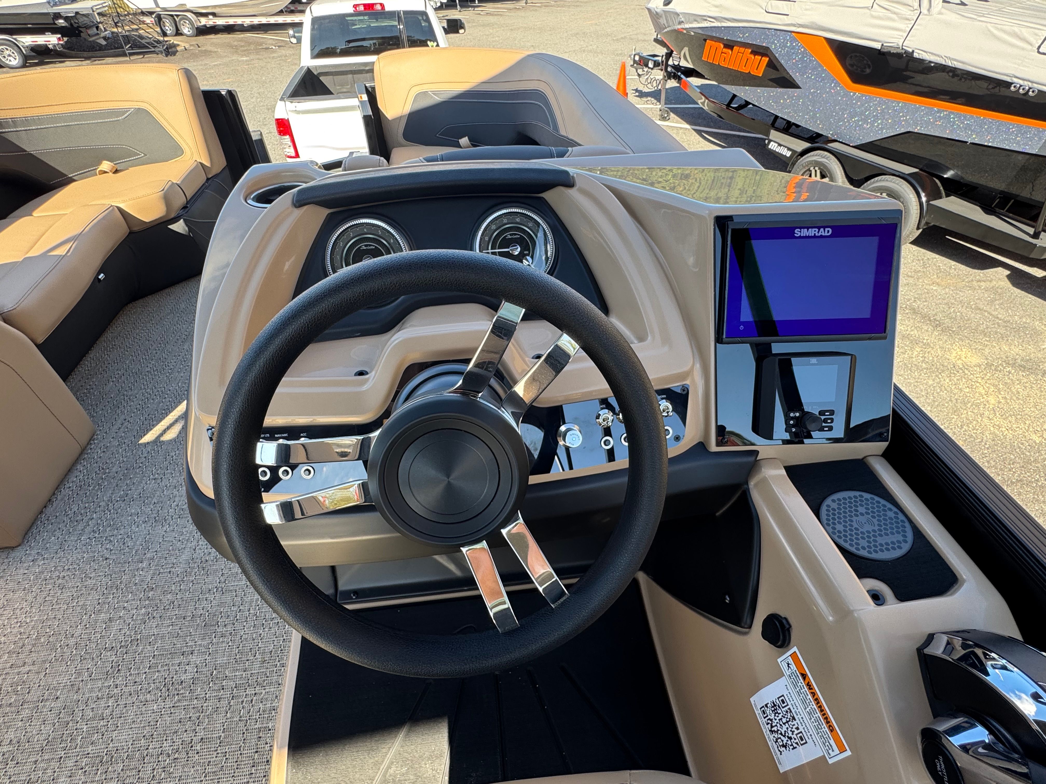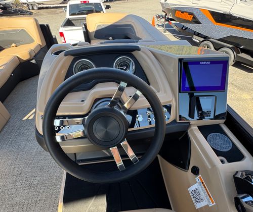 The Barletta Cabrio C24UE is loaded with features that elevate both comfort and functionality. The Carmella Tan with Onyx furniture offers plush seating and ergonomic support, ensuring every passenger enjoys the ride in style. The Triple Toon Package with midship storage not only boosts performance but also provides convenient space for stowing gear, water toys, or picnic essentials. The Amore Tan flooring is both attractive and durable, designed to withstand the rigors of active days on the water.For those who appreciate ambiance, the interior RGB lighting package allows you to set the perfect mood for any occasion, from lively celebrations to tranquil sunset cruises. The exterior is adorned with a stainless steel flag pole and an American flag, adding a touch of patriotic flair and sophistication. At the helm, the Simrad 7" G07 XSR chartplotter/multifunction display offers advanced navigation and system monitoring, keeping you informed and in control throughout your journey. The Blackout Package Cabrio further enhances the boat’s modern aesthetic, creating a bold and distinctive look that’s sure to impress.