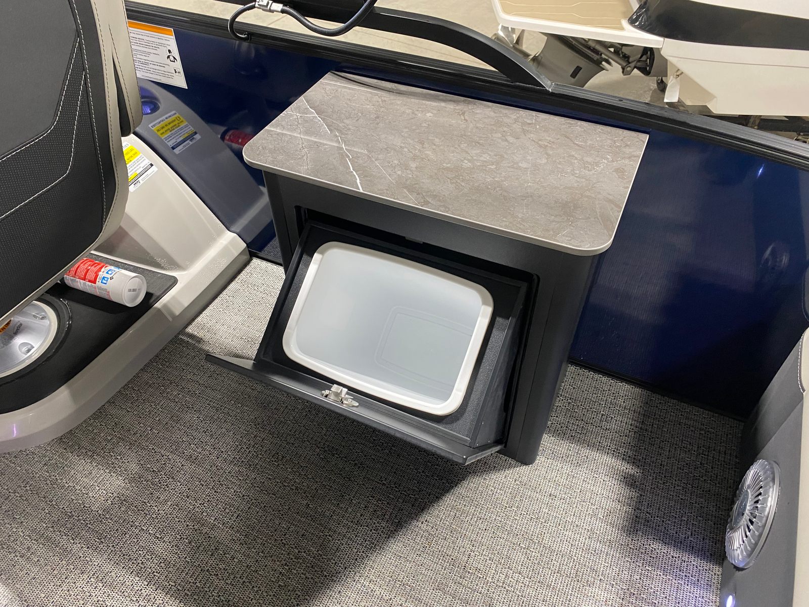 The Barletta Cabrio C24UE is as practical as it is luxurious. The triple toon package with midship storage offers plenty of room for water toys, fishing gear, or picnic supplies, keeping your deck clutter-free and organized. The pontoon’s length and design make docking straightforward, even for less experienced boaters. Fuel efficiency is enhanced by the Mercury FourStroke engine, allowing you to enjoy longer days on the water without frequent refueling stops. The durable Amore Gray flooring is easy to clean, so you can spend more time enjoying your boat and less time on maintenance.