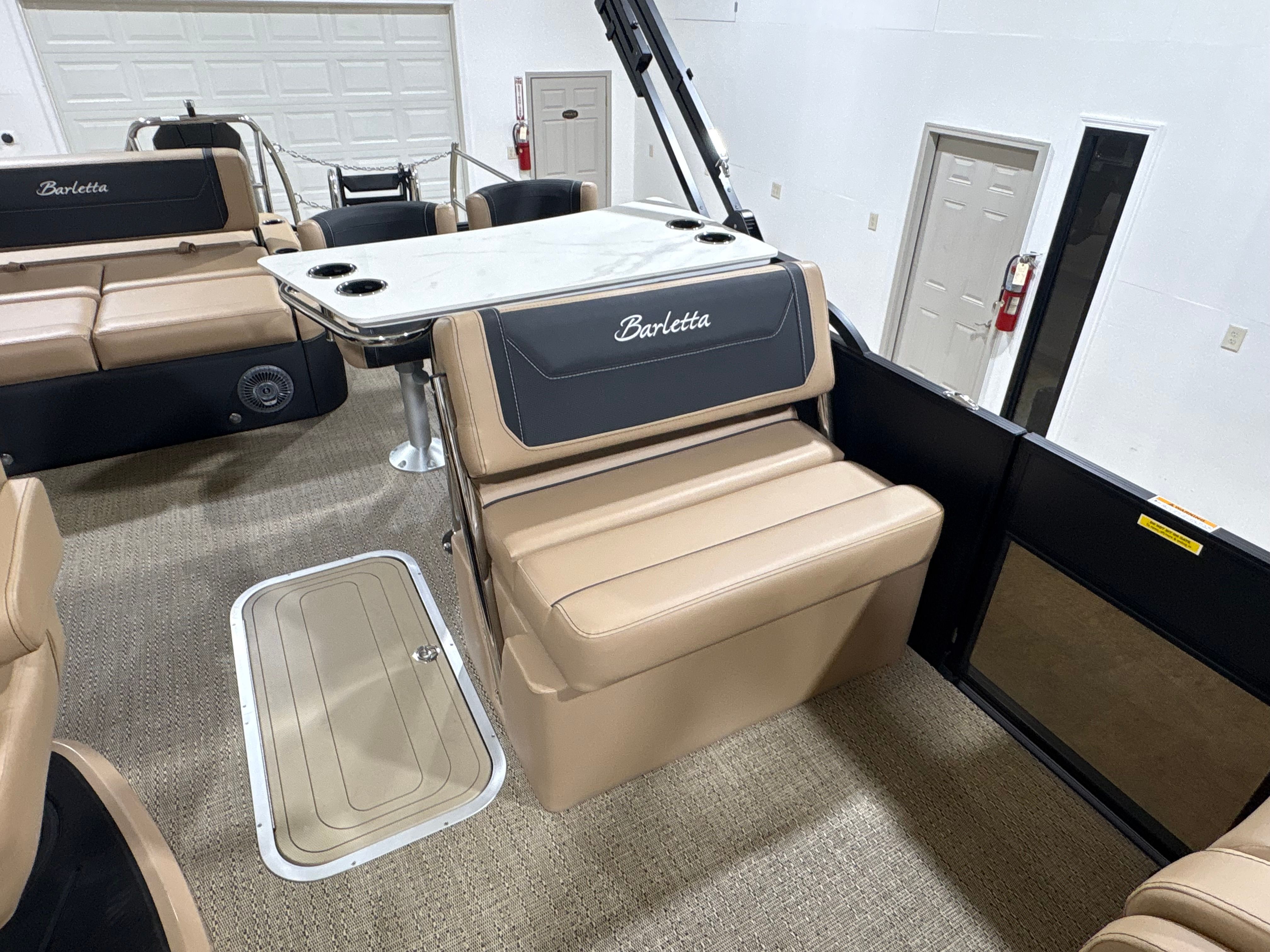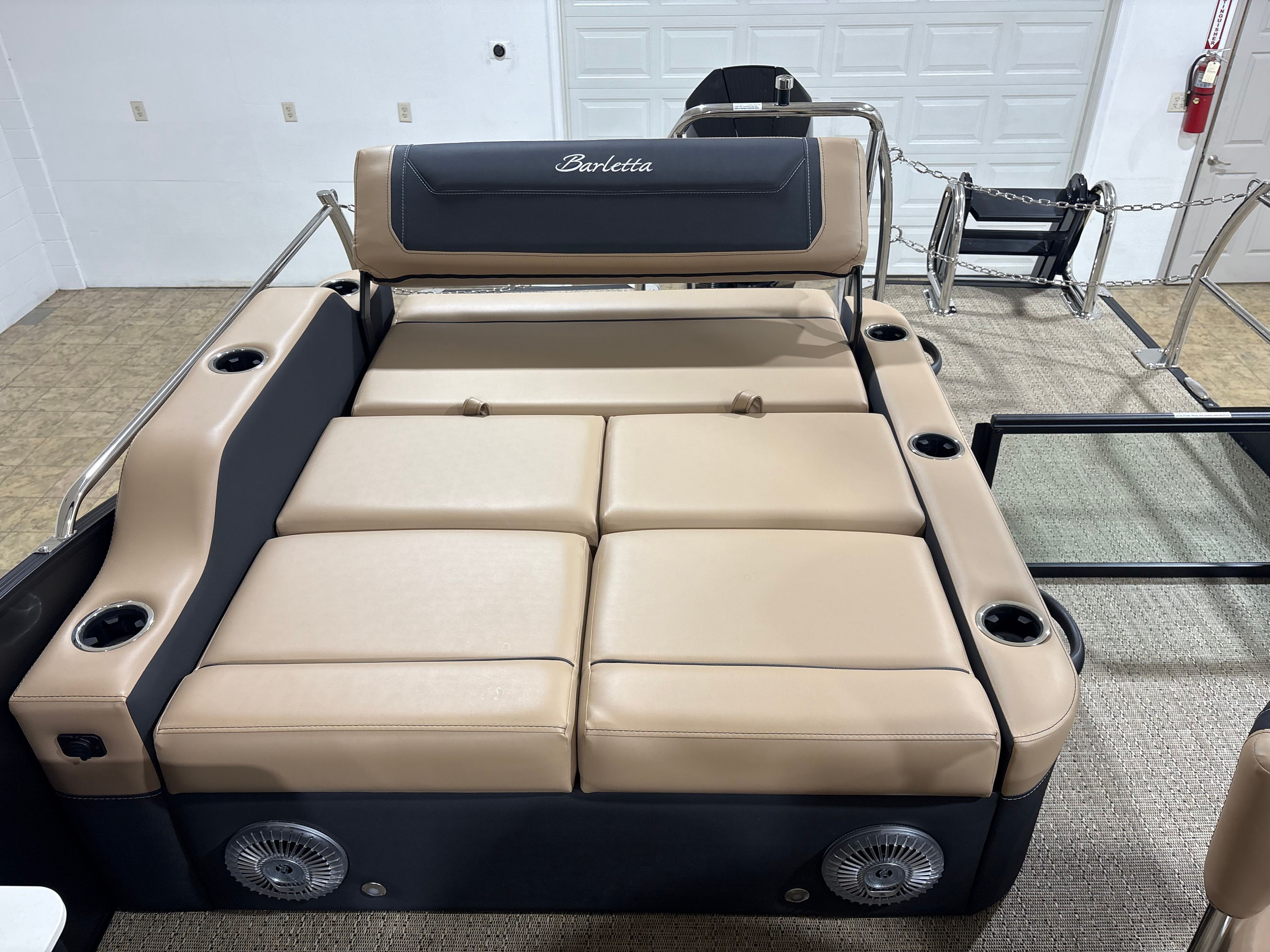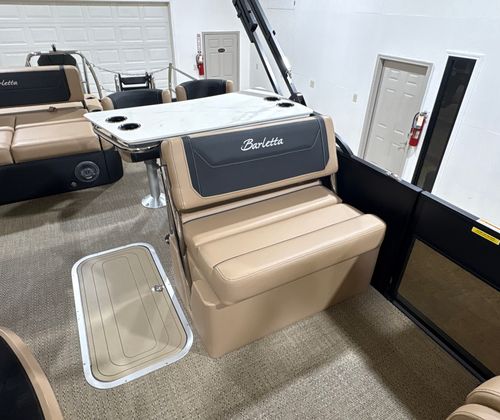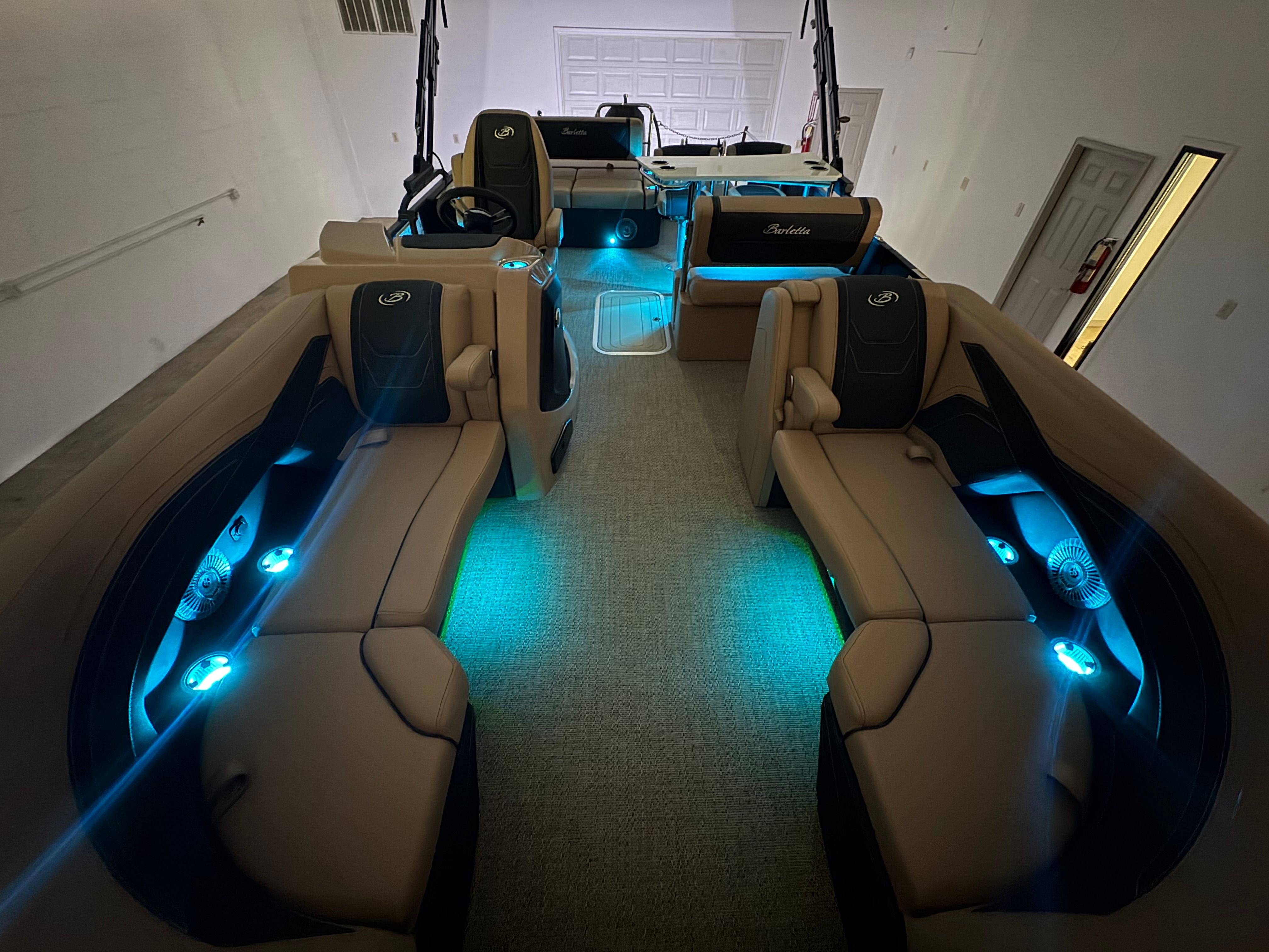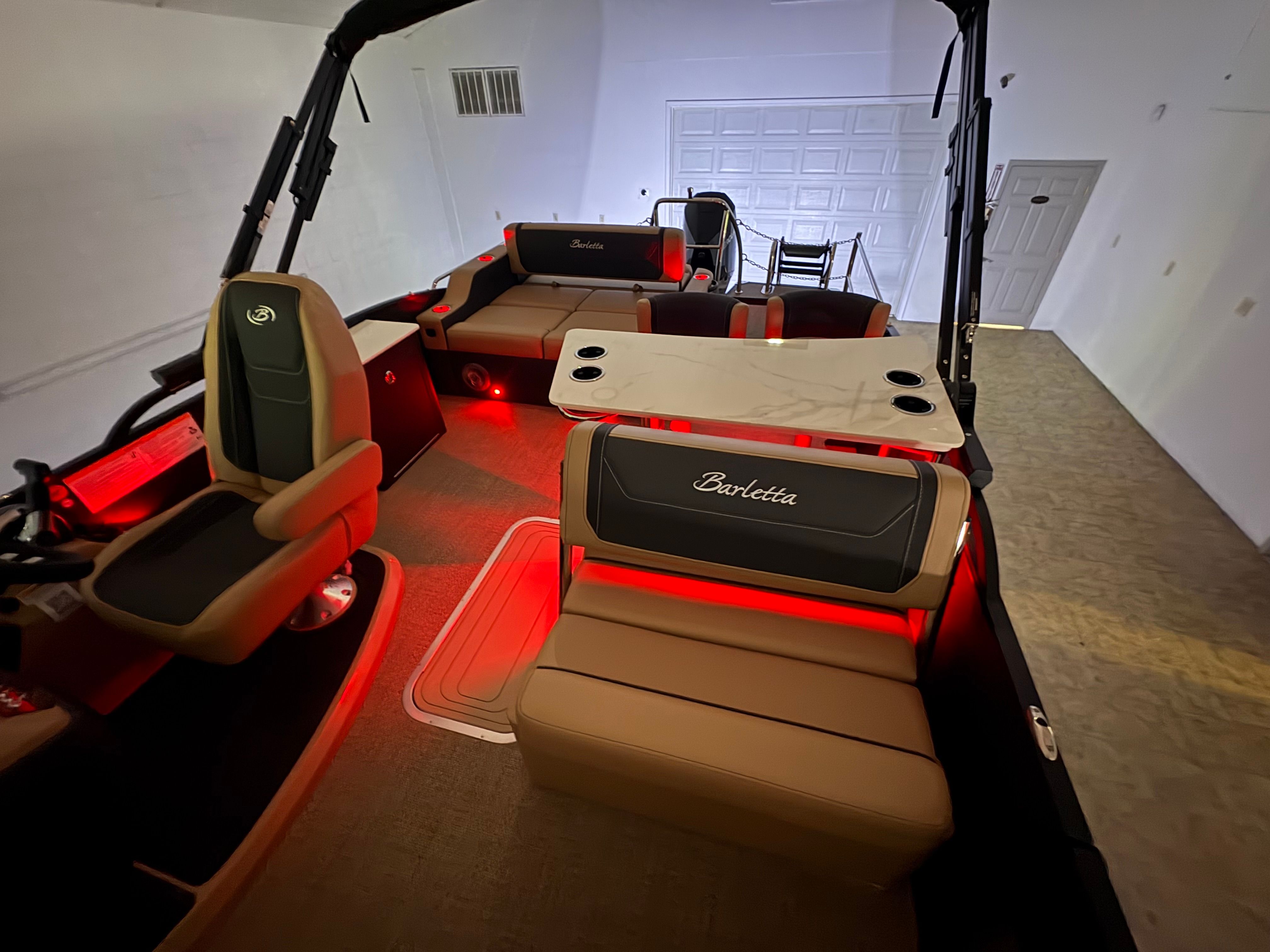 Practicality meets luxury in the Barletta Cabrio C24UE. The midship storage compartment is perfect for stowing water sports equipment, life jackets, and picnic supplies, keeping the deck clutter-free and organized. The sturdy construction and triple toon design make docking and maneuvering straightforward, even for less experienced boaters. The efficient Mercury FourStroke engine is engineered for reliability and fuel efficiency, helping you spend more time on the water and less time at the pump.The exterior lighting not only enhances the boat’s appearance but also improves visibility and safety during evening cruises or when returning to the dock after a day of adventure. Every detail of the Cabrio C24UE is crafted to make ownership as enjoyable and hassle-free as possible.
