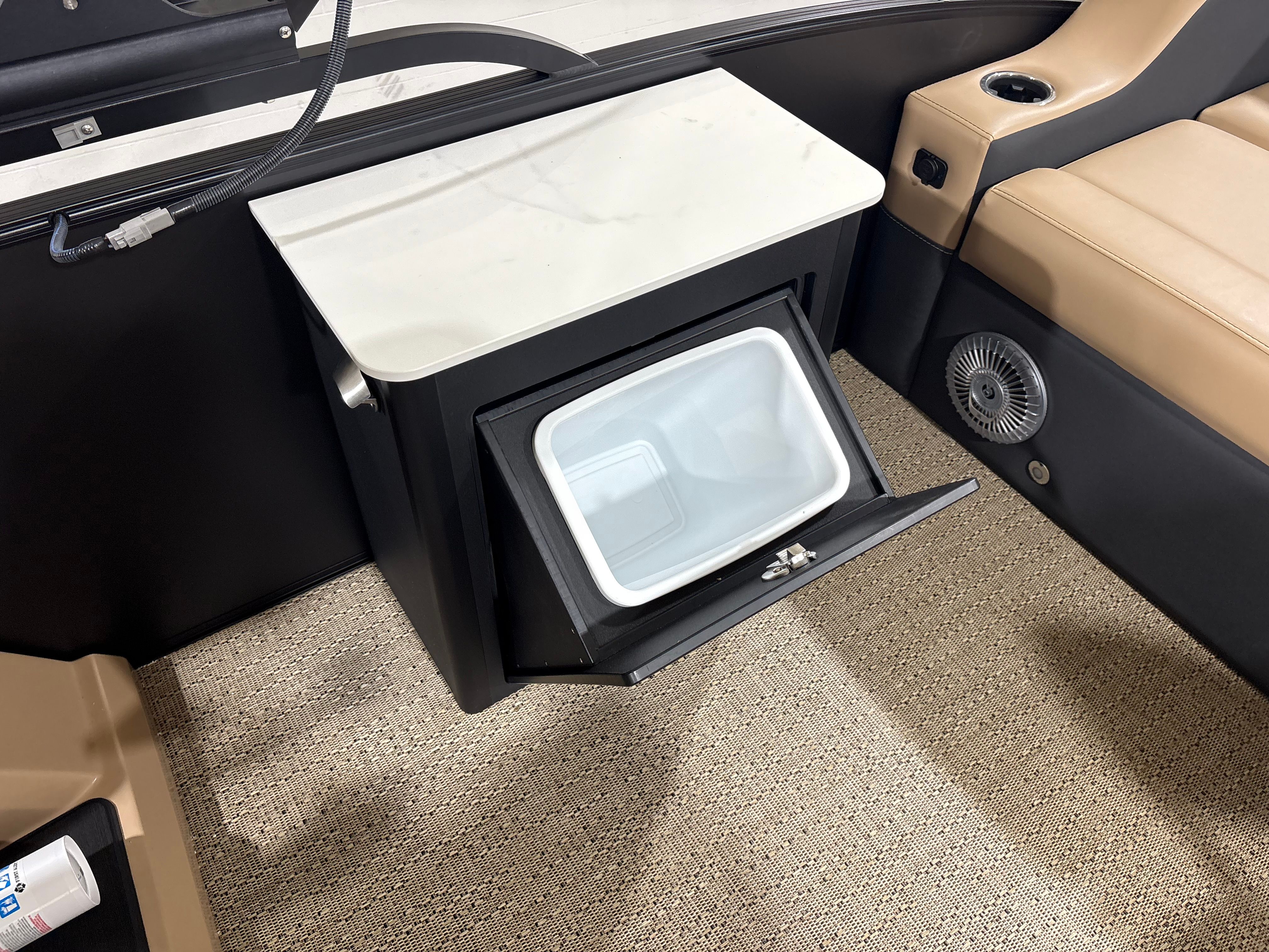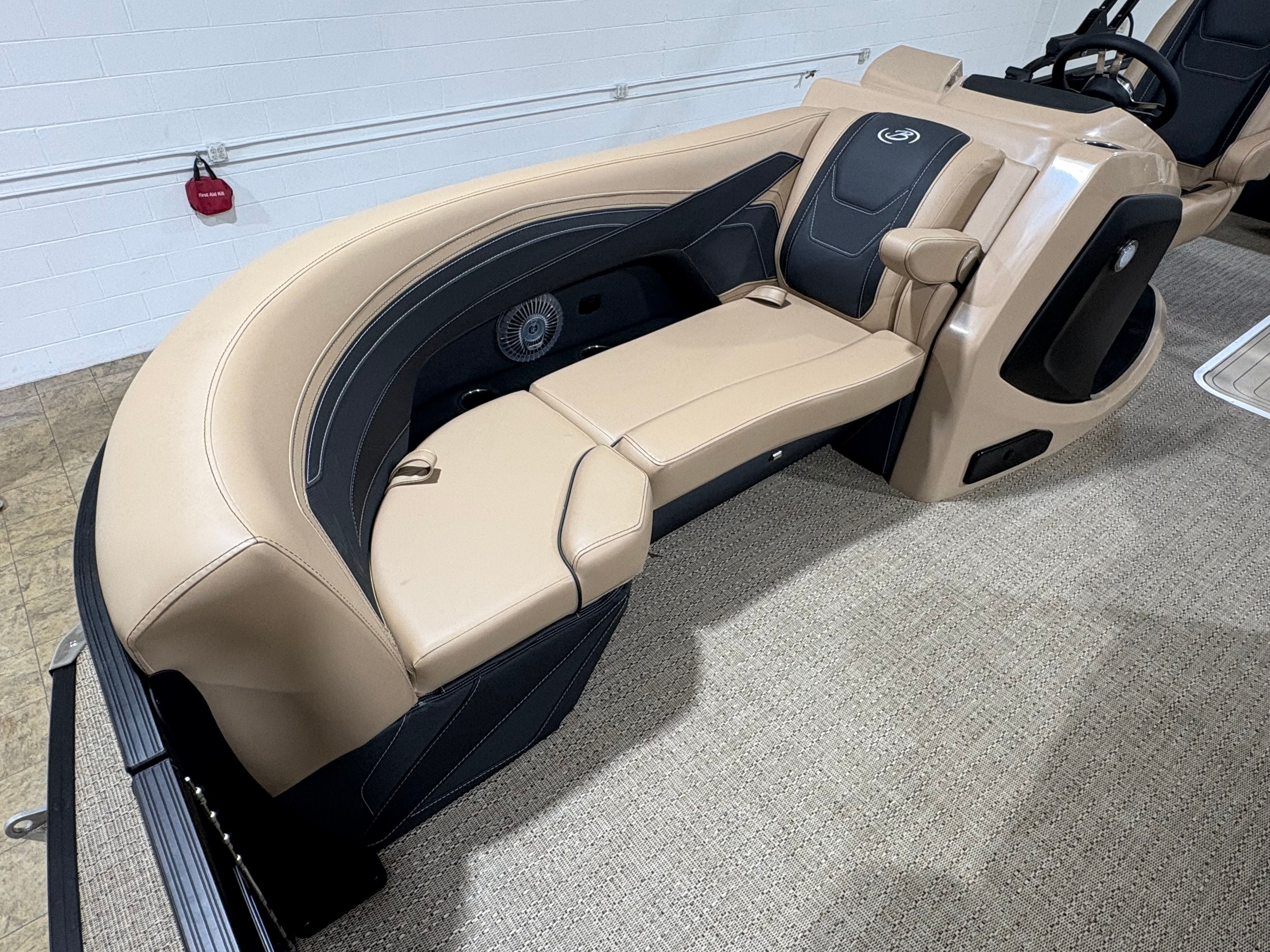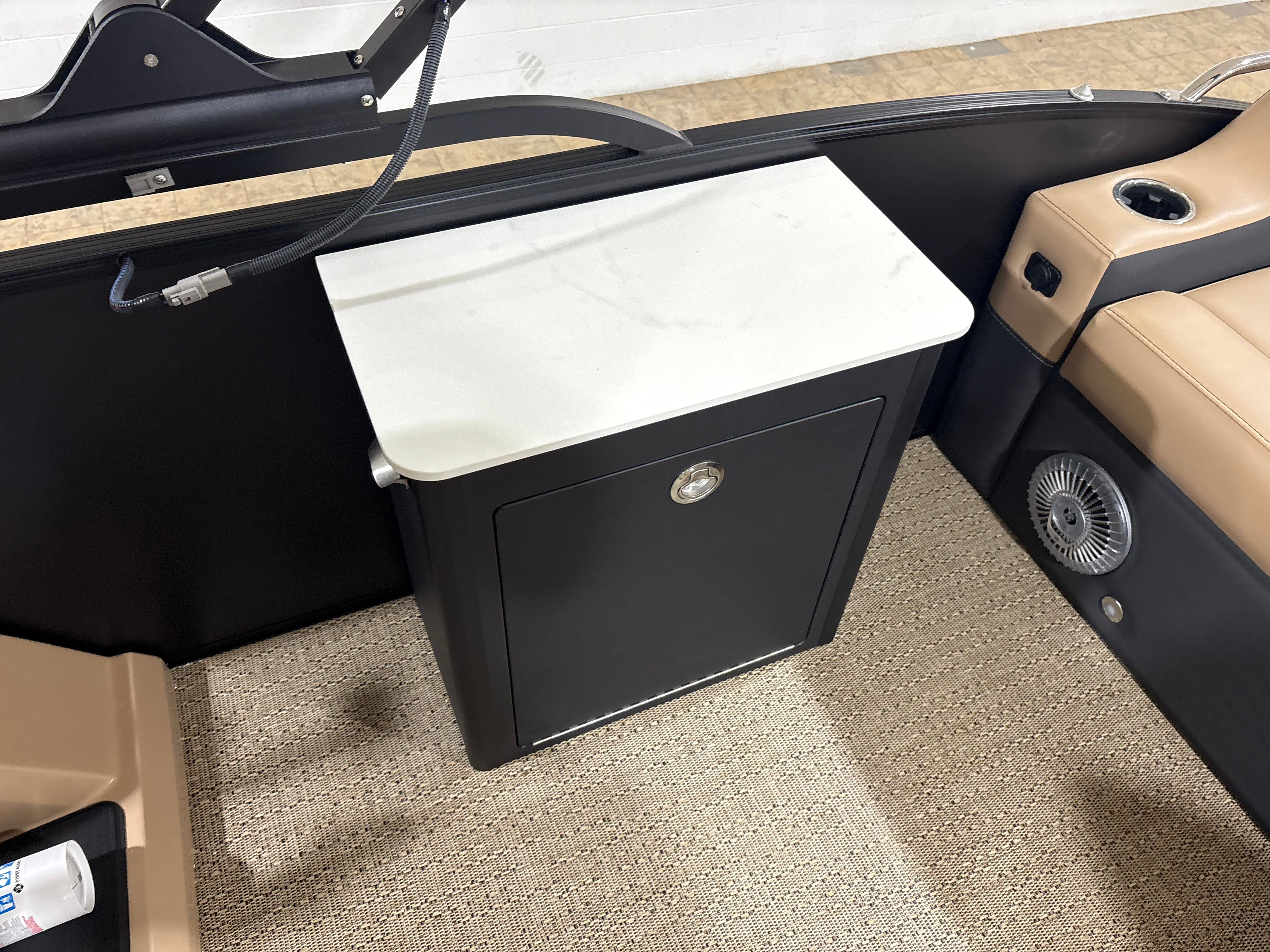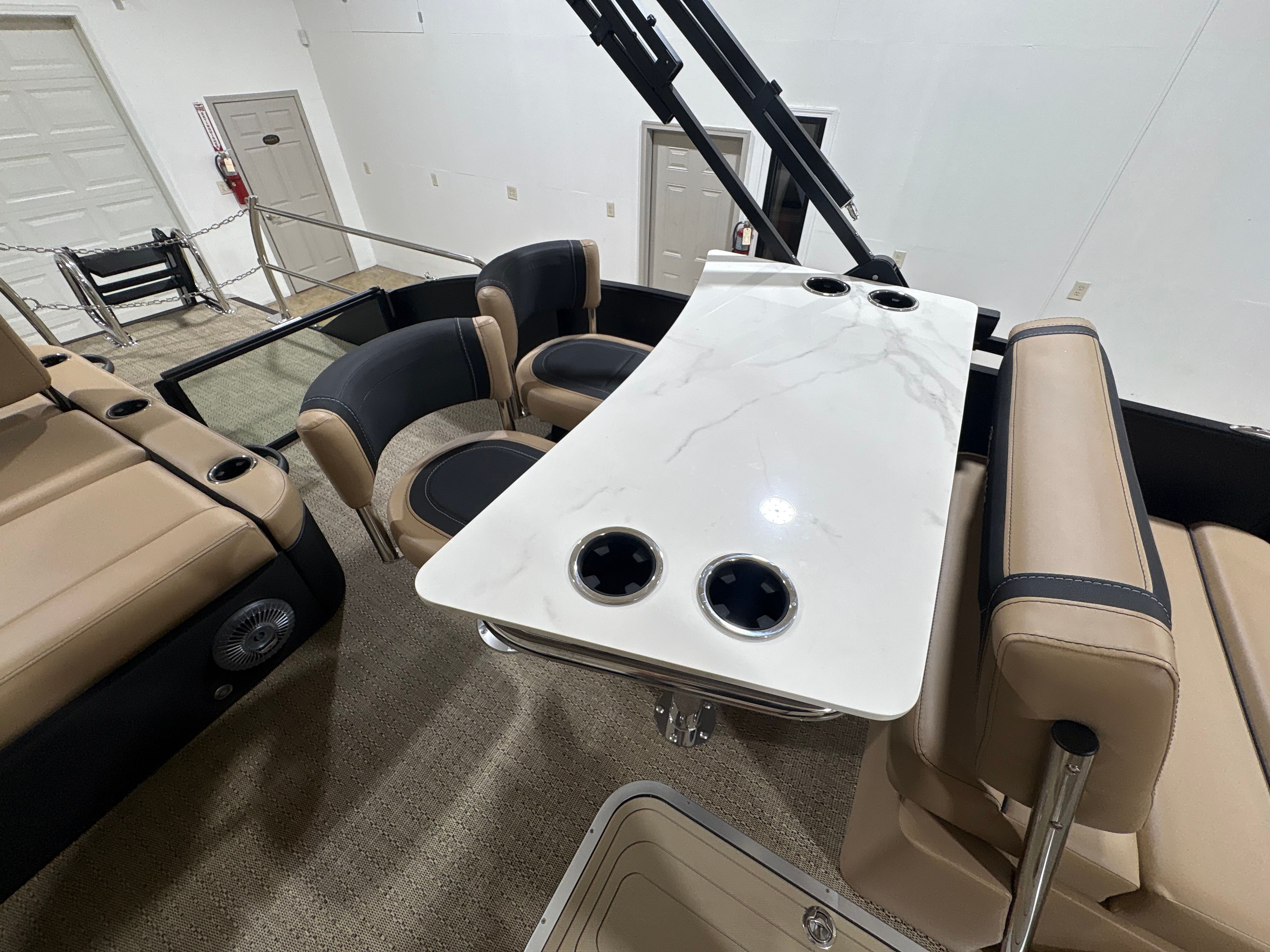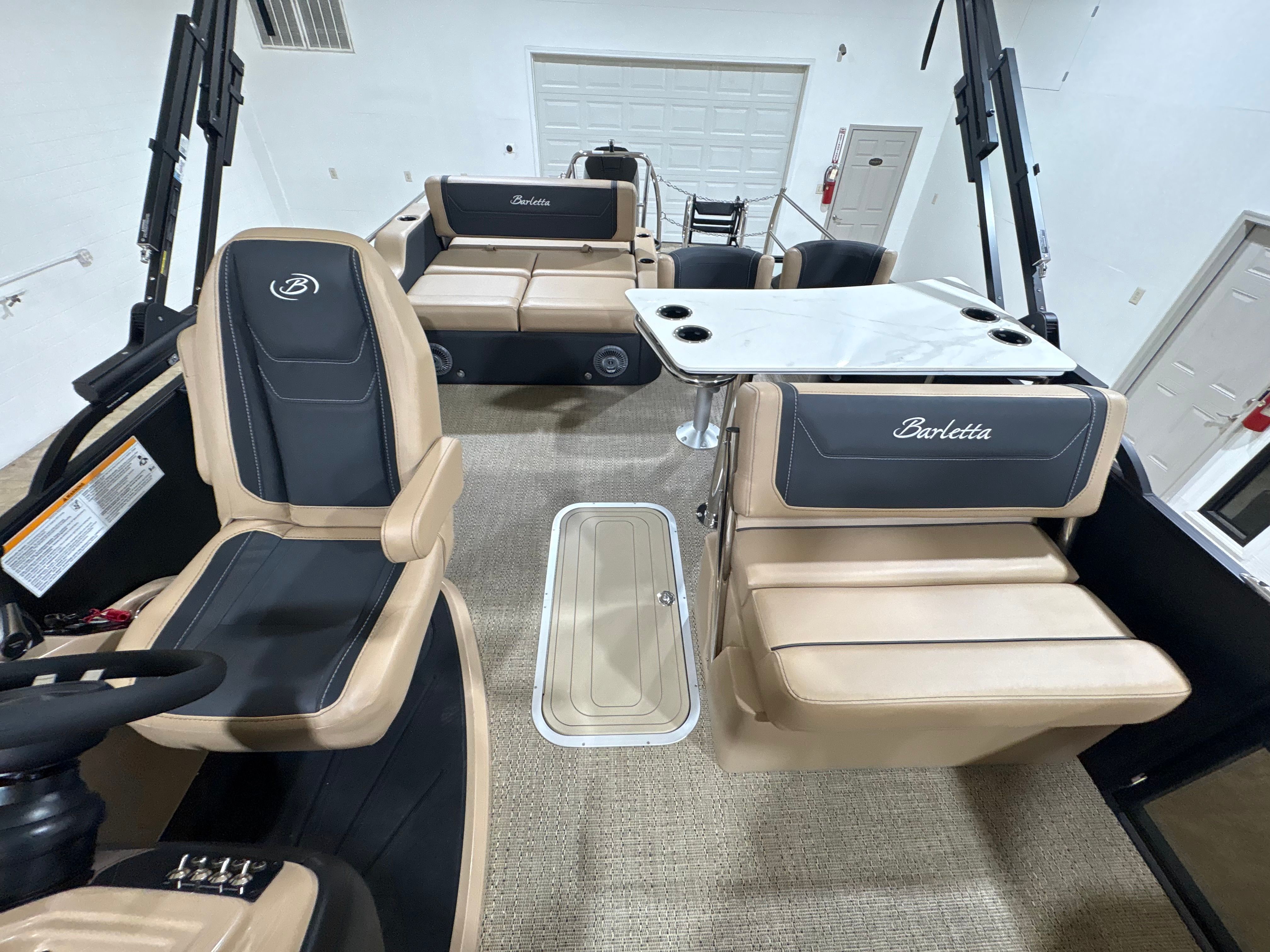 Practicality meets luxury in the Barletta Cabrio C24UE. The midship storage compartment is perfect for stowing water sports equipment, life jackets, and picnic supplies, keeping the deck clutter-free and organized. The sturdy construction and triple toon design make docking and maneuvering straightforward, even for less experienced boaters. The efficient Mercury FourStroke engine is engineered for reliability and fuel efficiency, helping you spend more time on the water and less time at the pump.The exterior lighting not only enhances the boat’s appearance but also improves visibility and safety during evening cruises or when returning to the dock after a day of adventure. Every detail of the Cabrio C24UE is crafted to make ownership as enjoyable and hassle-free as possible.