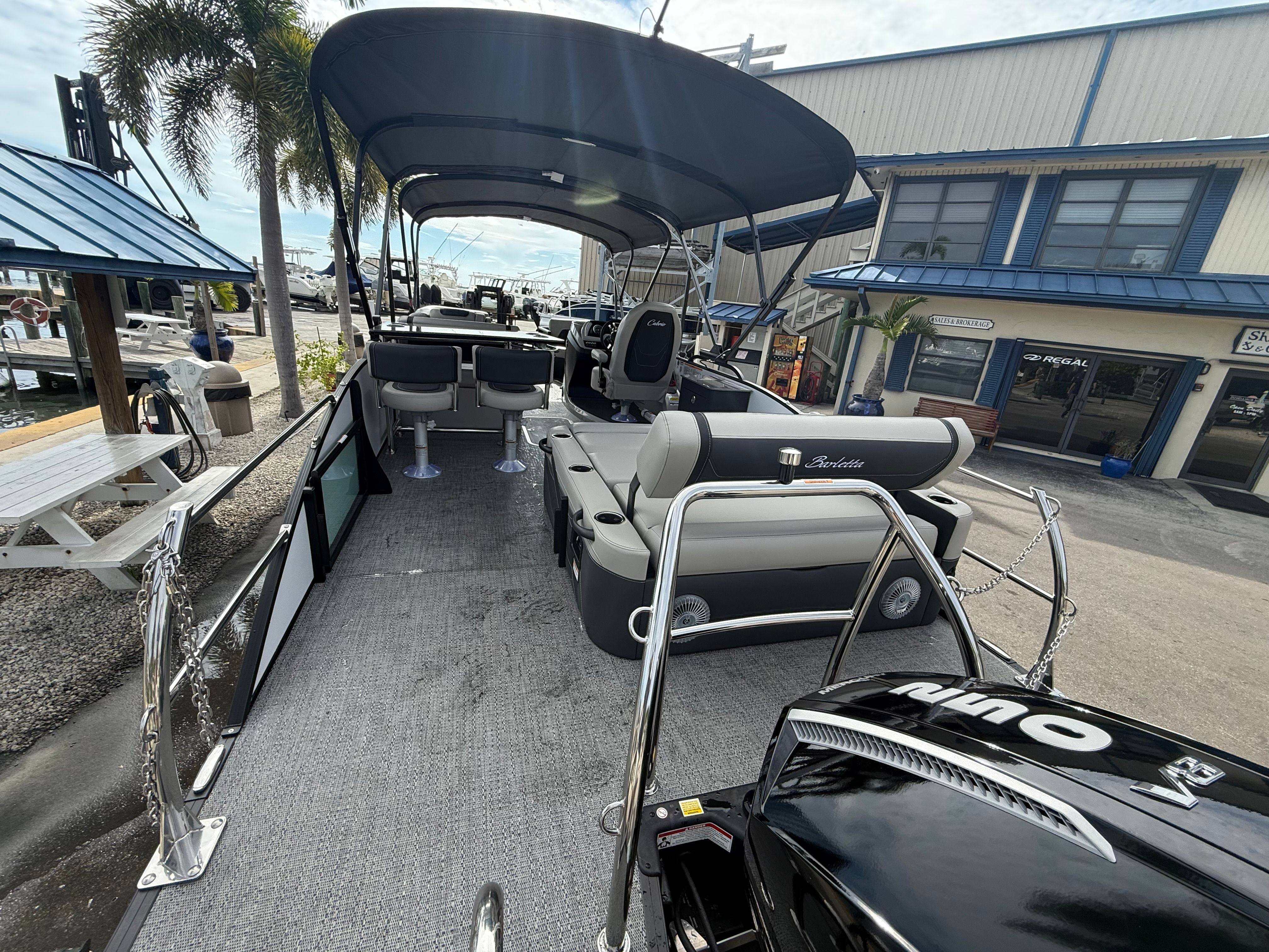 Owning the Barletta Cabrio C24UE means embracing a lifestyle of fun, relaxation, and connection. This pontoon boat is designed for maximum comfort, with spacious seating and thoughtful amenities that make every outing enjoyable. The double bimini creates a shaded oasis, perfect for lounging with friends or hosting family gatherings. The ample deck space allows for easy movement, whether you’re setting up for a picnic, fishing, or simply enjoying the view.The midship storage and deck mount fender basket provide practical solutions for keeping your gear organized, so you can focus on making memories instead of managing clutter. The powerful Mercury Verado V8 engine ensures you have the speed and reliability to explore new destinations, while the Triple Toon Package delivers a smooth and stable ride. With its striking color scheme and elegant flooring, the Cabrio C24UE is as stylish as it is functional, making it a standout choice for those who appreciate both aesthetics and performance.