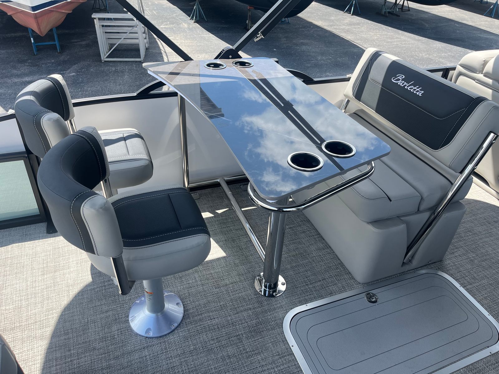 The 2026 Barletta Cabrio C24UE is meticulously crafted to provide a premium boating experience. Its spacious 25.17-foot layout offers ample room for relaxation, socializing, and entertainment. The pontoon’s innovative design maximizes both comfort and functionality, with plush seating arrangements that invite you and your guests to unwind and enjoy the scenery. The high-quality construction and attention to detail are evident in every aspect of the boat, from its sleek exterior lines to its thoughtfully arranged interior spaces.As a new Barletta boat for sale, the Cabrio C24UE showcases the brand’s commitment to excellence. The pontoon’s layout is designed for versatility, making it easy to transition from sunbathing and lounging to active water sports or casual dining. The durable construction ensures longevity, while the modern aesthetic appeals to those who appreciate both form and function.