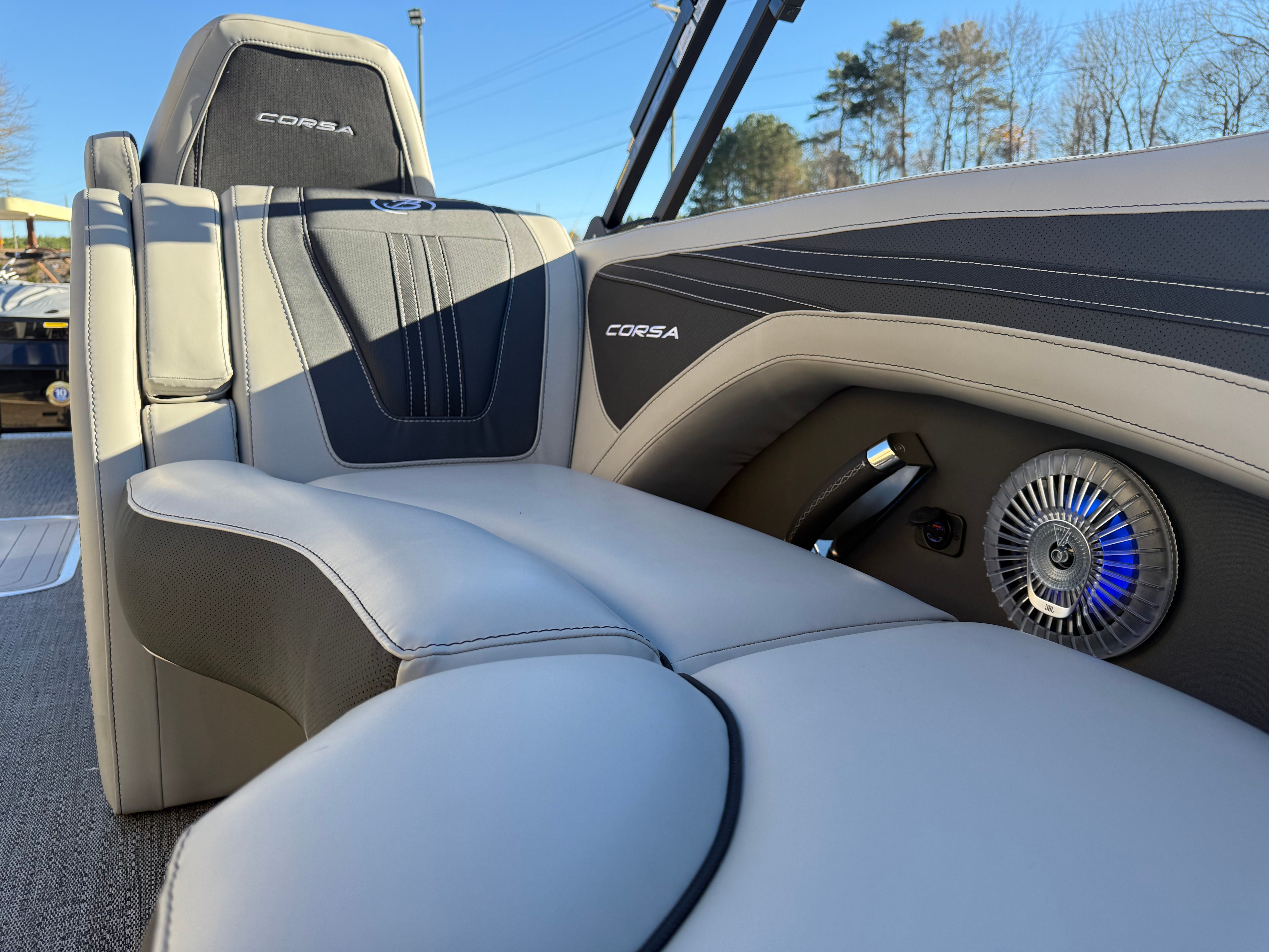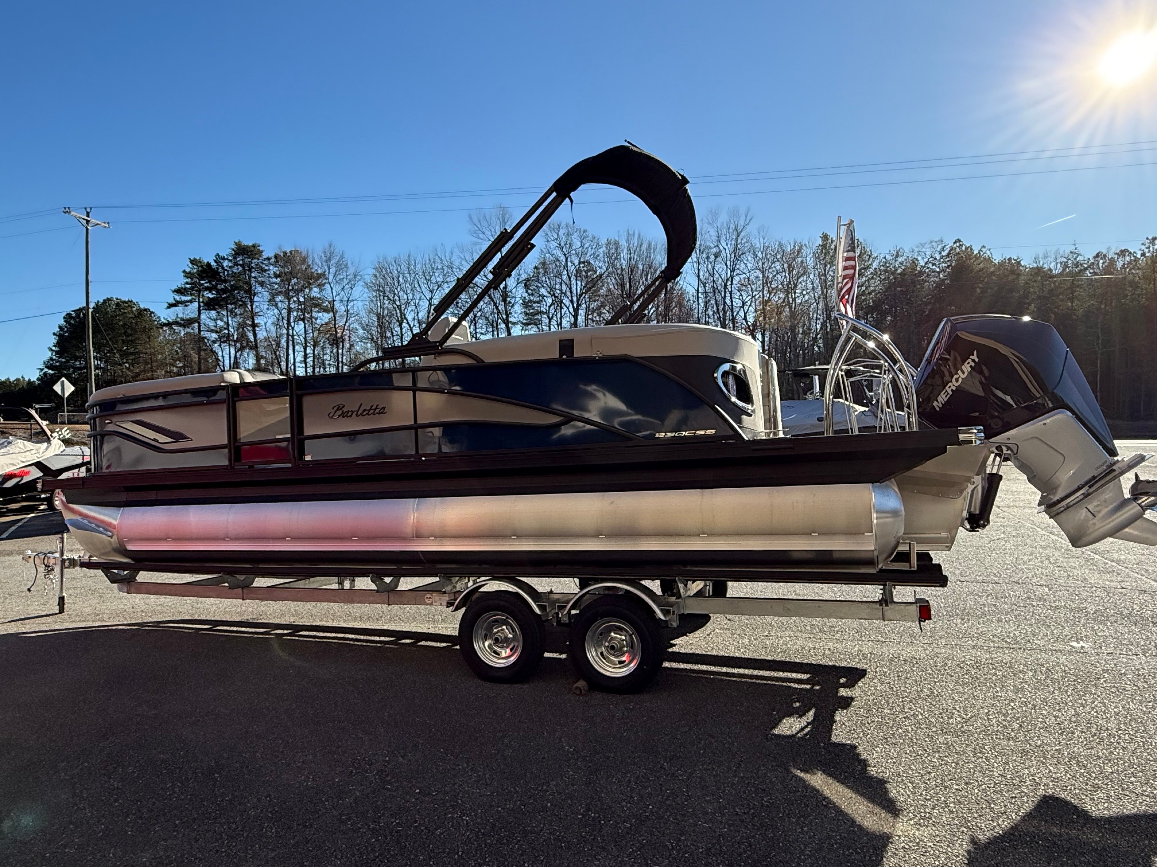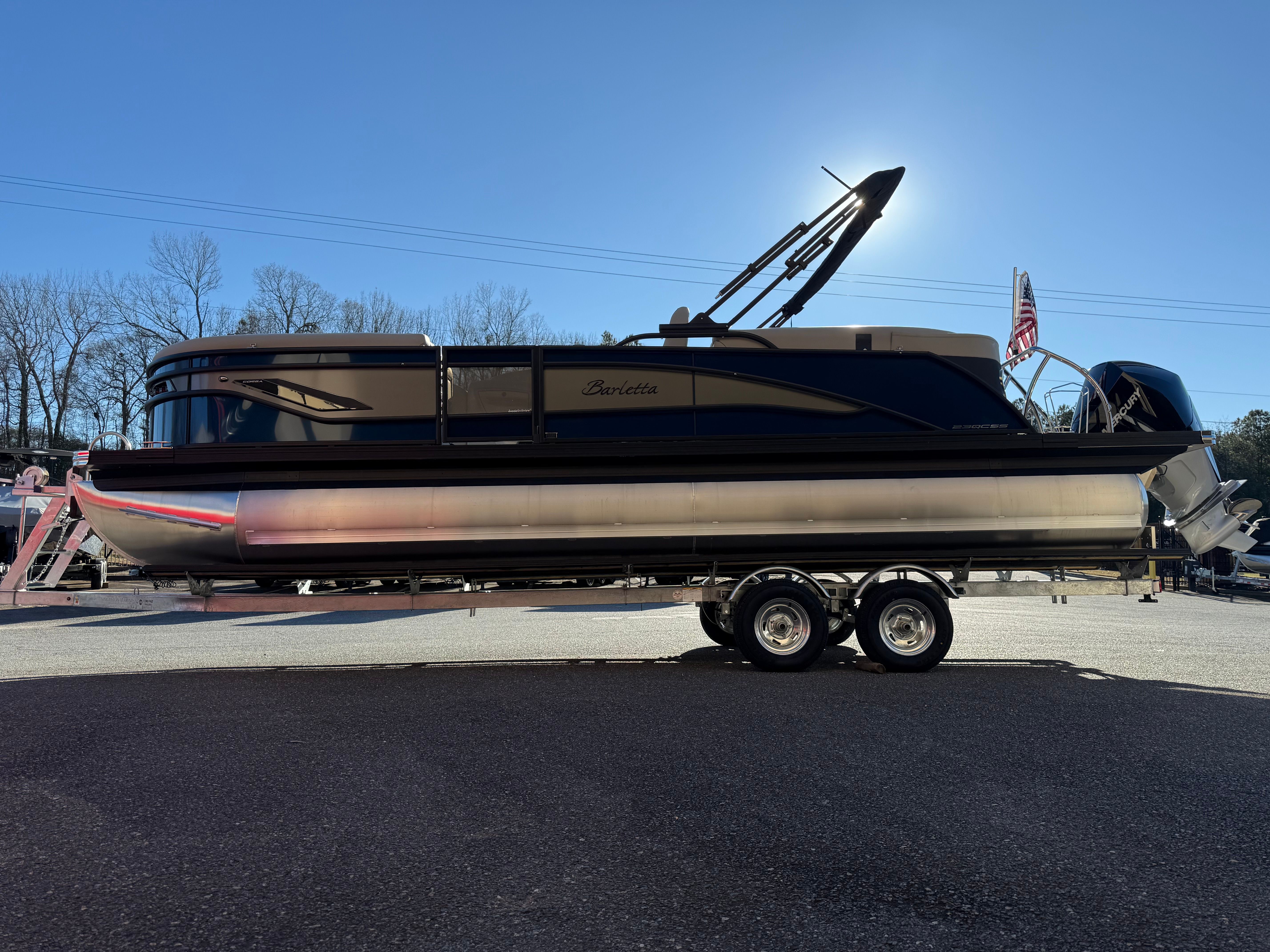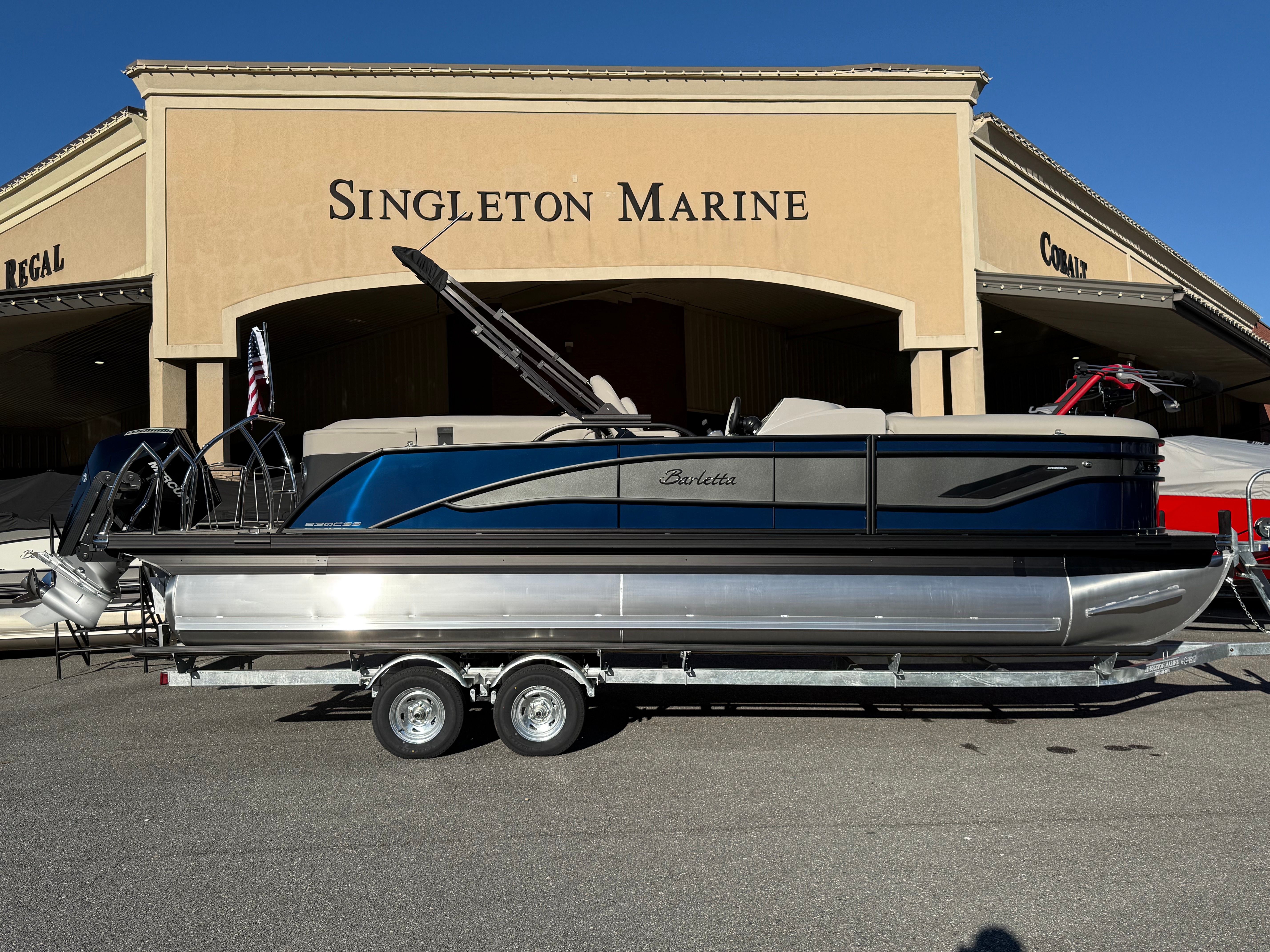 The 2026 Barletta Corsa 23QCSS is a new pontoon boat for sale that combines cutting-edge performance, luxurious features, and practical benefits in one stunning package. With its powerful Mercury 250L Verado V8 engine, striking Blue Sapphire and Gray Moonstone railskin colors, Blackout Package Corsa, premium furniture and flooring, and advanced digital controls, this Barletta boat for sale offers everything you need for unforgettable adventures on the water.Whether you’re seeking relaxation, excitement, or social connection, the Barletta Corsa 23QCSS delivers in every category. Don’t miss your chance to own this exceptional pontoon boat—contact the dealer today to learn more and start your journey toward a lifetime of fun and enjoyment on the water.