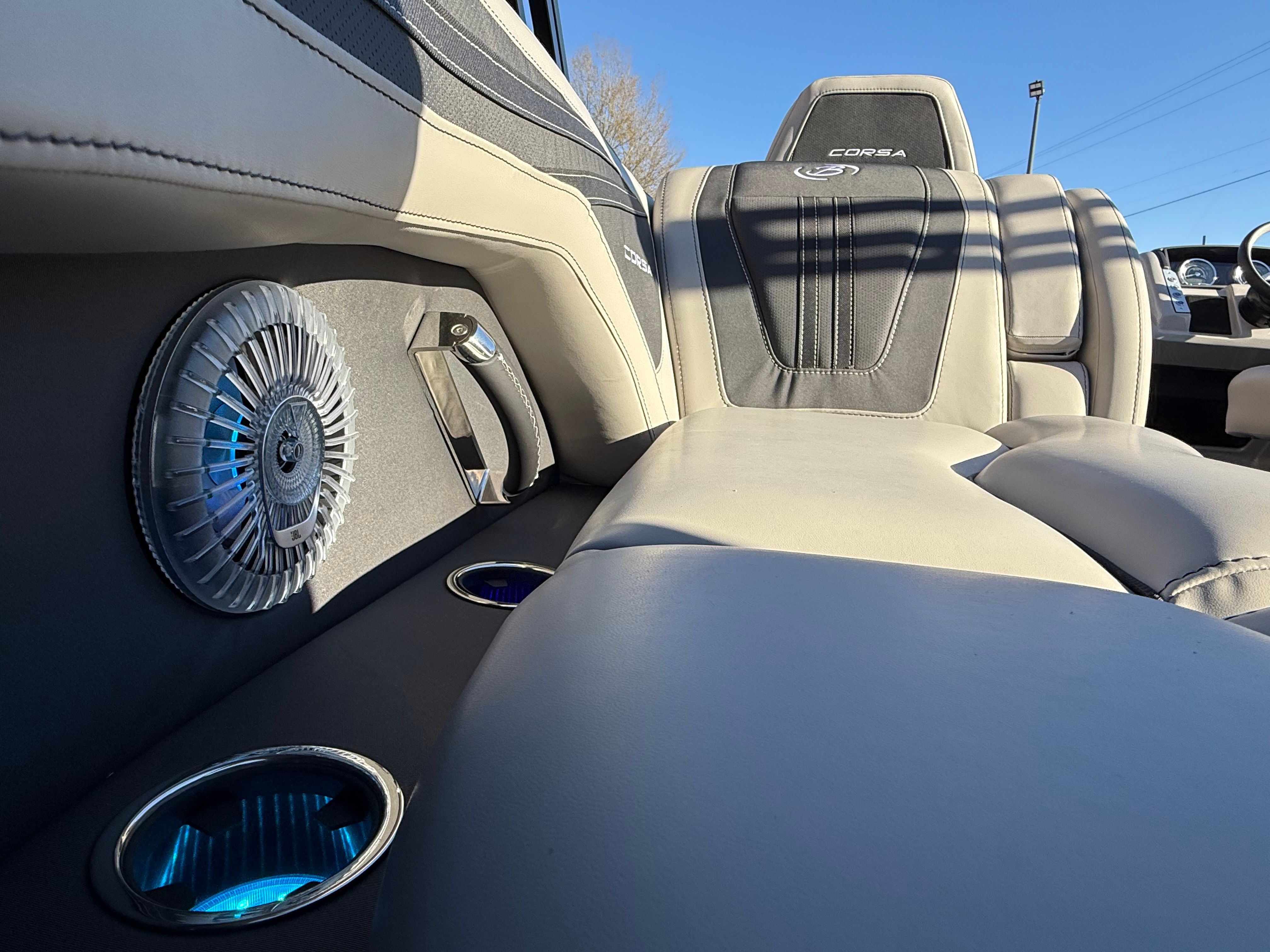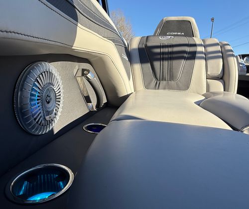 At the heart of the Barletta Corsa 23QCSS is a single Mercury 250L Verado V8 engine, delivering an impressive 250 horsepower. This powerful engine ensures smooth acceleration, responsive handling, and reliable performance in a variety of conditions. The Mercury Digital DTS Pre-Rig for VERADO engines with Vessel Link provides advanced digital throttle and shift controls, making operation effortless and precise. Hydraulic and power assist steering further enhance maneuverability, allowing you to navigate tight spaces and open water with confidence. The rigging includes a stainless steel prop, optimizing efficiency and durability for long-lasting enjoyment.