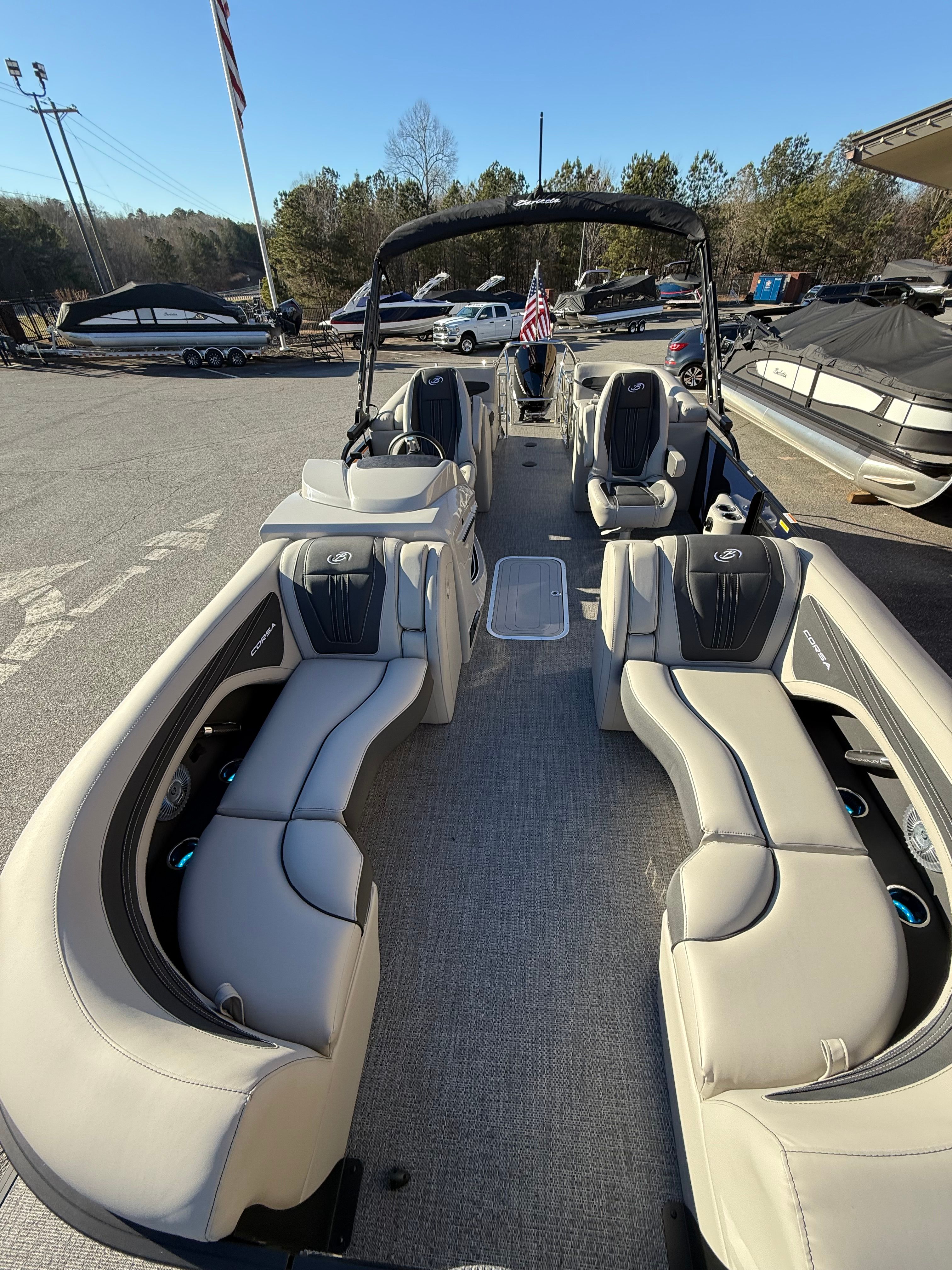 Owning the Barletta Corsa 23QCSS means embracing a lifestyle of fun, relaxation, and social connection. The spacious deck layout is perfect for hosting gatherings, enjoying meals, or simply lounging in the sun. The premium furniture and flooring create a comfortable environment, while the advanced steering and engine controls make every outing smooth and stress-free. With its powerful Mercury Verado V8 engine, you’ll experience exhilarating rides and the ability to explore new destinations with ease.This pontoon boat is designed for maximum enjoyment, whether you’re cruising with friends, spending quality time with family, or seeking solitude on the water. The combination of style, comfort, and performance ensures that every trip is memorable, and the new condition means you can enjoy worry-free ownership from day one.