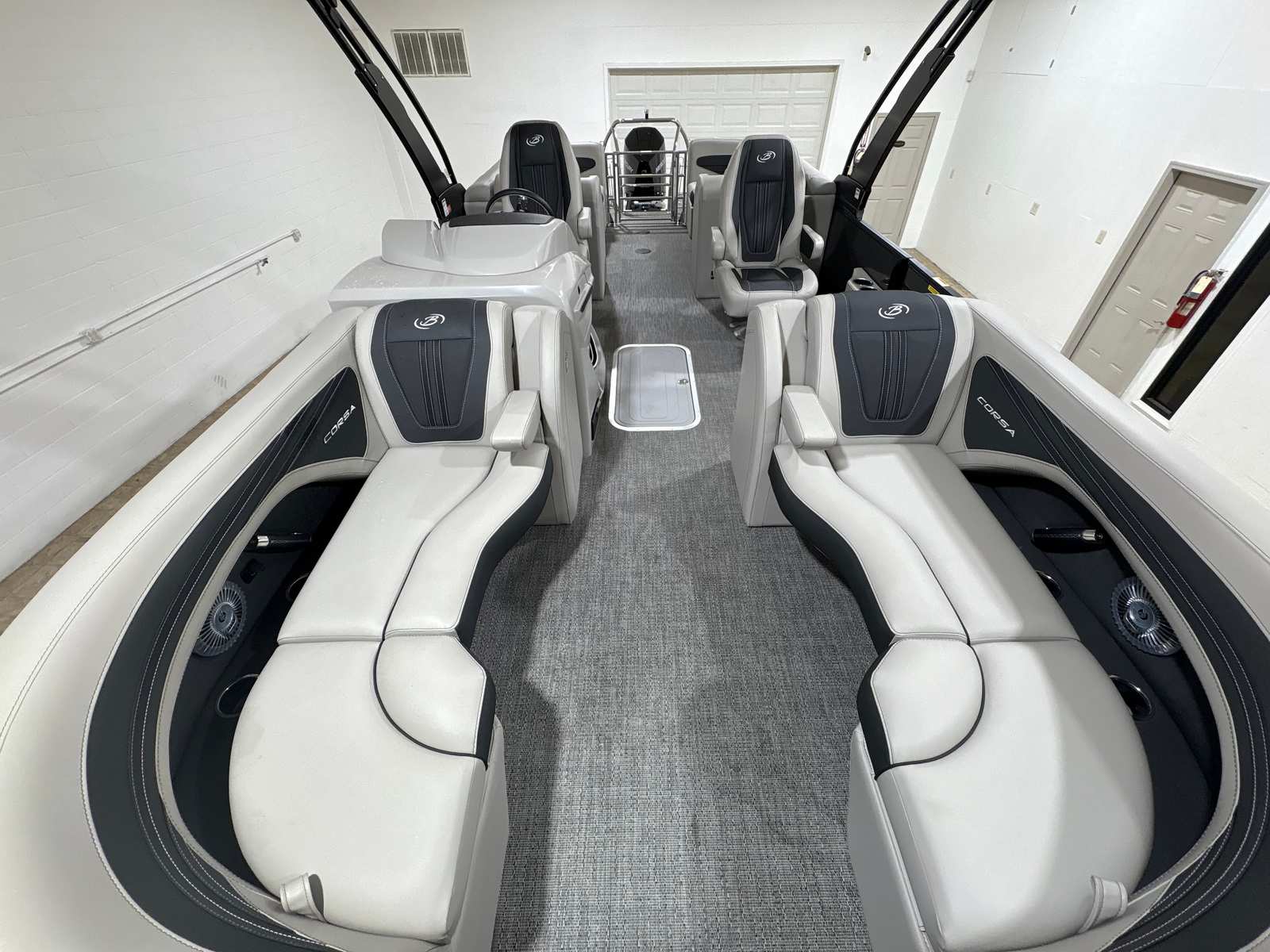 Owning the Barletta Corsa 23QCSS means embracing a lifestyle of fun, relaxation, and connection. The spacious deck layout encourages socializing, whether you’re hosting a lively party or enjoying a quiet afternoon with loved ones. The luxurious seating and premium materials ensure everyone rides in comfort, while the advanced engine and steering systems provide a smooth, enjoyable journey. With its eye-catching design and modern amenities, this Barletta boat for sale is sure to impress guests and create lasting memories.The combination of digital integration and intuitive controls makes boating easier and more enjoyable, allowing you to focus on what matters most – having fun on the water. The ambient lighting sets the perfect mood for evening outings, while the durable flooring and high-quality furniture withstand the rigors of regular use. Every trip aboard the Corsa 23QCSS is an opportunity to unwind, explore, and celebrate life’s special moments.