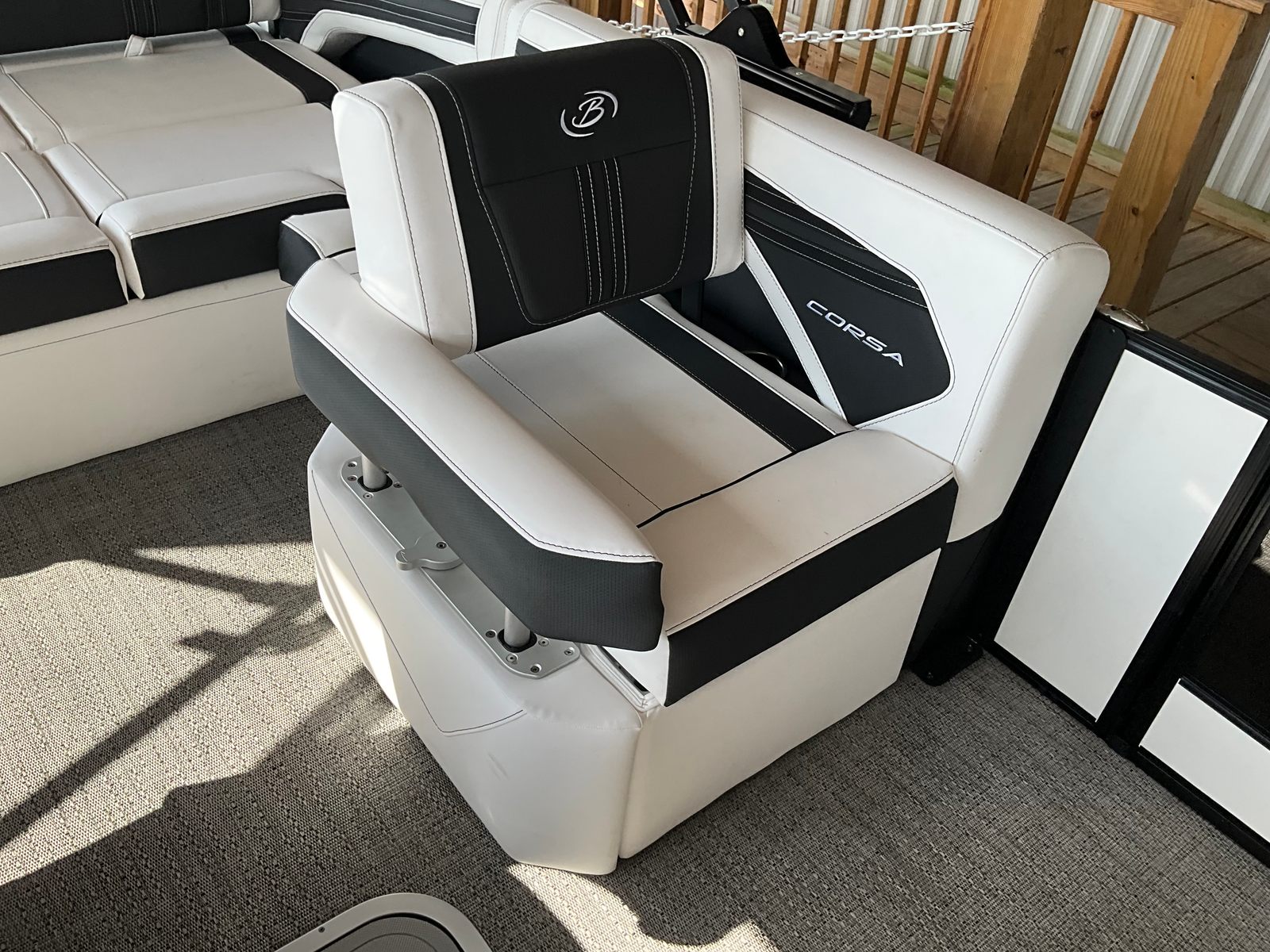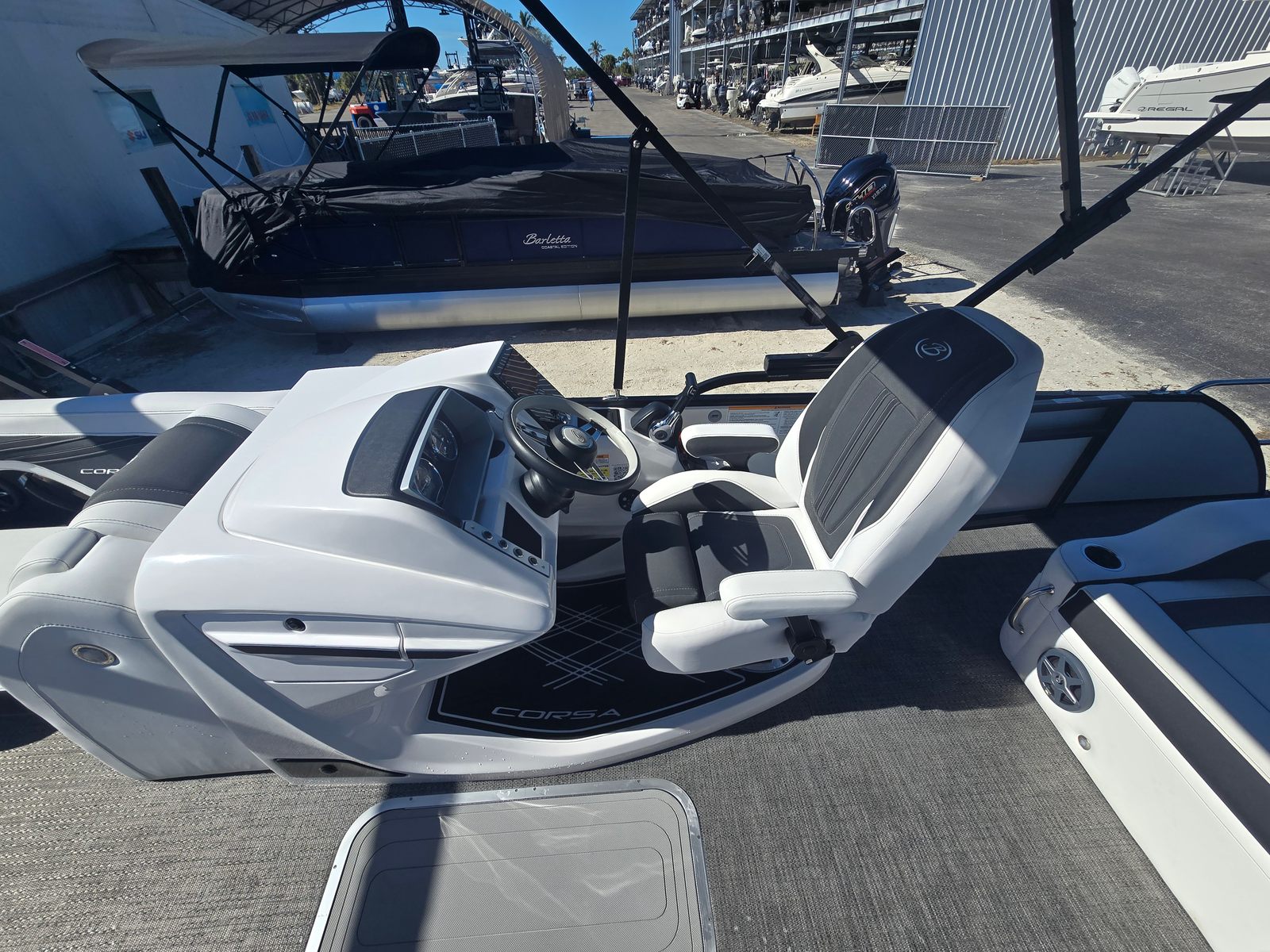 The 2025 Barletta Corsa 23U pontoon boat for sale is a remarkable blend of luxury, performance, and practicality. With its powerful Yamaha VF250XB V Max SHO engine, triple toon package, midship storage, and stunning Soft Touch Brilliant White with Carbon Accent design, this Barletta boat for sale stands out as a leader in its class. Additional features like the stainless steel prop, power assist steering, white underdeck and underwater lighting, and stainless steel safety stanchions with chains ensure that every outing is safe, comfortable, and memorable.If you are ready to elevate your boating lifestyle and create lasting memories on the water, the Barletta Corsa 23U is the perfect choice. Don’t miss the opportunity to own this exceptional pontoon – contact your local dealer today to learn more and schedule a viewing. Your next adventure awaits with the 2025 Barletta Corsa 23U!