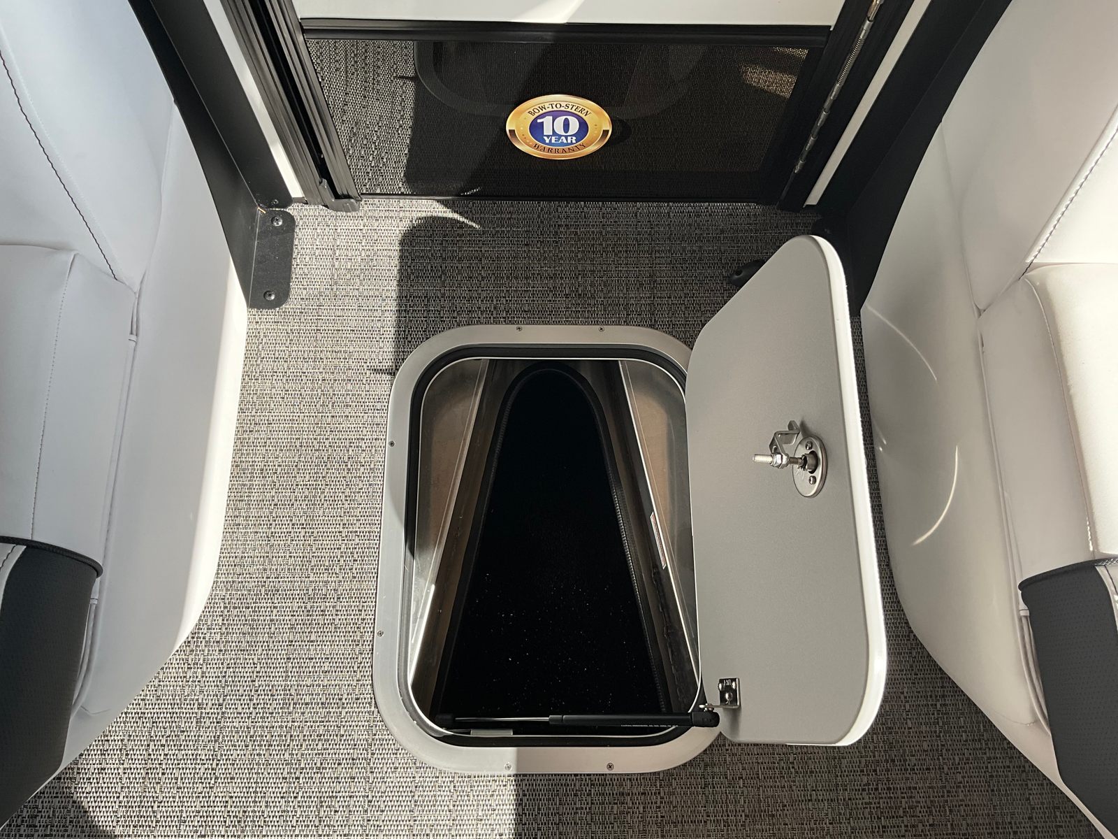 Practicality is at the core of the Barletta Corsa 23U’s design. The midship storage compartment offers convenient space for stowing gear, water toys, and personal items, keeping the deck clutter-free and organized. The power assist steering makes docking and maneuvering effortless, even for less experienced boaters. The sturdy construction and high-quality materials ensure long-lasting durability and low maintenance, so you can spend more time enjoying the water and less time worrying about upkeep.The white underdeck and underwater lighting not only enhance the boat’s visual appeal but also improve visibility and safety during nighttime outings. The stainless steel safety stanchions and chains provide added security for passengers, especially when children or pets are on board. Every aspect of the Barletta Corsa 23U is designed to make ownership easy, enjoyable, and worry-free.