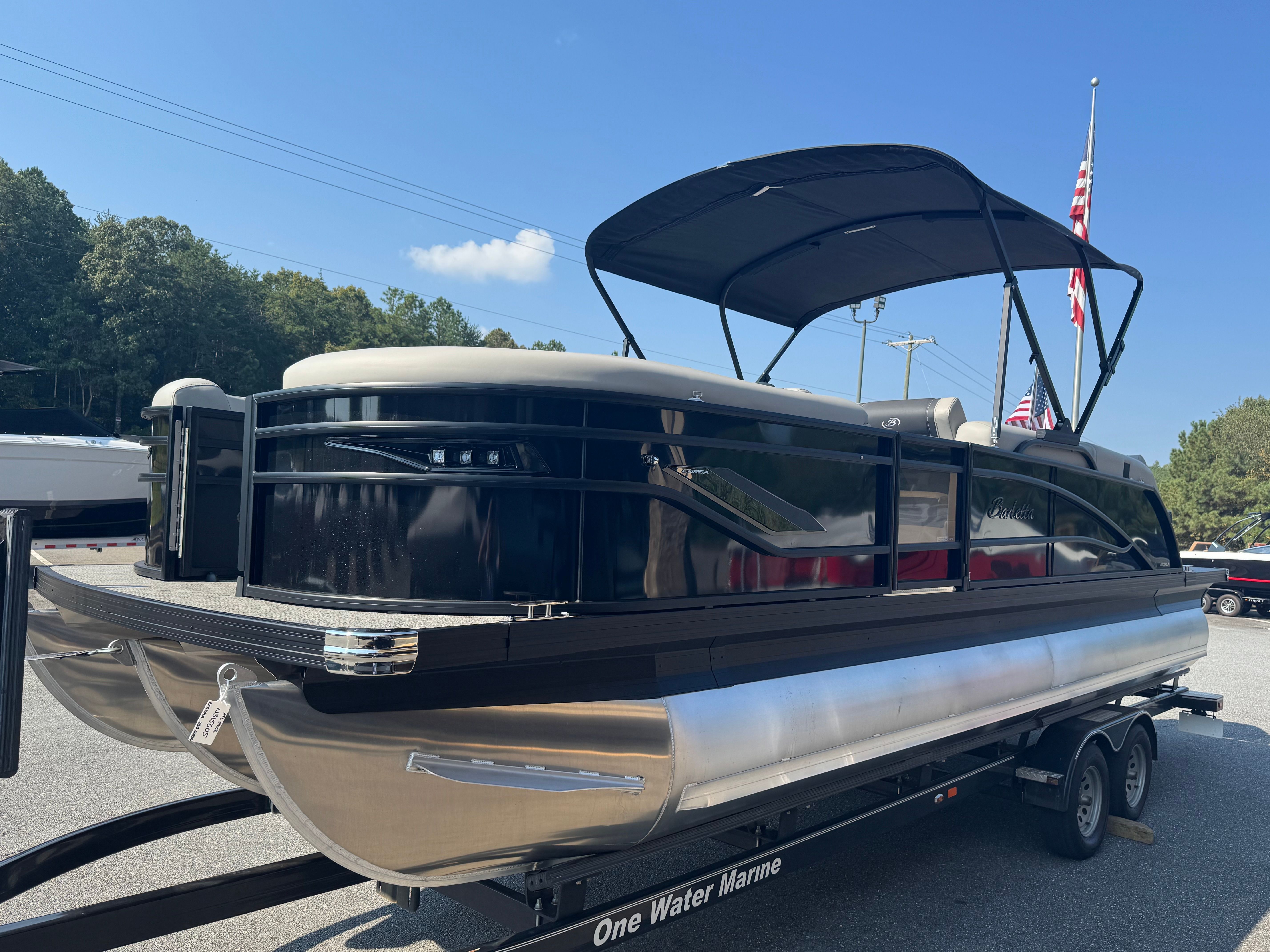 The 2026 Barletta Corsa 23U is a standout pontoon boat for sale, offering a unique combination of style, performance, and versatility. With its powerful Mercury 250L Verado V8 engine, advanced helm features, luxurious furniture, and striking Black Diamond exterior, this Barletta boat for sale is designed to impress and delight. The Blackout Package Corsa, Simrad engine integration, stainless steel flag pole, and premium lighting elevate your boating experience to new heights.Whether you’re seeking adventure, relaxation, or unforgettable moments with loved ones, the Barletta Corsa 23U delivers on every front. Don’t miss your chance to own this exceptional pontoon boat – contact your local dealer today to learn more and start your journey toward endless fun on the water.