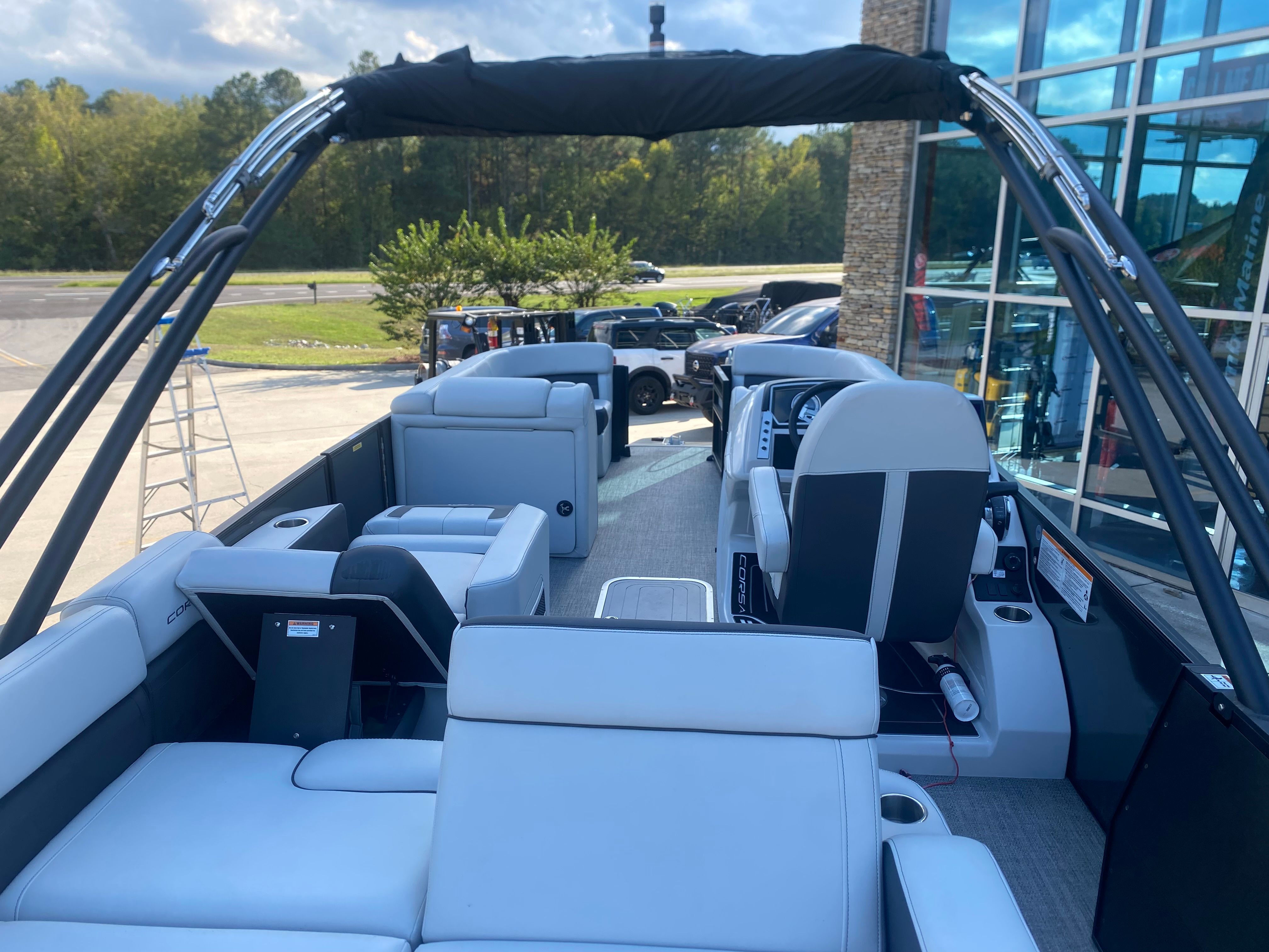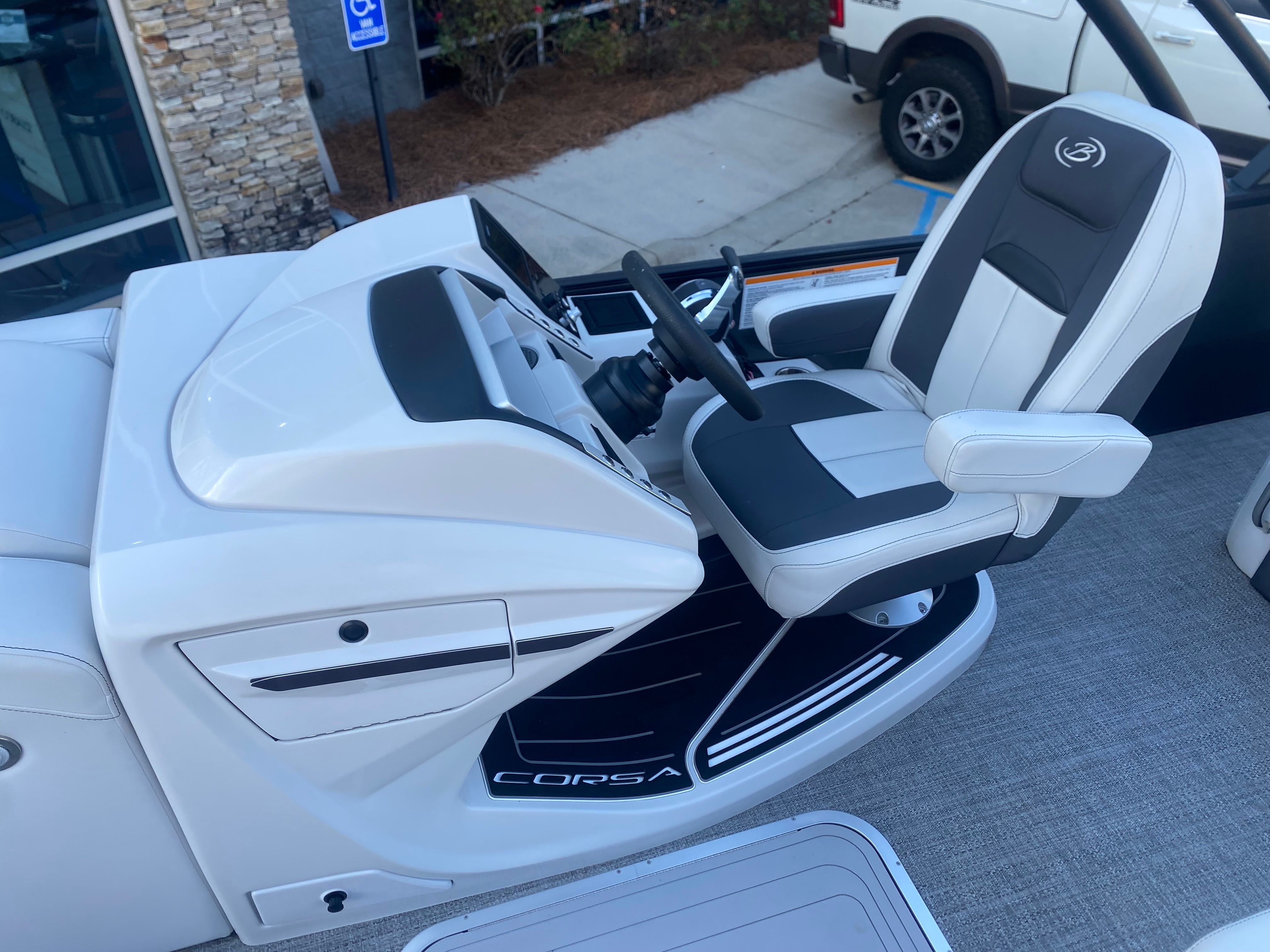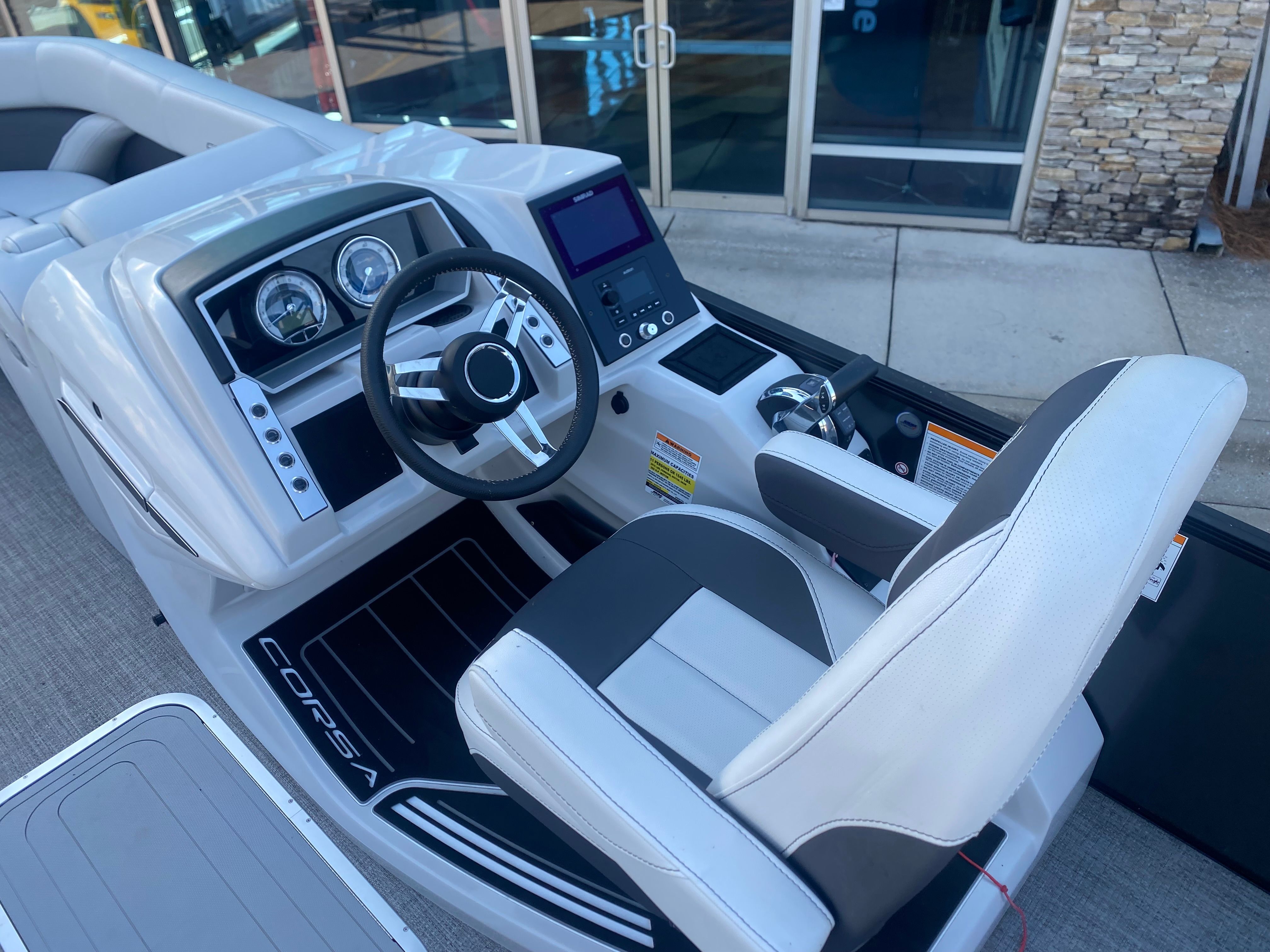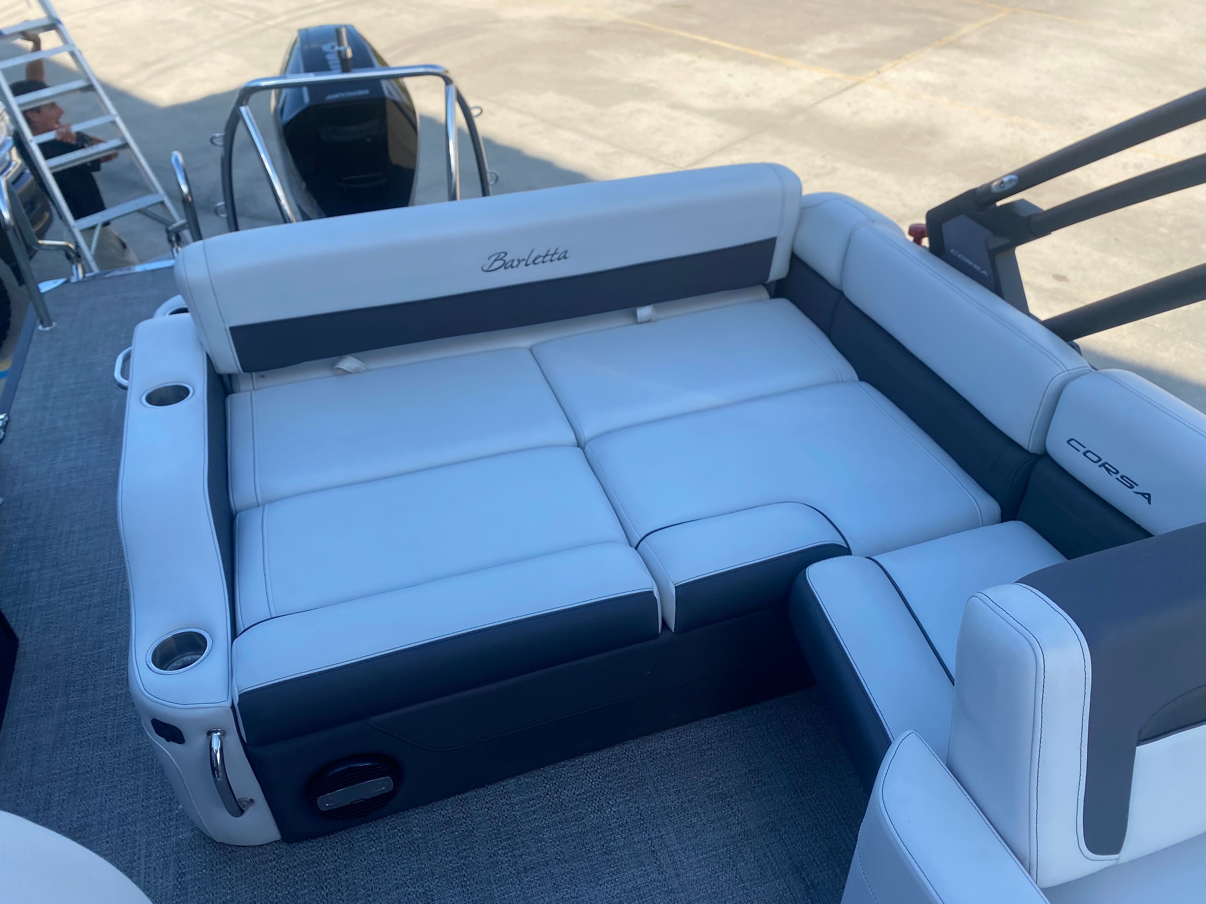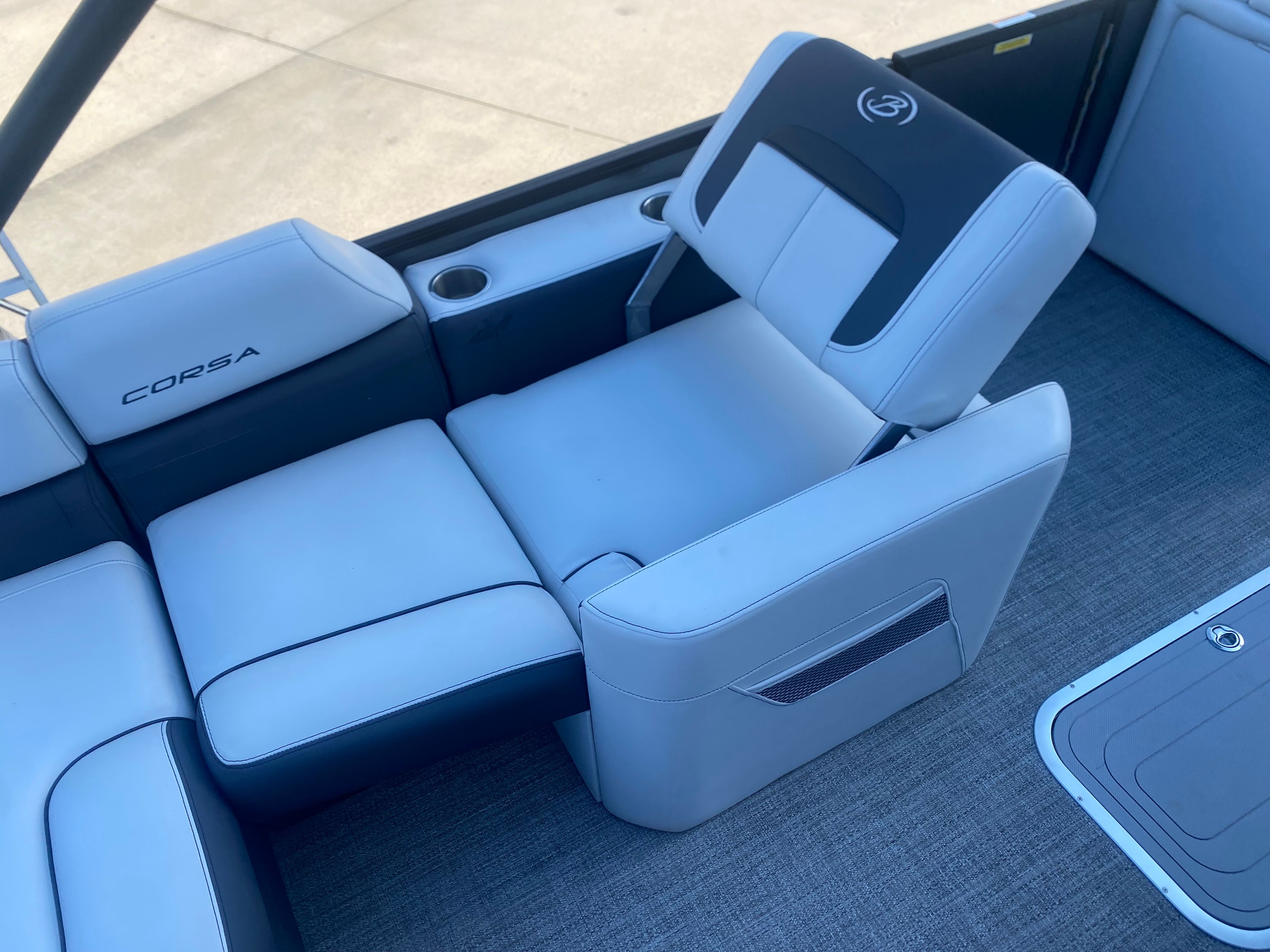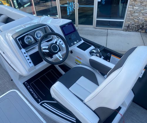 Experience luxury on the water with this 2021 Barletta Corsa 23UA, powered by a Mercury 250 outboard with only 24 low hours. This tri-toon is loaded with premium features including a sport arch, RGB interior lighting package, underwater lights, docking lights, Hertz Bluetooth audio, transom speakers, in-floor storage, stow-away table, and a full cover. The ultra-comfortable lounger layout provides plenty of space for relaxing, while the Simrad GPS system keeps you confidently on course. Dual battery setup adds convenience and peace of mind. Trailer not included, but available for purchase. Barletta’s renowned quality and craftsmanship shine through in every detail—built for comfort, performance, and lasting value. Pricing includes all dealer finance incentives.