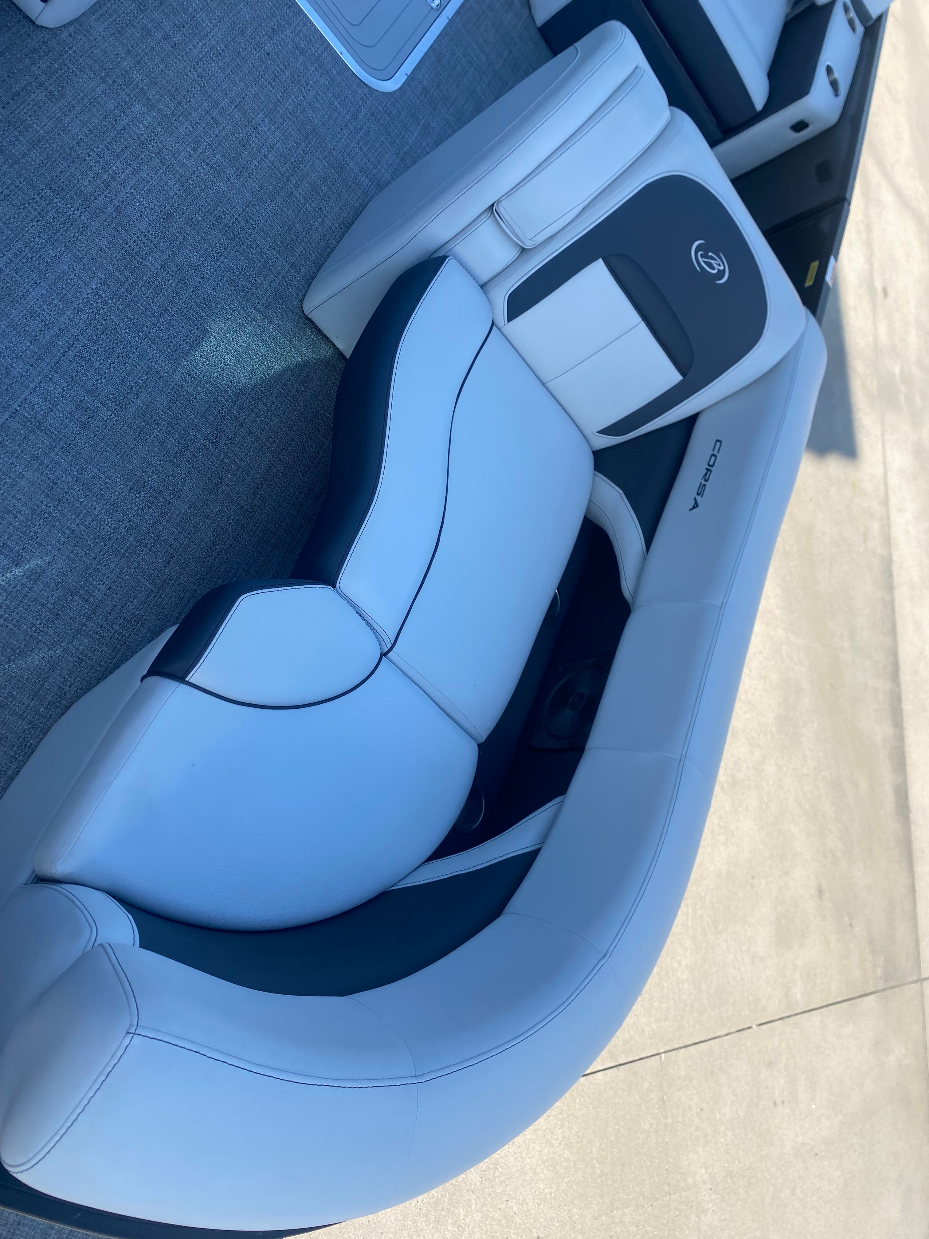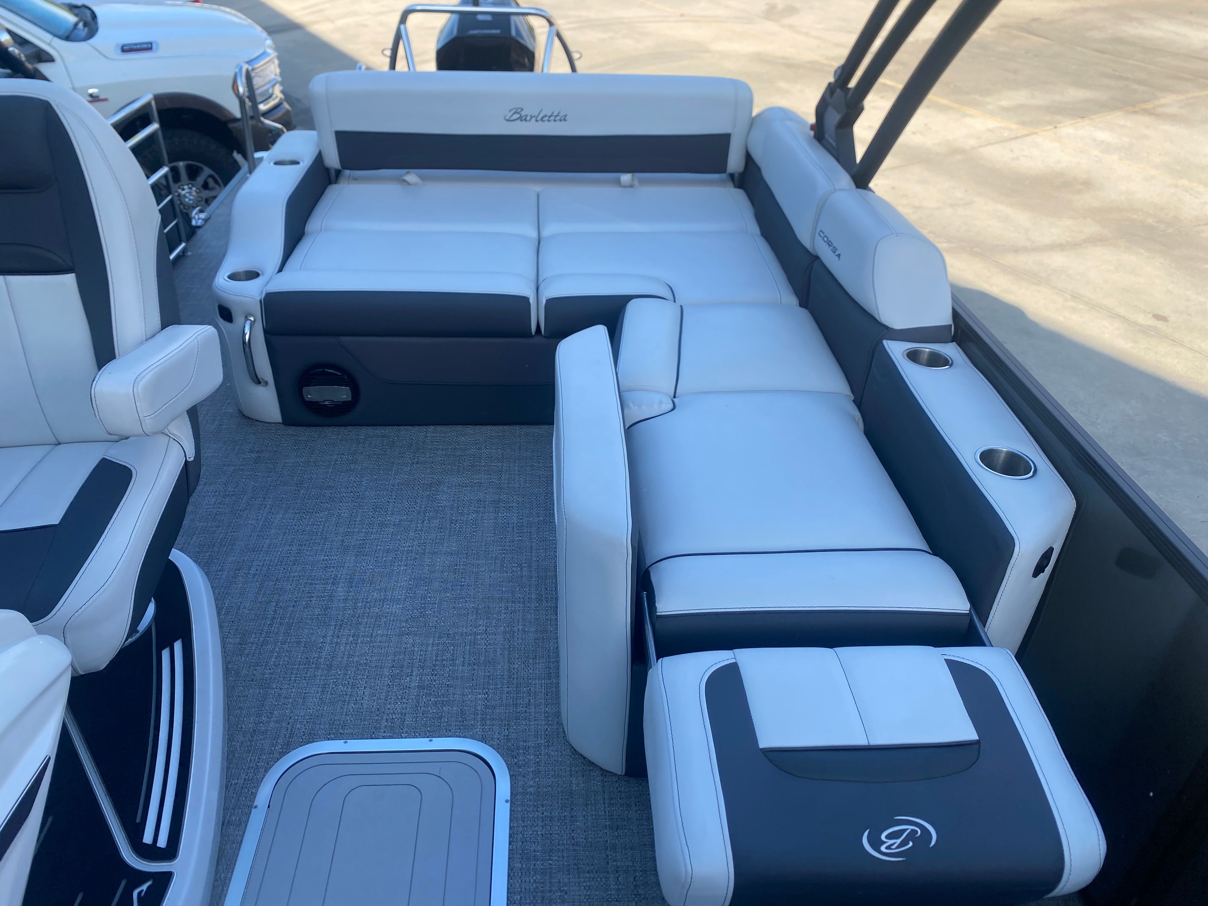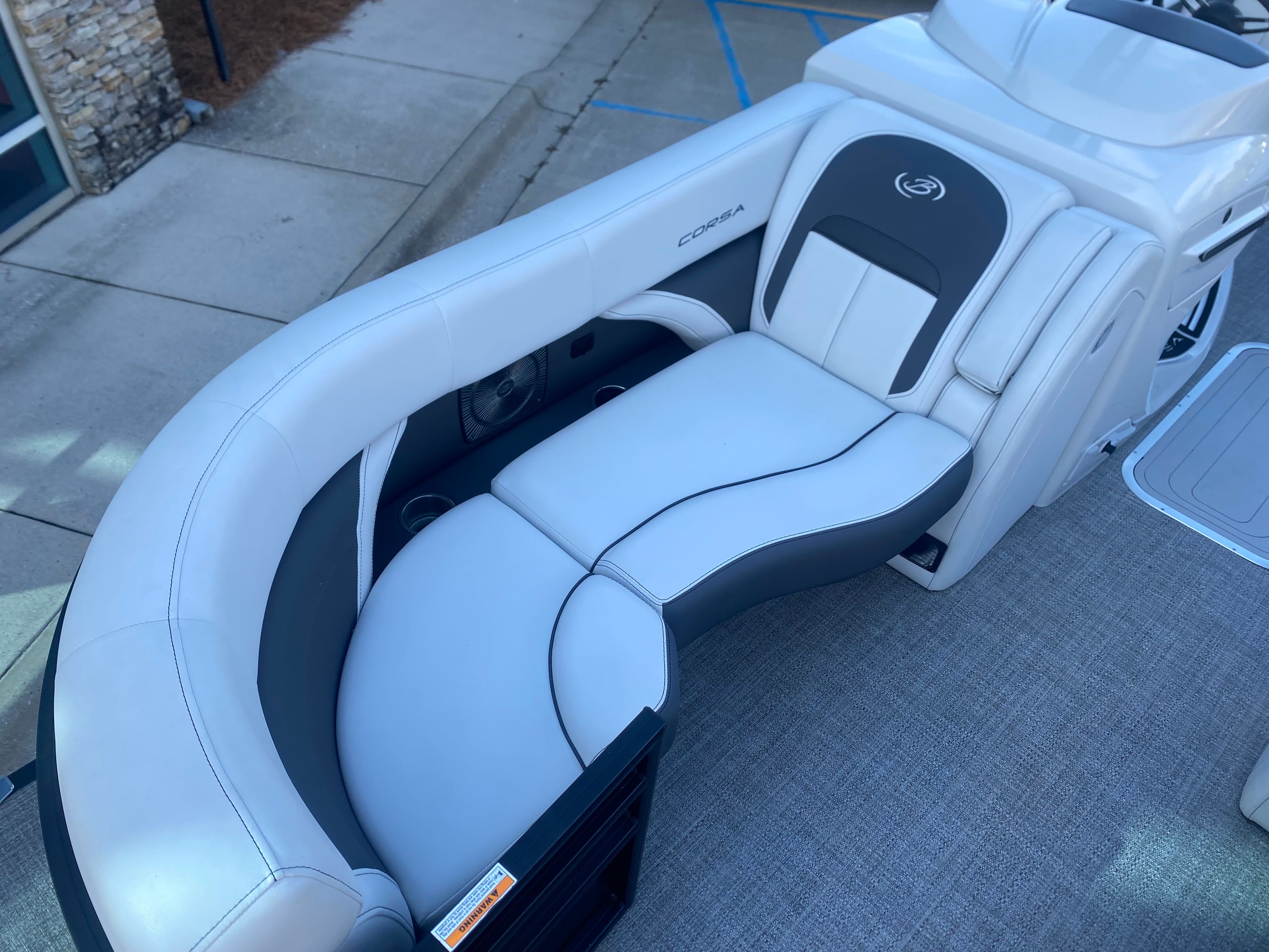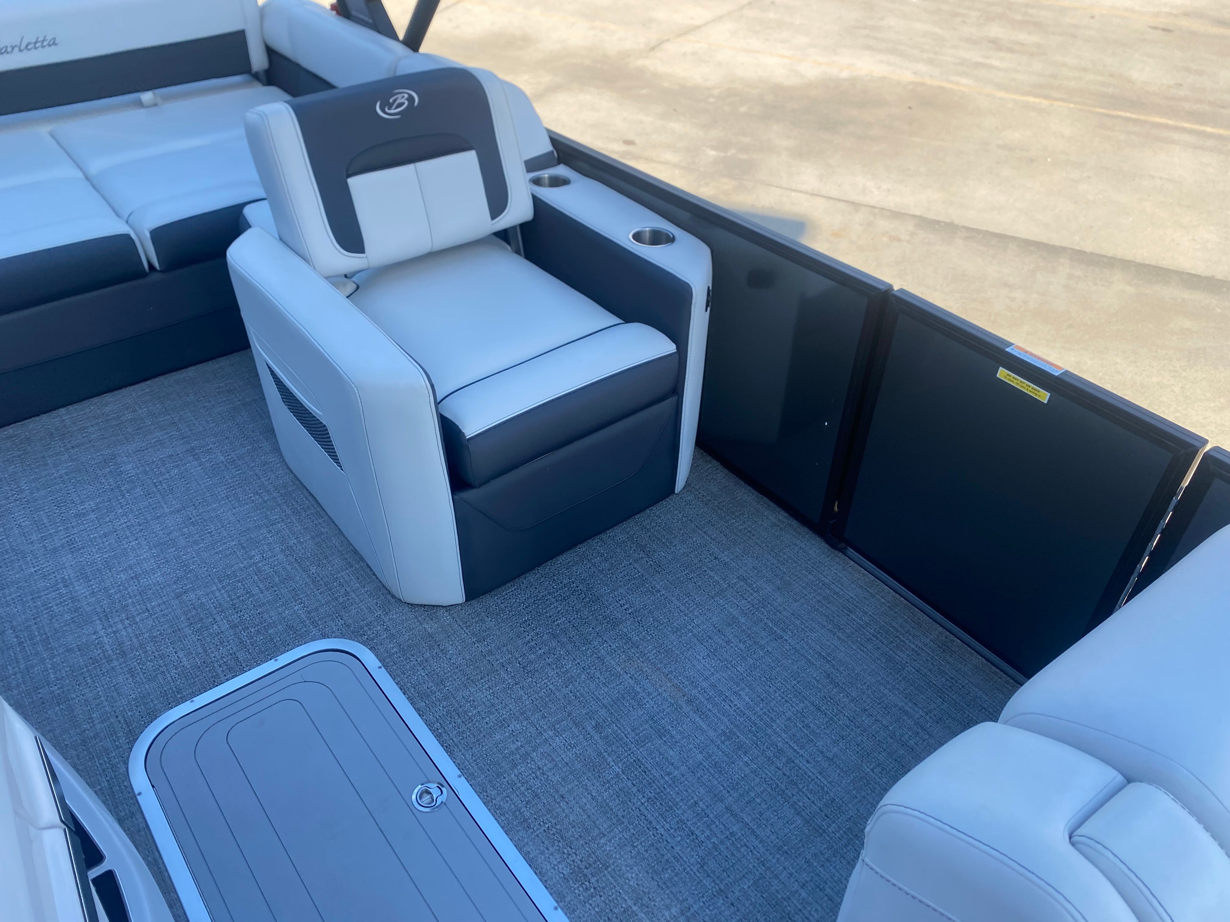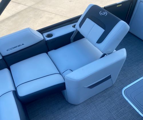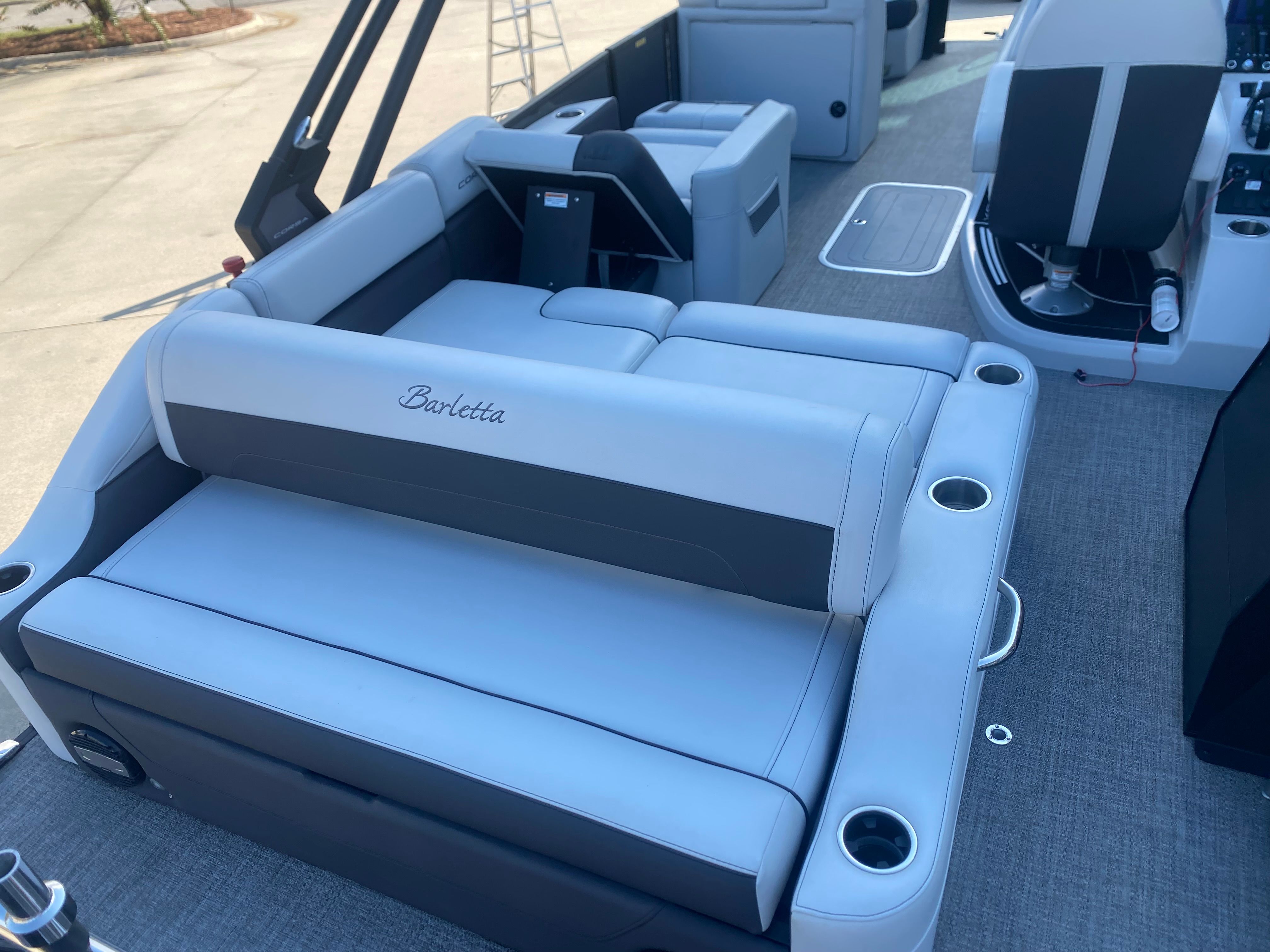 Experience luxury on the water with this 2021 Barletta Corsa 23UA, powered by a Mercury 250 outboard with only 24 low hours. This tri-toon is loaded with premium features including a sport arch, RGB interior lighting package, underwater lights, docking lights, Hertz Bluetooth audio, transom speakers, in-floor storage, stow-away table, and a full cover. The ultra-comfortable lounger layout provides plenty of space for relaxing, while the Simrad GPS system keeps you confidently on course. Dual battery setup adds convenience and peace of mind. Trailer not included, but available for purchase. Barletta’s renowned quality and craftsmanship shine through in every detail—built for comfort, performance, and lasting value. Pricing includes all dealer finance incentives.