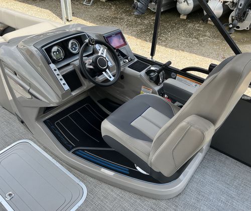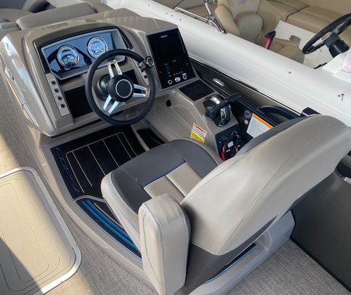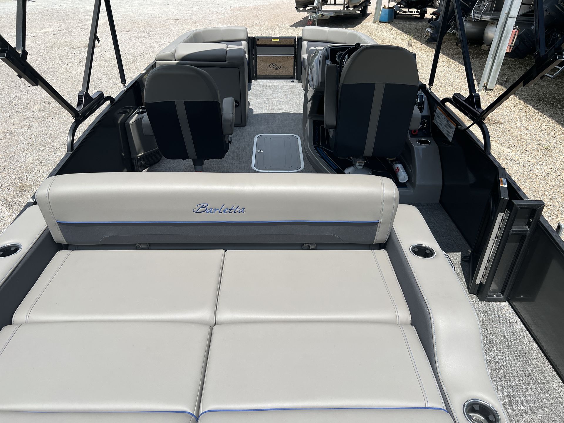 The Barletta Corsa 23UC is thoughtfully designed with features that enhance both comfort and functionality. Its spacious 23-foot deck provides plenty of room for guests to move around, lounge, and enjoy the scenery. The modern design elements and high-quality materials used throughout the boat create an inviting and stylish atmosphere. The seating is plush and ergonomically designed, ensuring that everyone on board can relax in comfort during long days on the water. The layout is optimized for socializing, with ample seating areas that encourage conversation and connection.This pontoon boat is also equipped with practical features that make every outing more enjoyable. The intuitive helm station puts you in complete control, with easy-to-read gauges and responsive controls that make navigation a breeze. The deck layout allows for easy movement and access to all areas of the boat, while the sturdy construction ensures safety and stability even in choppier conditions. The Barletta Corsa 23UC is built to last, with attention to detail evident in every aspect of its design.